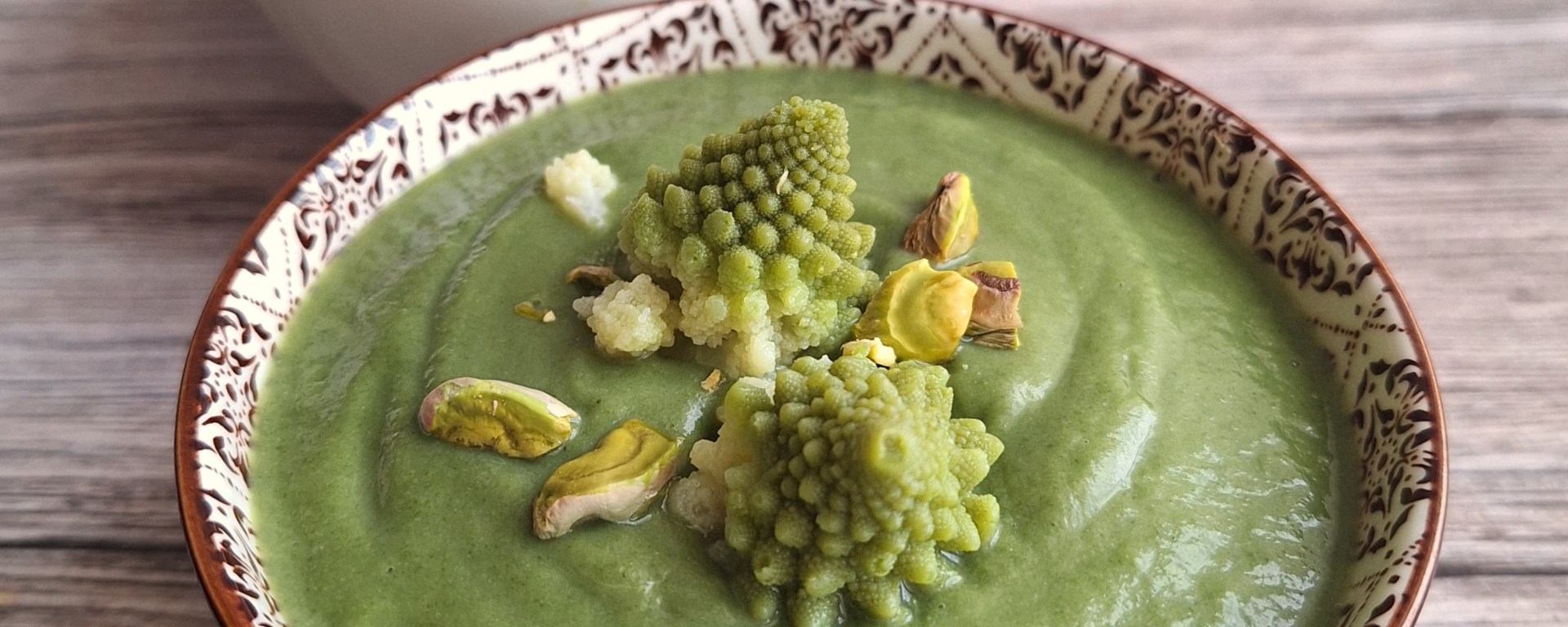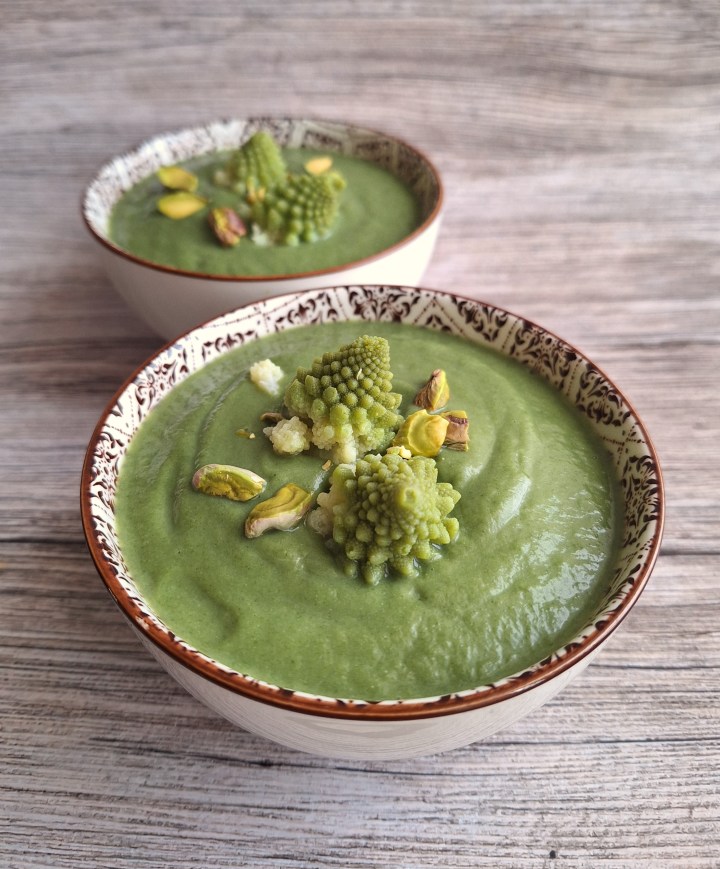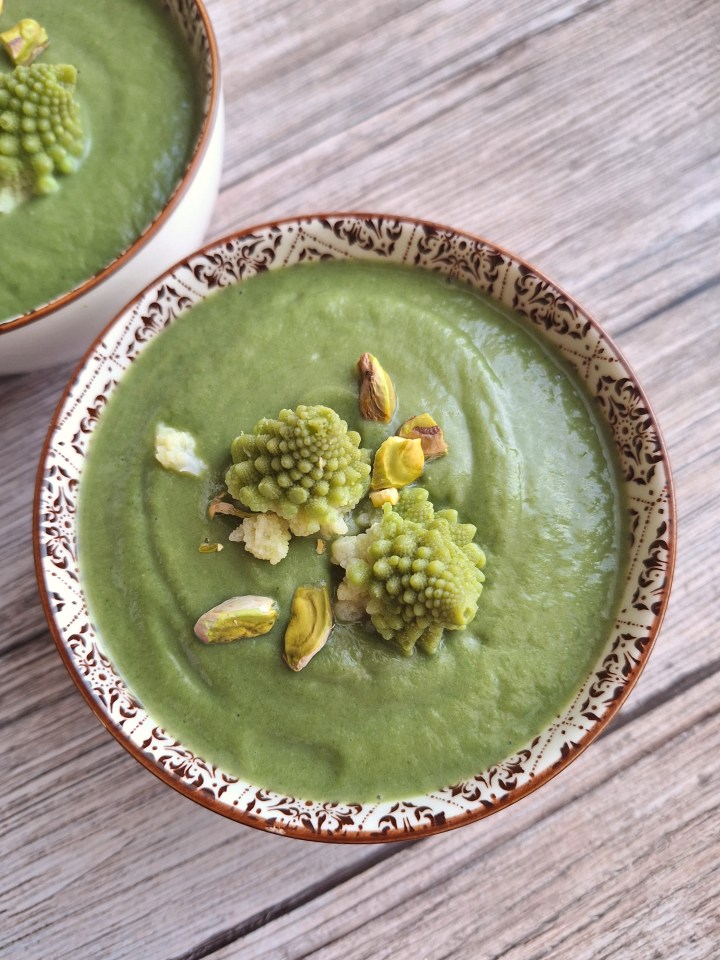!Buenos días cauliflagüers! Al fin juernes y hoy os traigo una crema de verduras. Hacía tiempo que no la comía y tenía por casa un romanesco pequeñito y unas espinacas con poco tiempo de vida y decidí combinarlas y hacer algo rápido, sencillo y «verde que te quiero, verde». Una receta muy vistosa con ese color brillante e intenso.