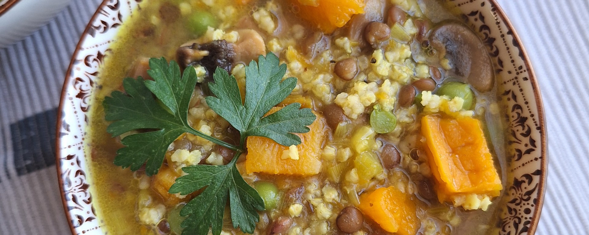 GUISO DE LENTEJAS, CALABAZA Y MIJO