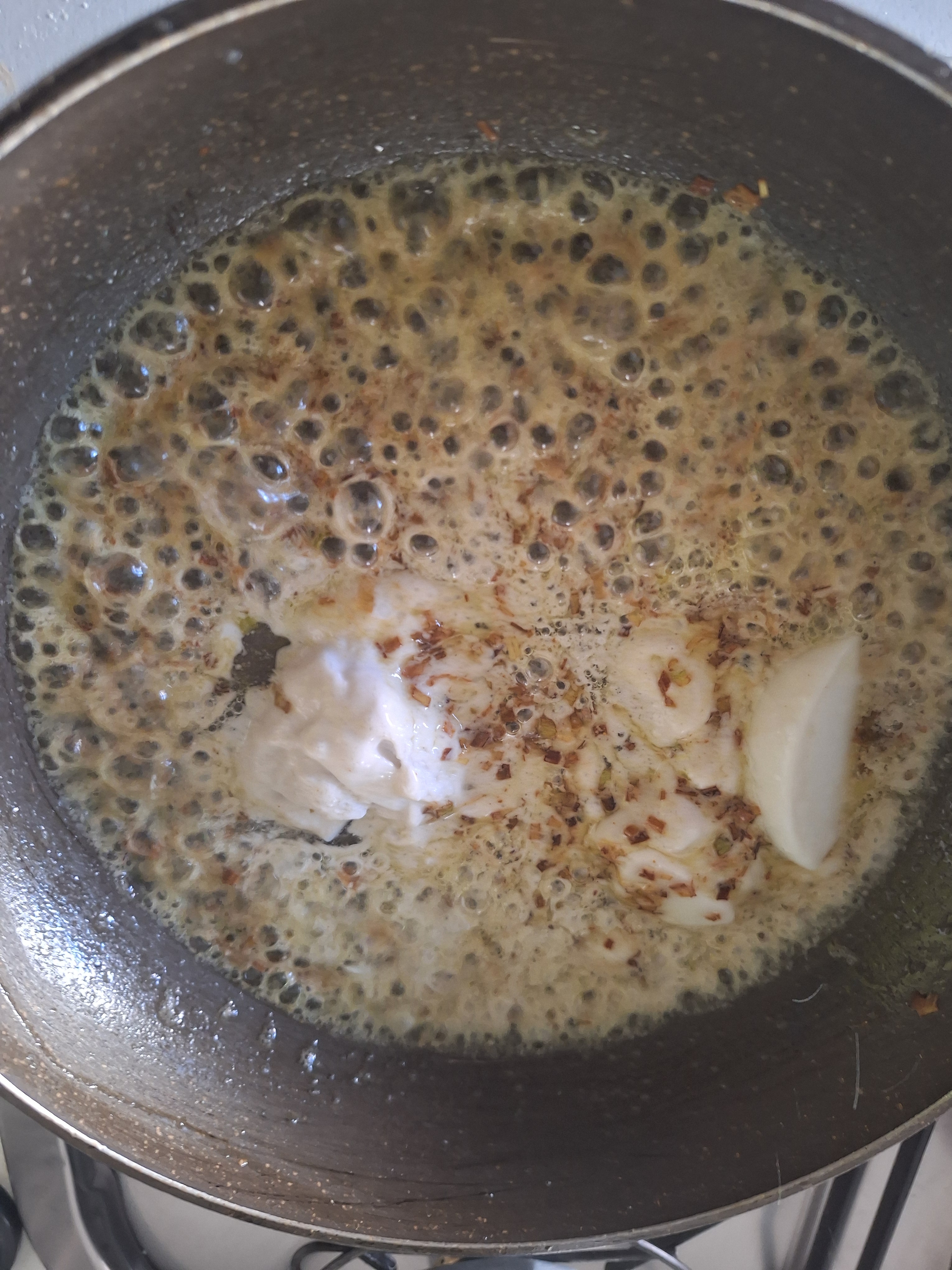 - 120 ml de caldo de cocer las cáscaras de los gambones