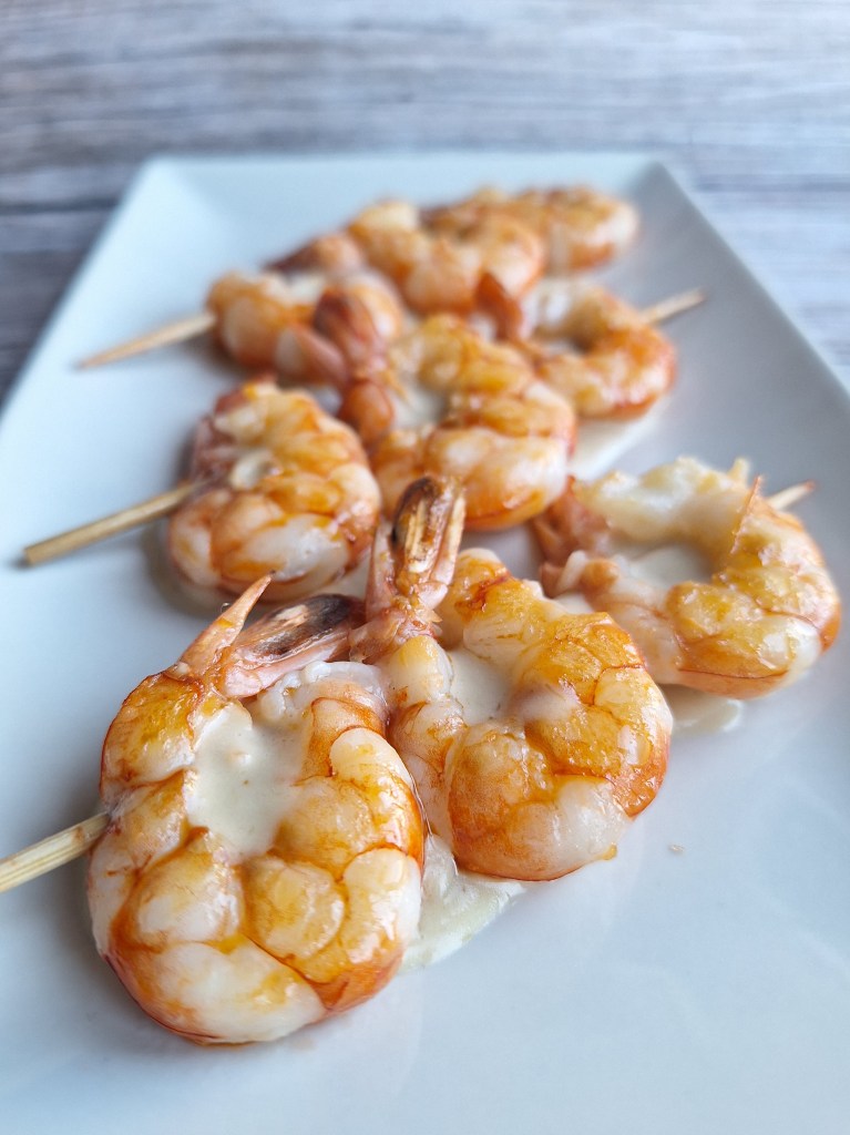 La receta que os traigo hoy es muy sencilla y queda muy rica. Aunque a simple vista no es muy llamativa, os puedo asegurar que tiene un sabor único. En la mayoría de las casas no suelen faltar gambas, gambones y/o langostinos durante estas fechas, así que os propongo esta alternativa. Se trata de una brocheta de gambones (pero podéis hacerlas con langostinos perfectamente), acompañada de una salsa de curry y coco. Hace pocos días publiqué una receta de romanesco con gambones con esta salsa y fue todo un triunfo, así que pensé en utilizarla nuevamente. De verdad, no os vais a arrepentir.