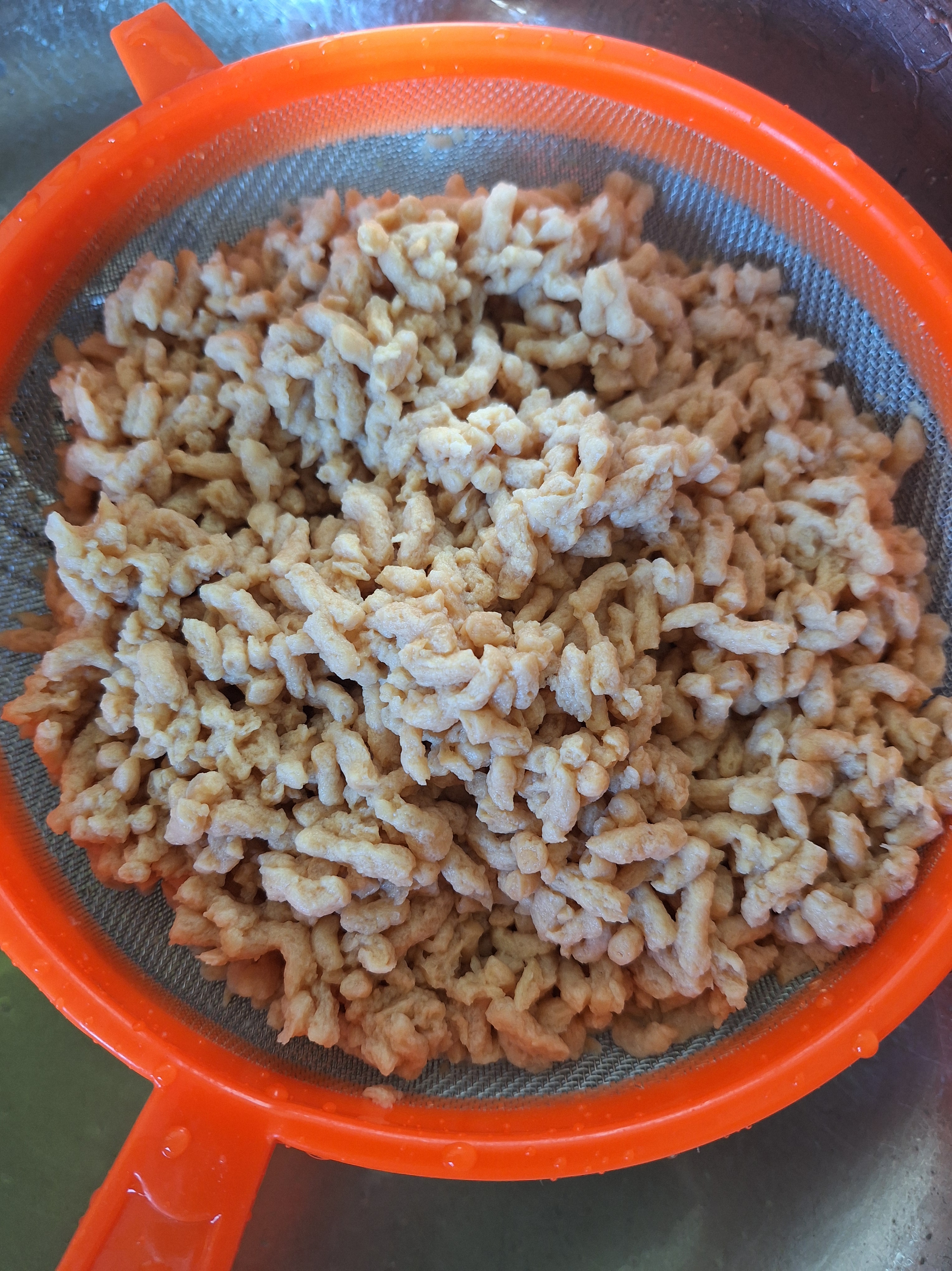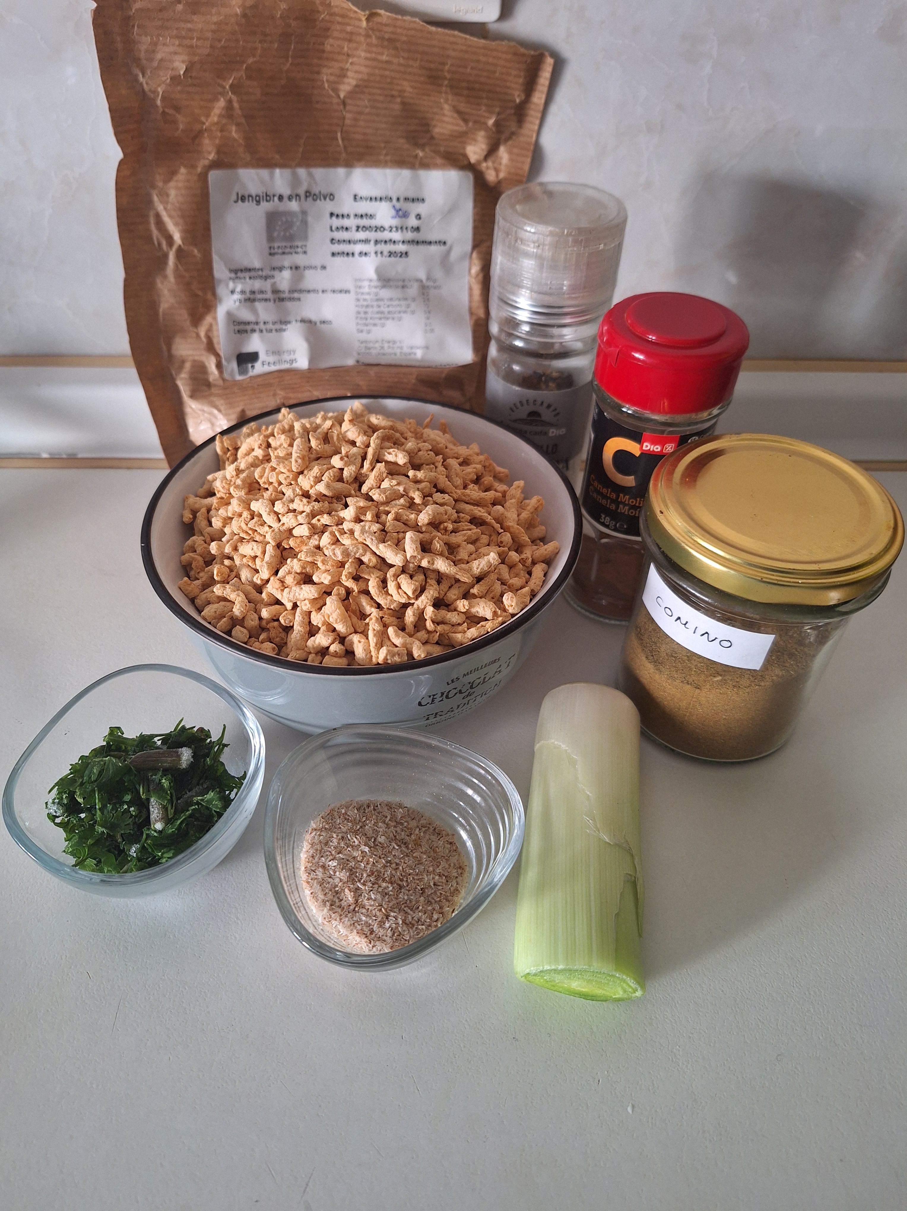 - 200 gr de proteína de guisante y haba texturizada (gramaje fino)