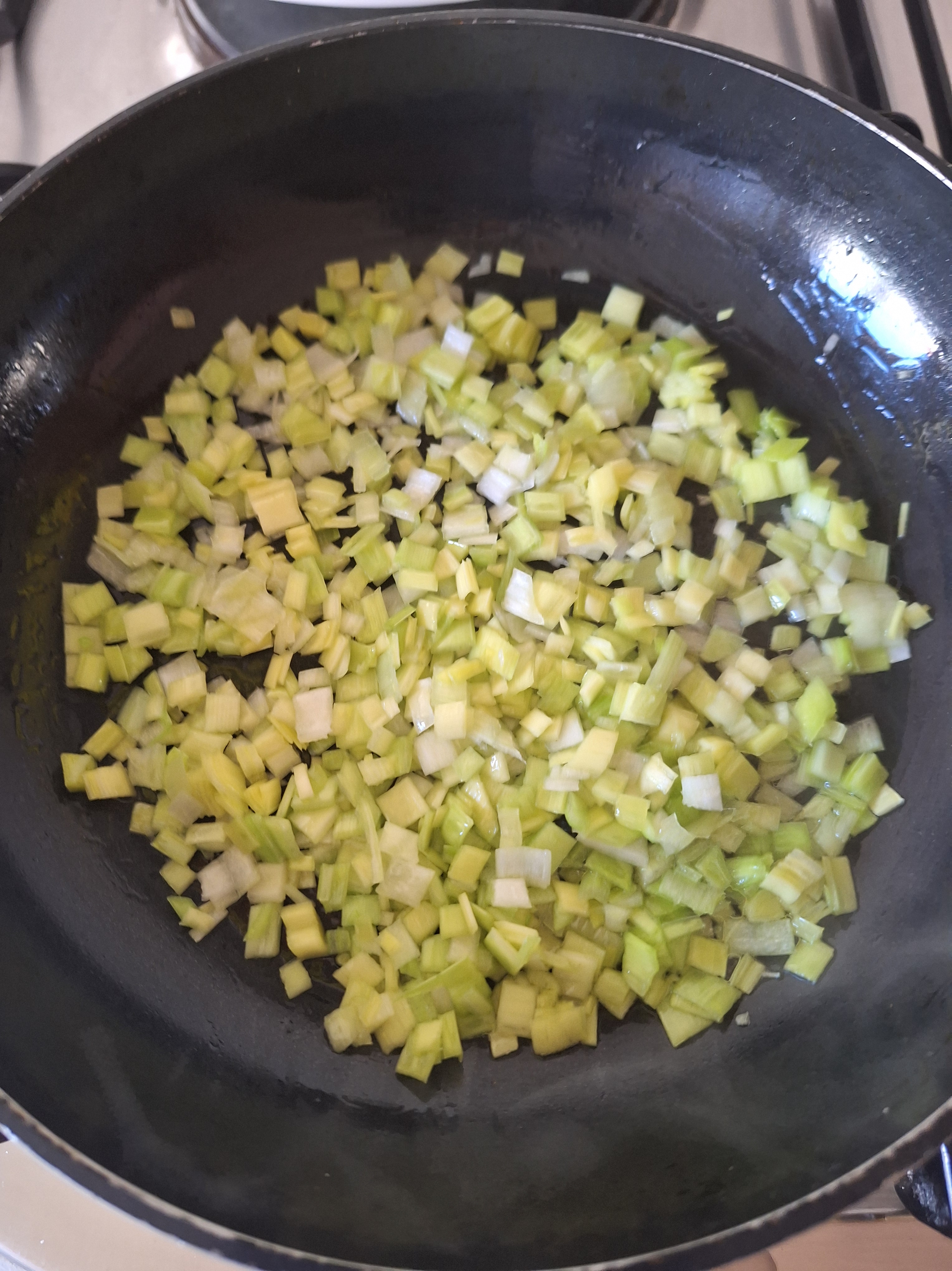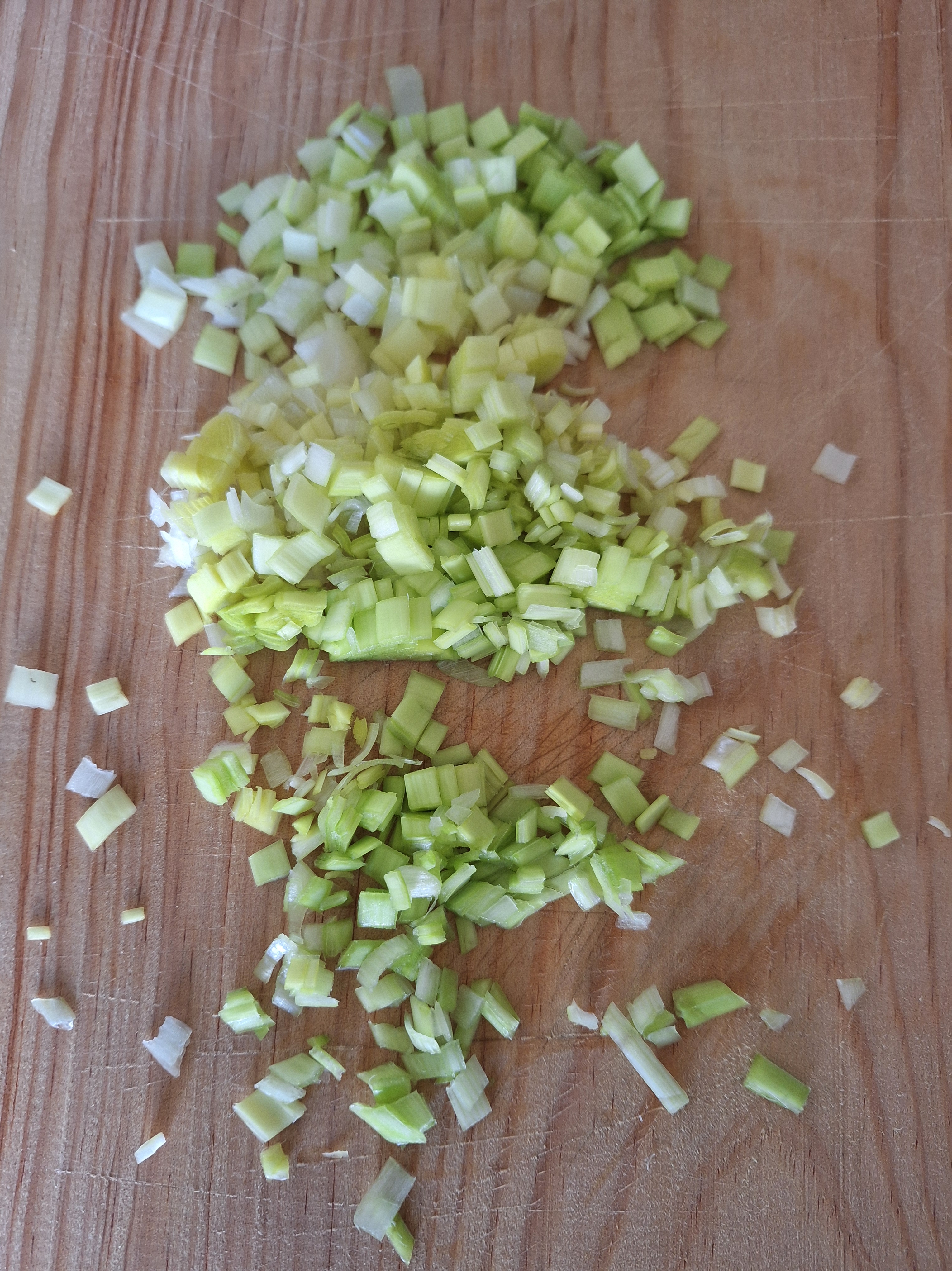 Pica el puerro finamente y pocha en un poco de aceite. Agrega a lo anterior, junto con el psyllium y tritura con la batidora (puedes dejarlo tal cual, pero será más difícil que ligue después). Deja reposar al menos 1 hora.