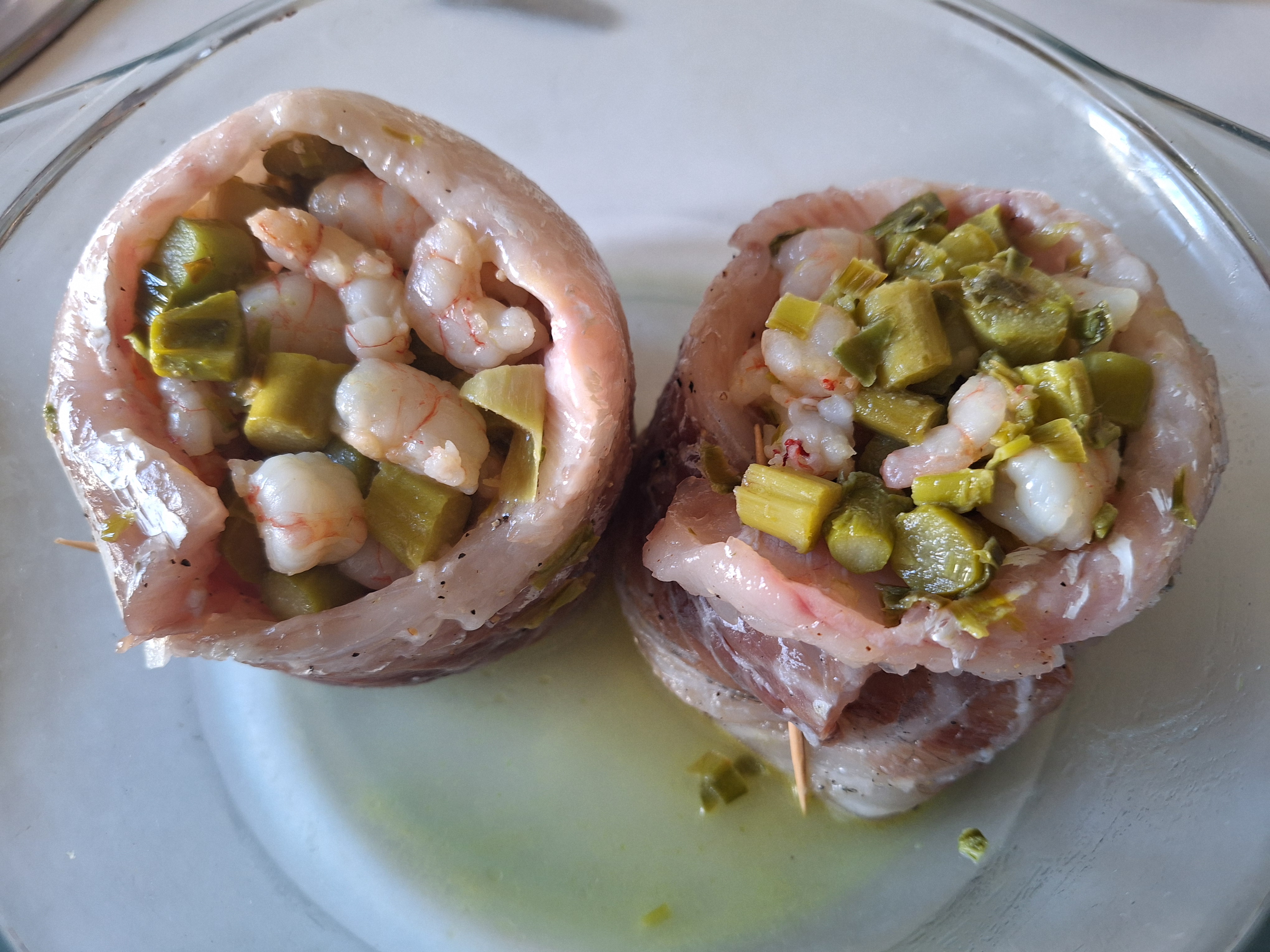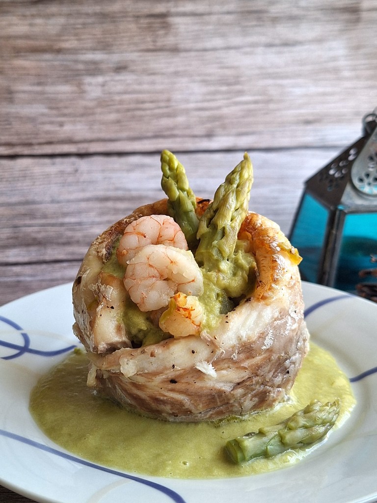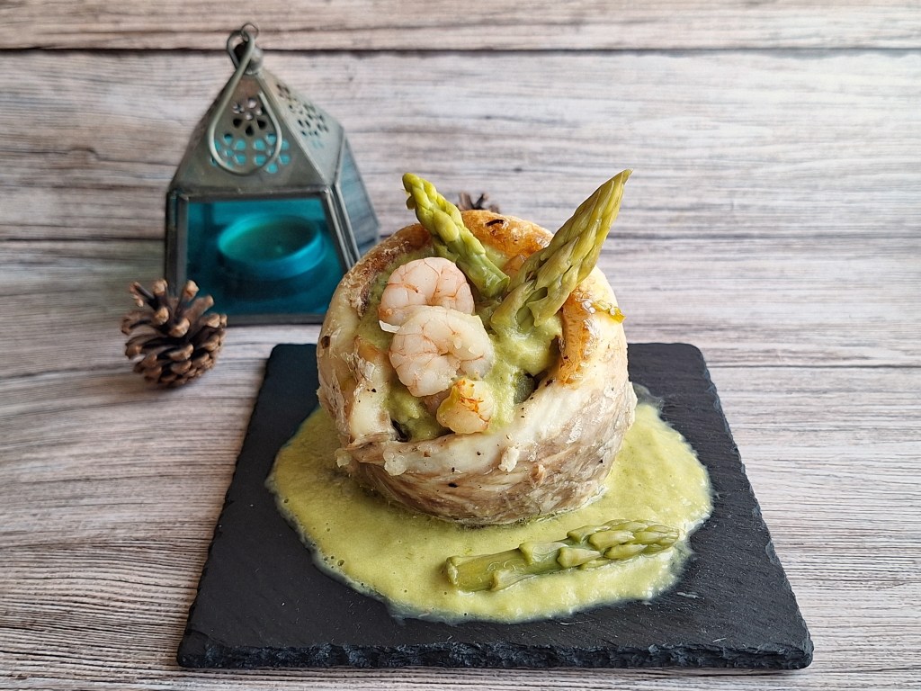 La receta que os propongo es muy sencilla de hacer, está deliciosa y tiene una presentación muy chula y vistosa. He utilizado lubina porque era el pescado que tenía por casa (tenía antojazo), pero podéis utilizar el que más os guste (merluza, trucha,…). El relleno lleva trigueros, puerro y gambas. En este caso lo he cortado en trozos más o menos grandes, pero también podéis picarlos finamente y darle un punto más cremoso con un poco de maicena y caldo, lo dejo a vuestra elección. Y, para la salsa, trigueros y puerro con un poco de caldo de pescado.