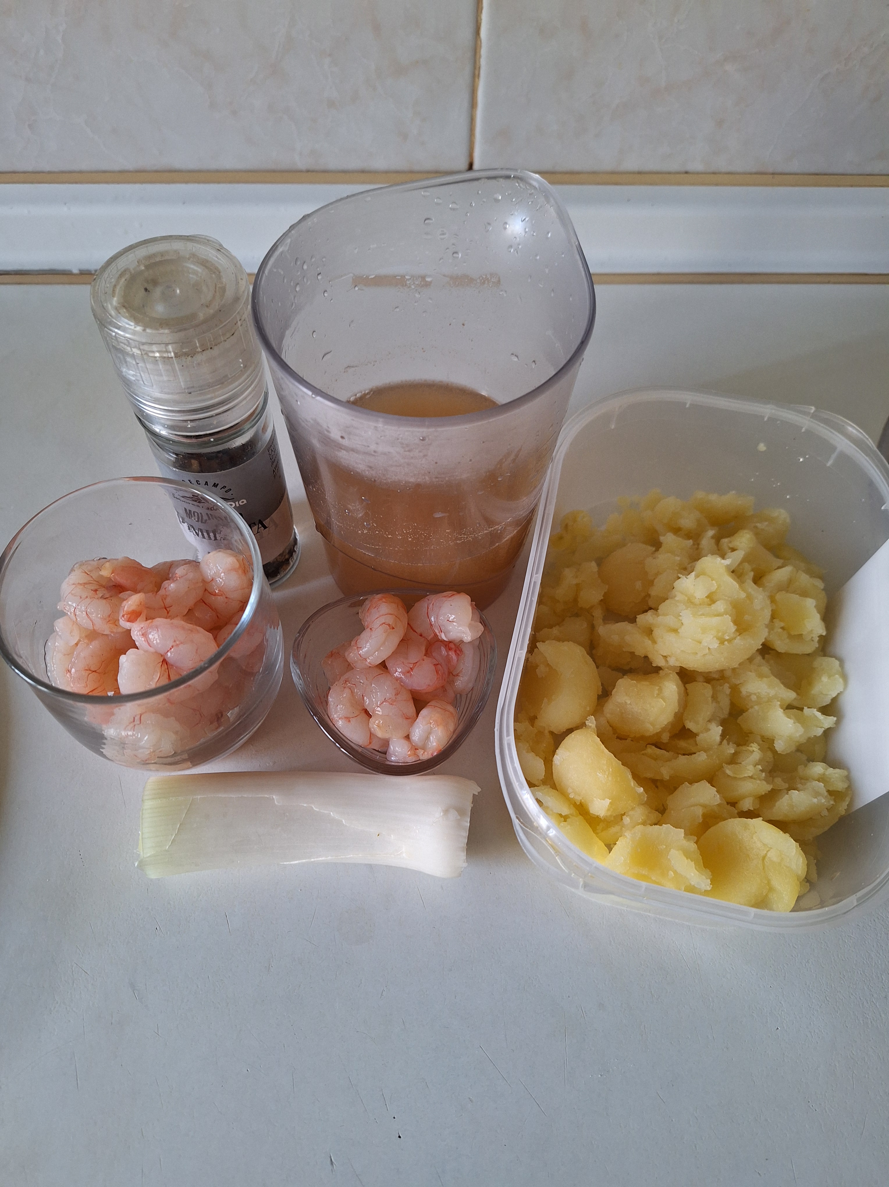 - 250 gr de caldo (he utilizado caldo de gambones)