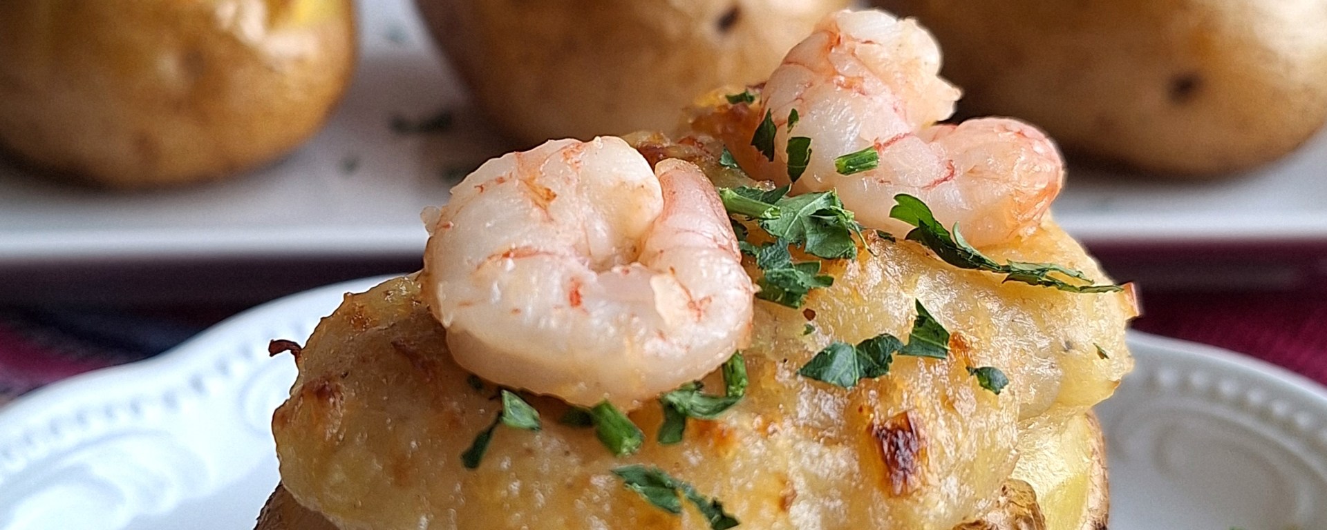 PATATAS ASADAS RELLENAS DE GAMBAS