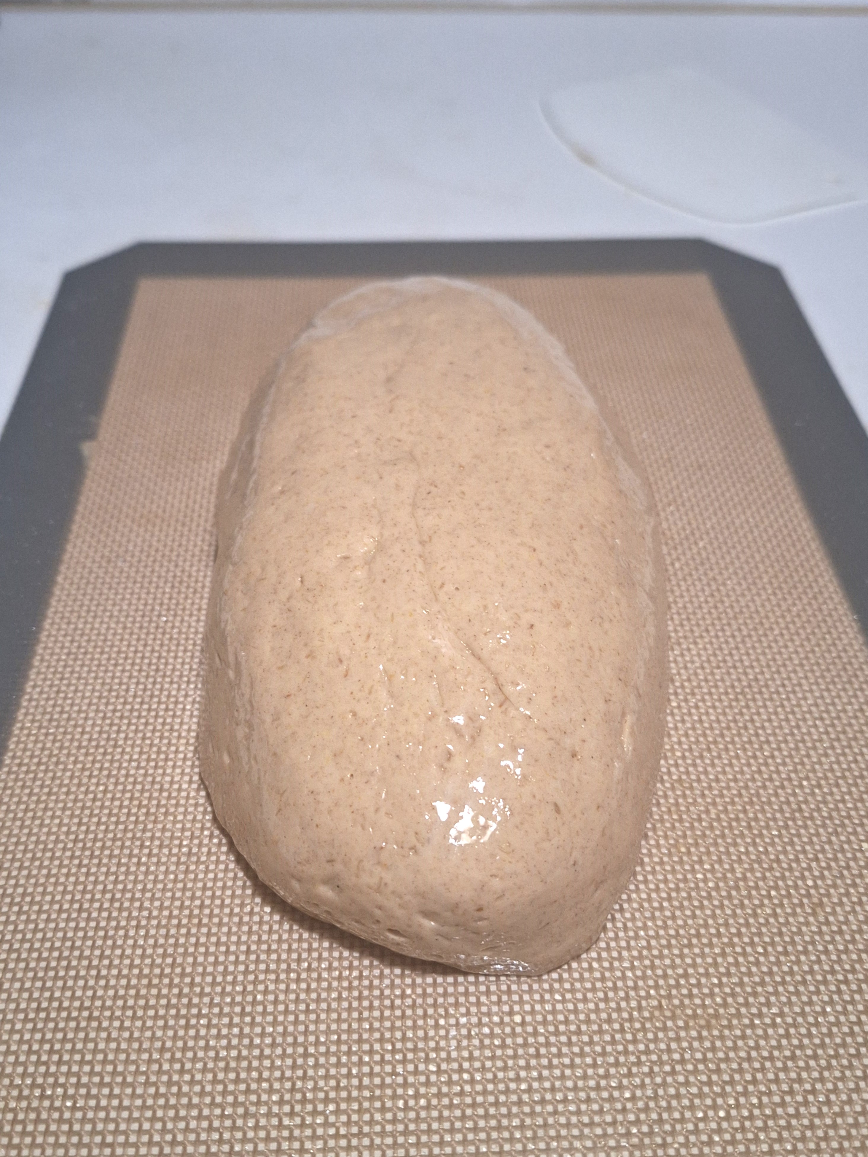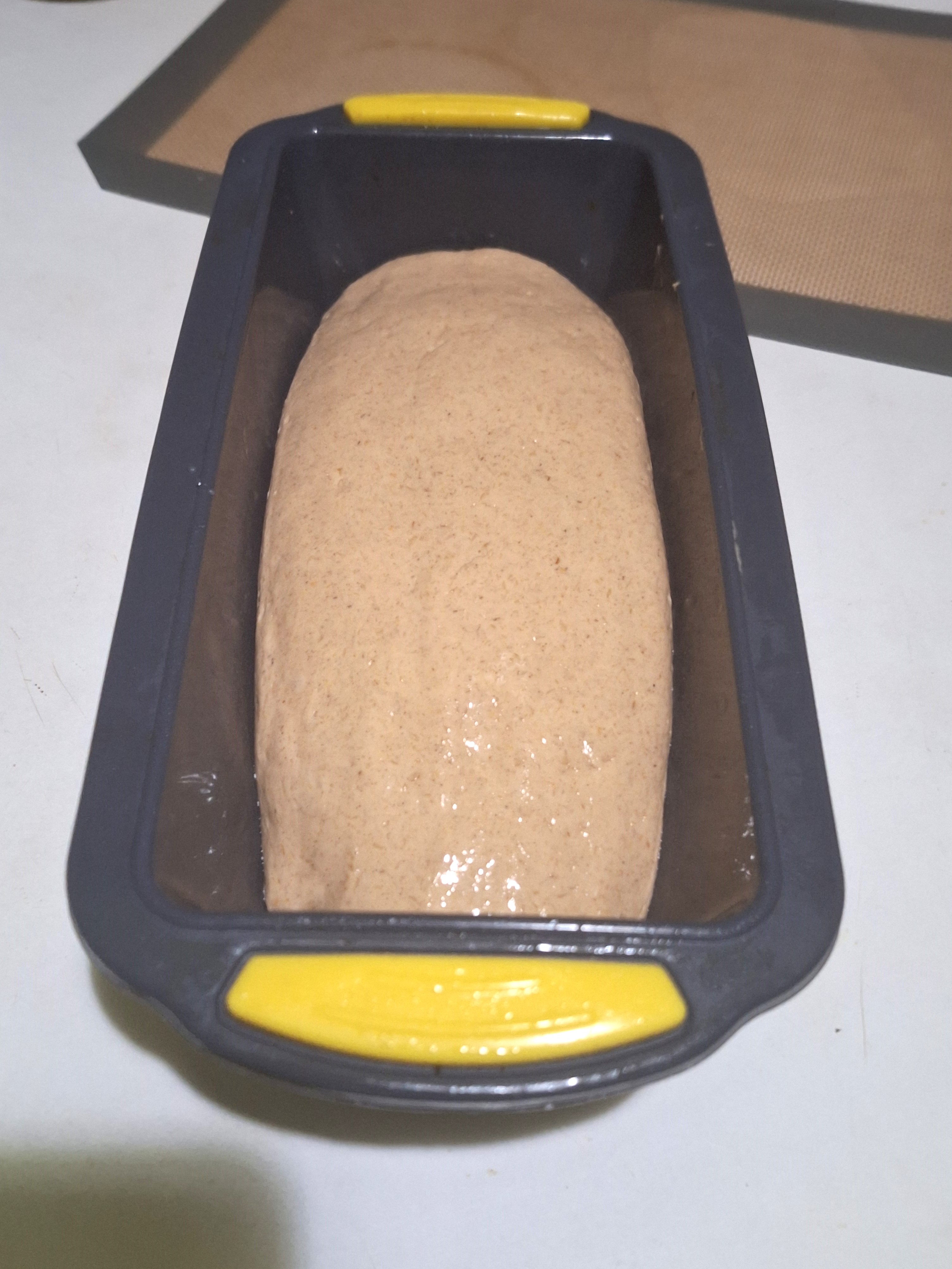 Engrasa la espátula y forma una bolita. Engrasa papel vegetal o un tapete de silicona (mucho mejor), extiende la masa haciendo un rectángulo y después enrolla sin presionar demasiado. Cierra el borde y coloca en un molde previamente engrasado. Cubre con film y deja que doble volumen.
