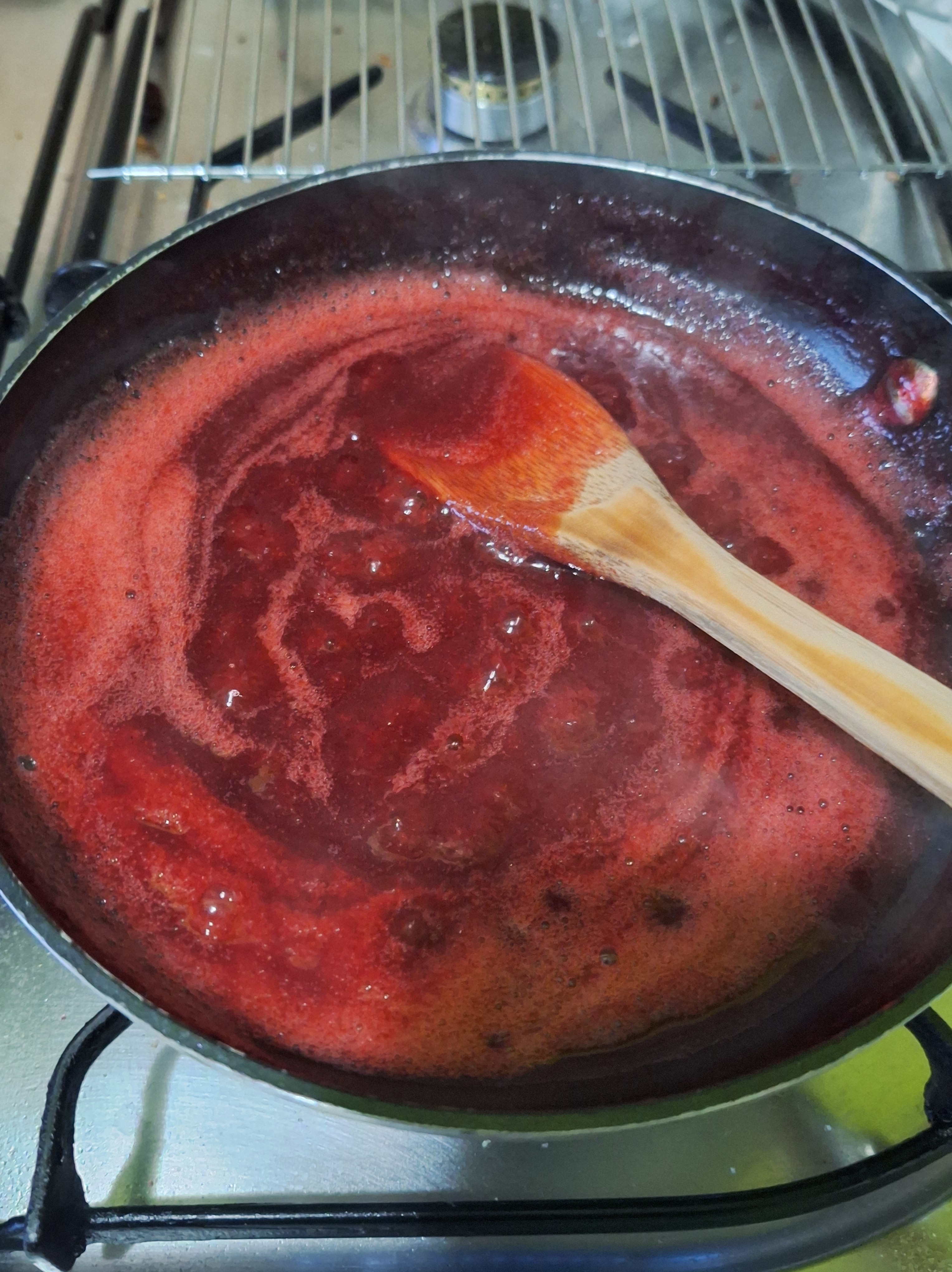 - 200 gr de puré de frambuesa y fresa (puedes utilizar mermelada)