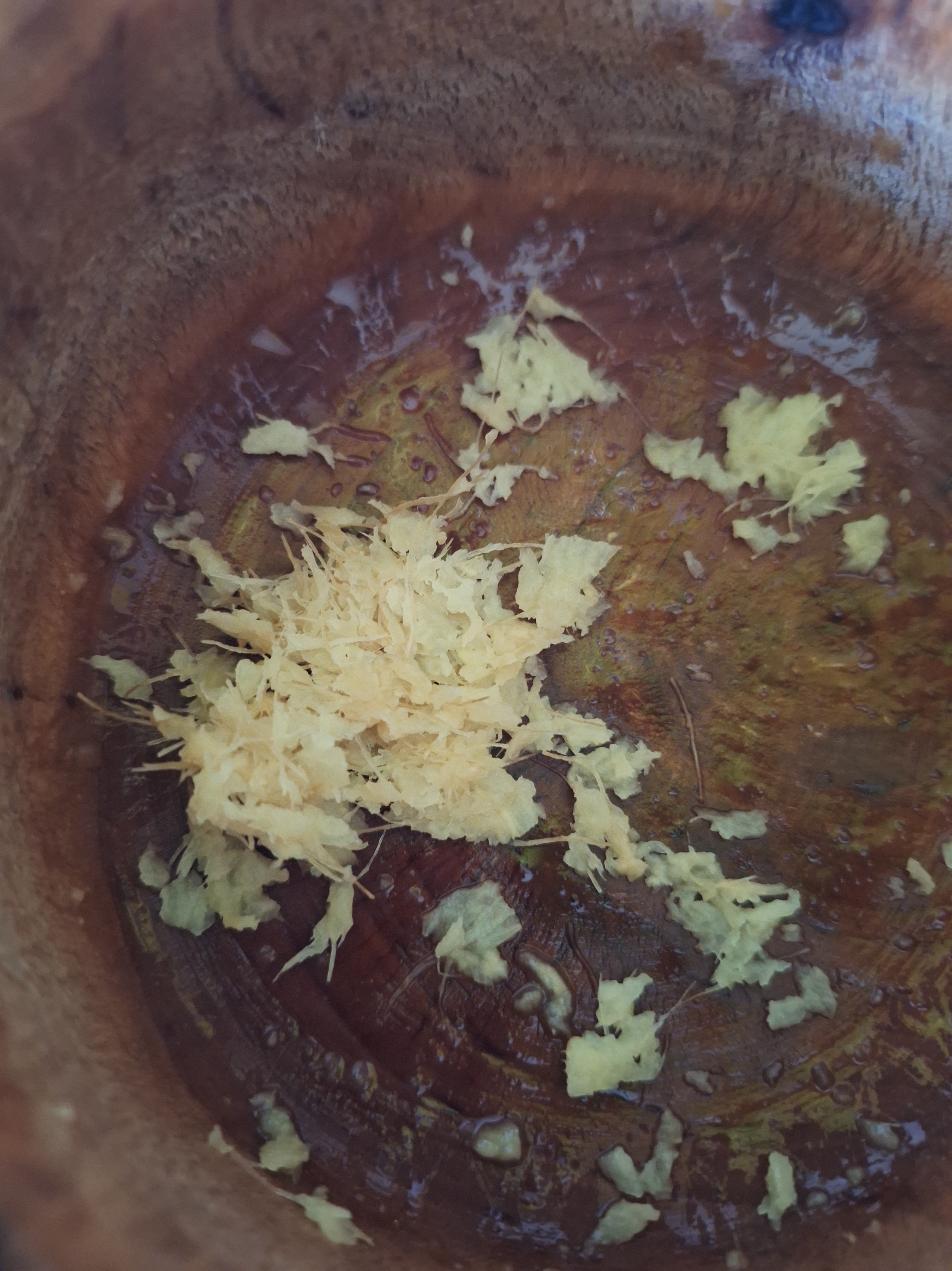 Para rematar el plato he utilizado un aliño de jengibre, perejil, aceite y aminos de coco, que es similar a la salsa de soja pero sin gluten y con un sabor un poquito más dulce. El resultado merece la pena.