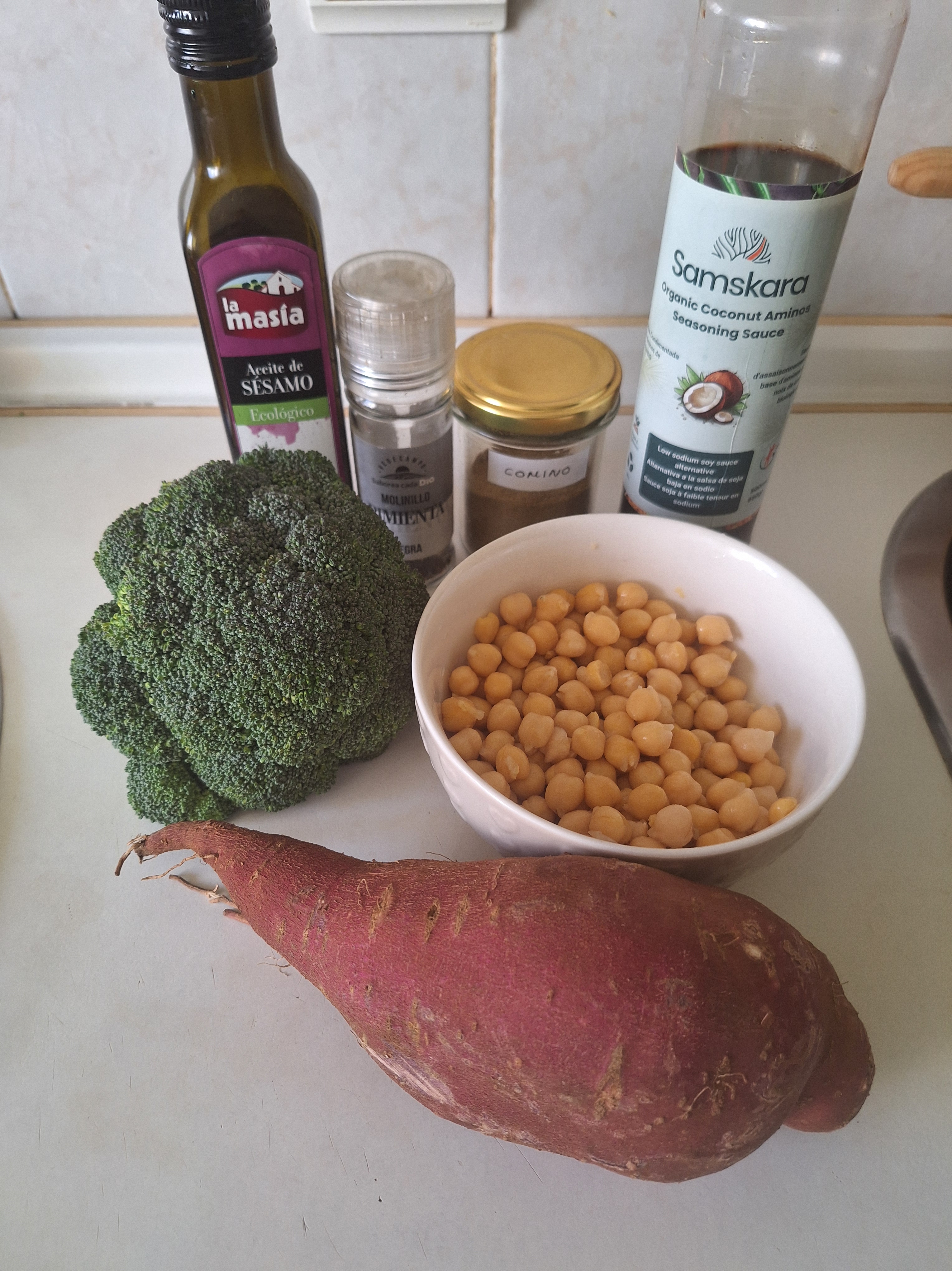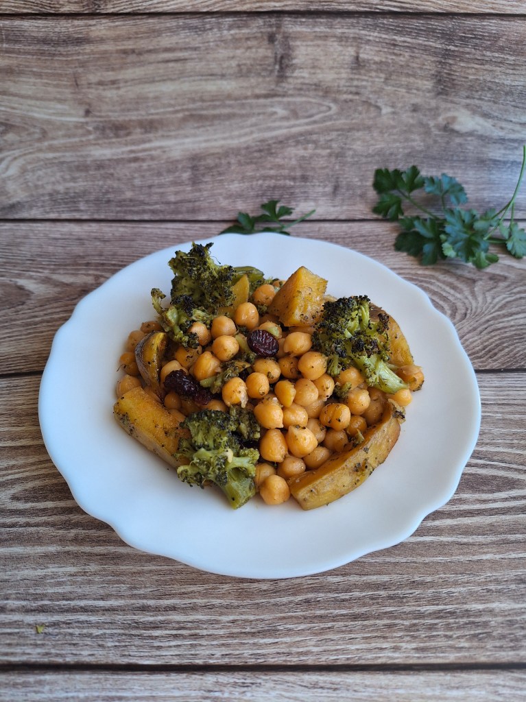 ENSALADA TEMPLADA DE GARBANZOS, BRÓCOLI Y BONIATO