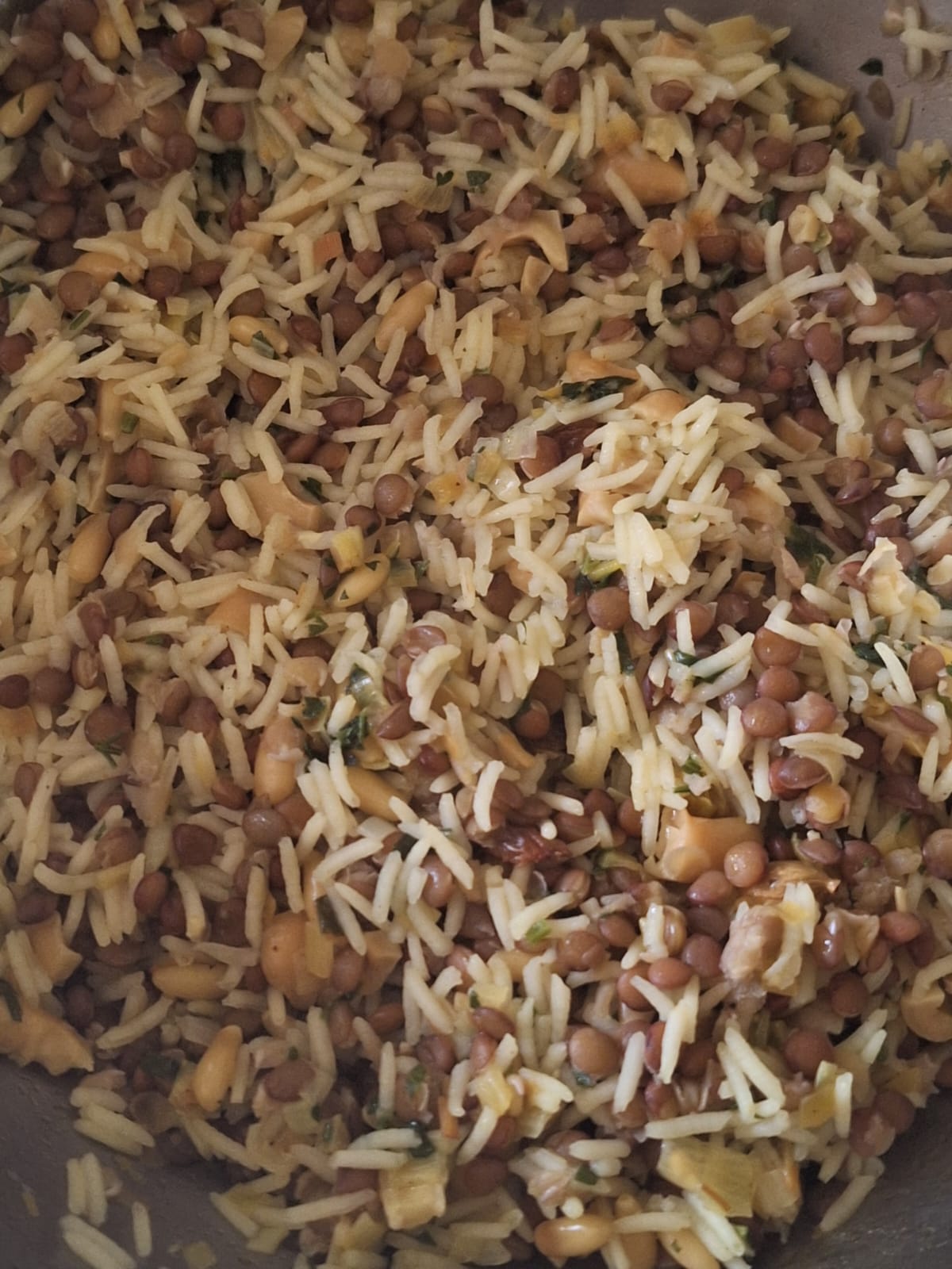 Este es el resultado: un arroz especiado, con un toque árabe muy rico gracias a las especias y a los frutos secos. Para completar el plato añadí un puñadito de lentejas. Ha quedado bastante rico y es una receta muy sencilla y rápida de hacer. Así que tomad nota y animaos a probarla.
