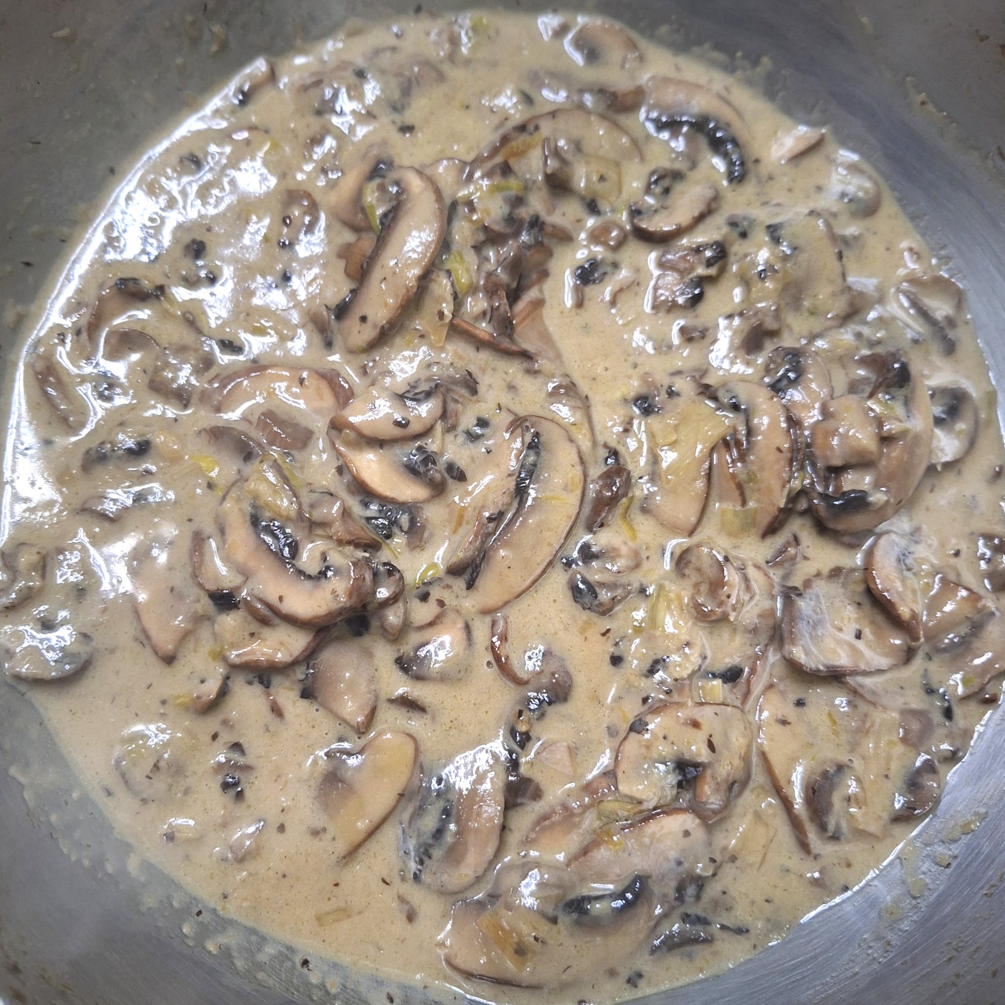 Separa un poco de la nata y disuelve la maicena. Agrega a los portobellos y mezcla todo bien hasta que espese.