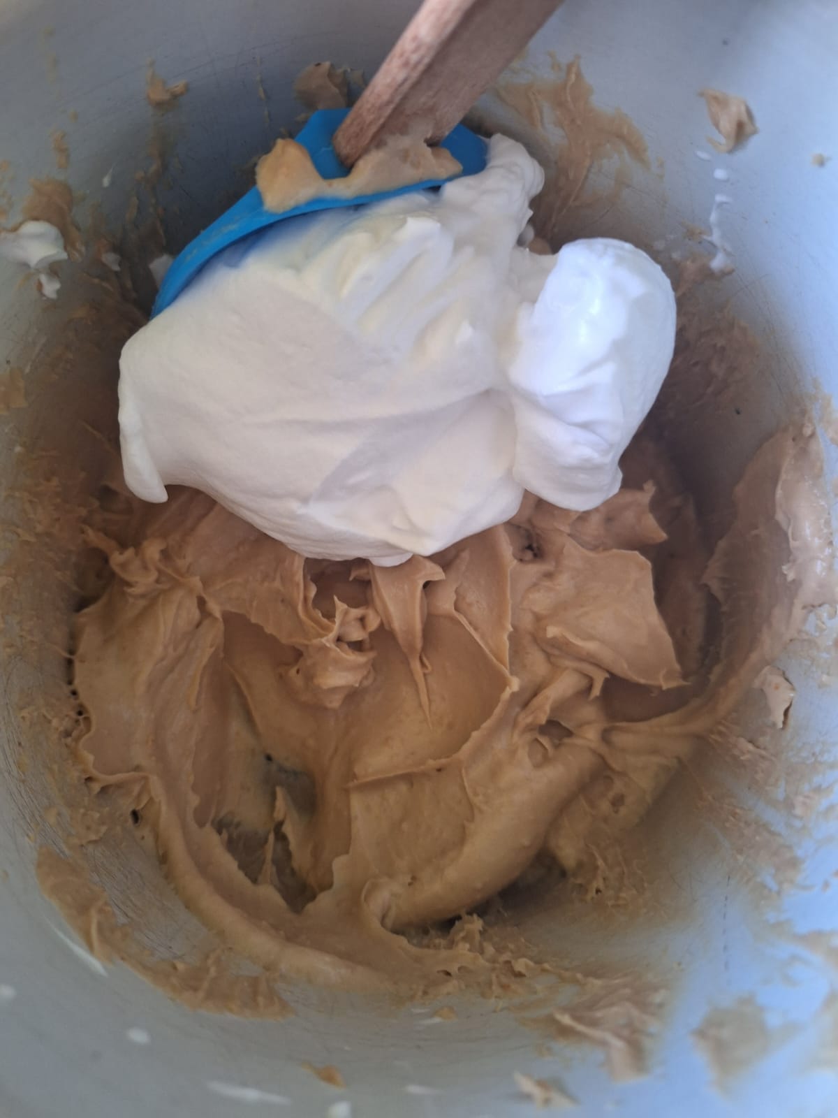Retira el film y decora. Si te sobra algo de crema, decora con una manga pastelera y unos granos de café.