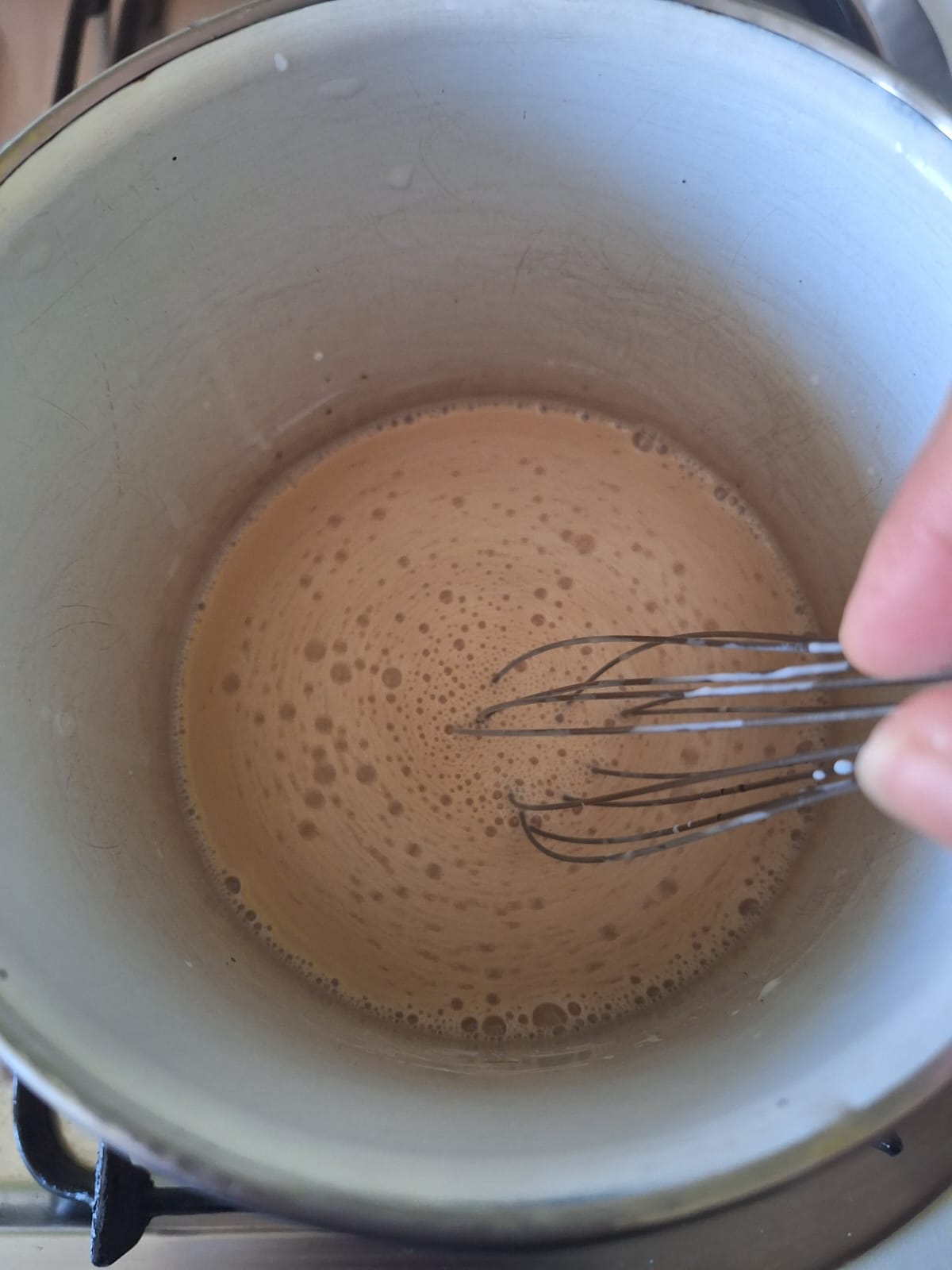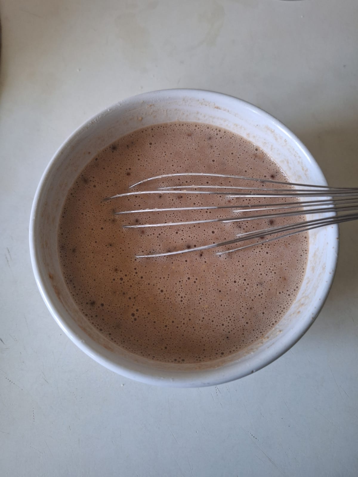 Una vez que la crema esté fría prepara los crepes. Lo primero que tienes que hacer es mezclar el lino con agua templada y dejar que se hidrate durante unos 10 minutos.