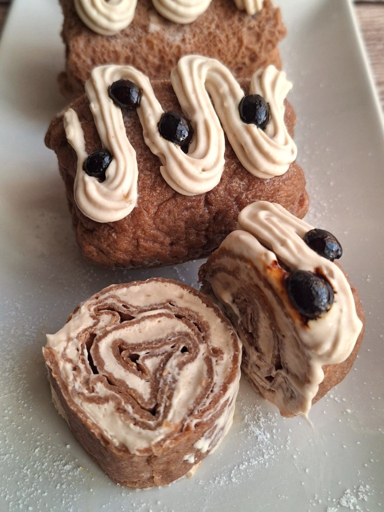 ROLL CAKE DE ALGARROBA Y CREMA DE CAFÉ
