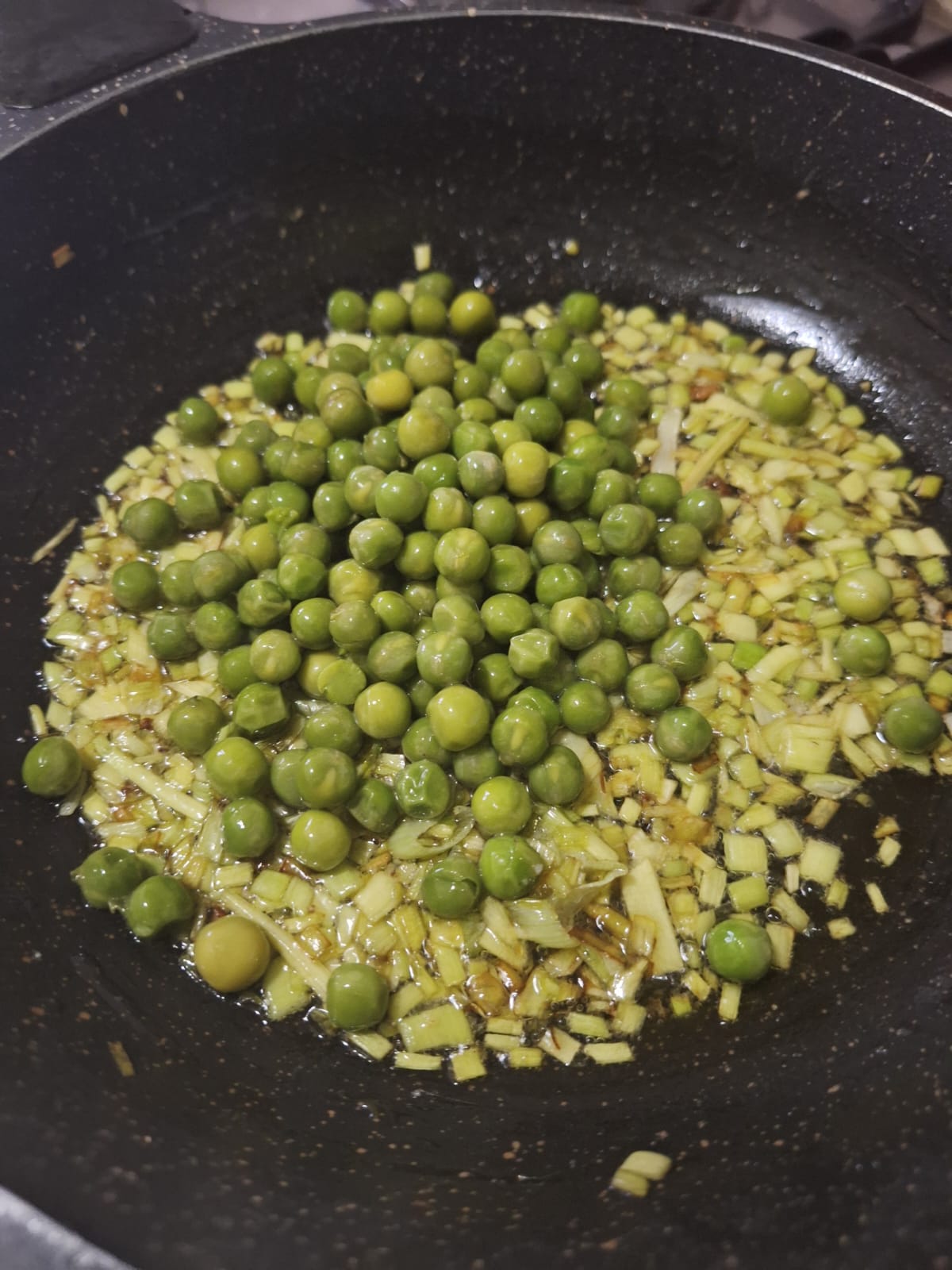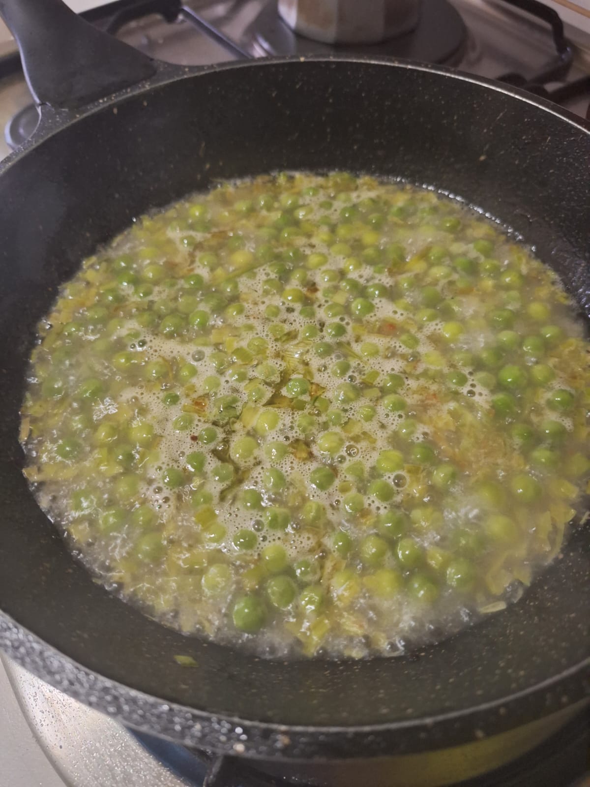 Cocina 5 minutos más. Retira del fuego, sirve y decora con los guisantes que tenías reservados.