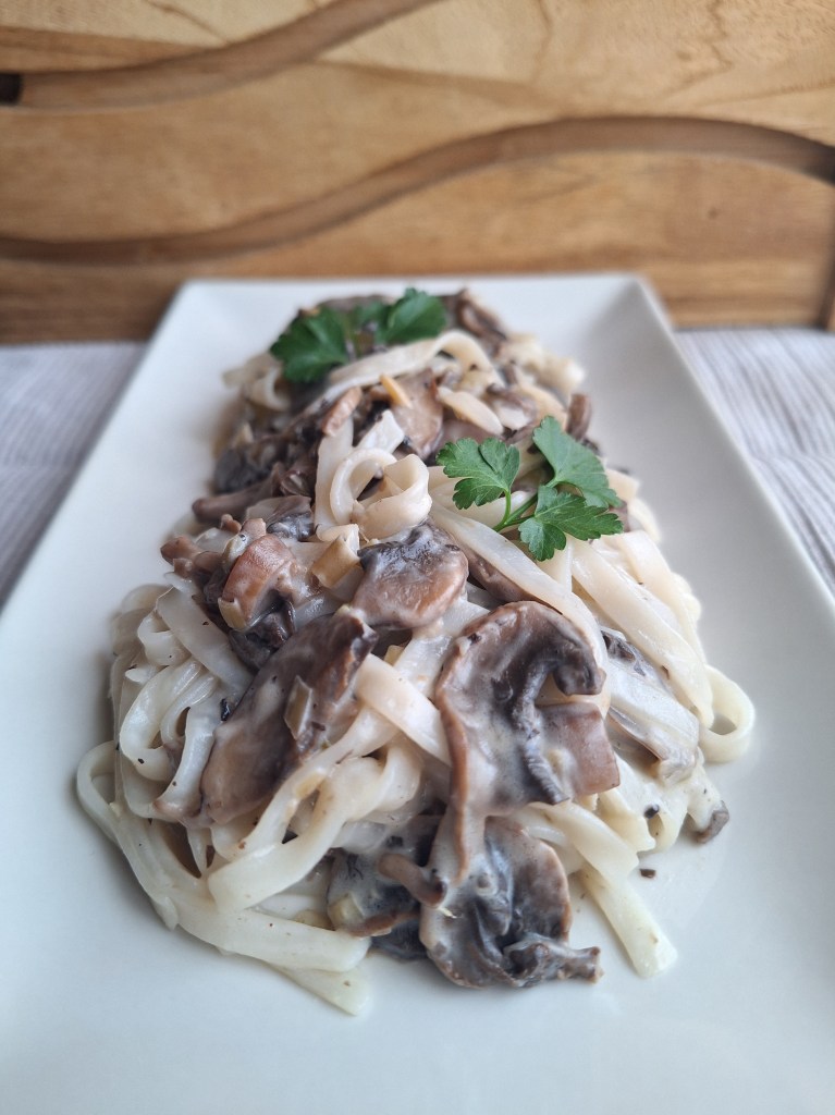 TALLARINES DE ARROZ CON PORTOBELLOS