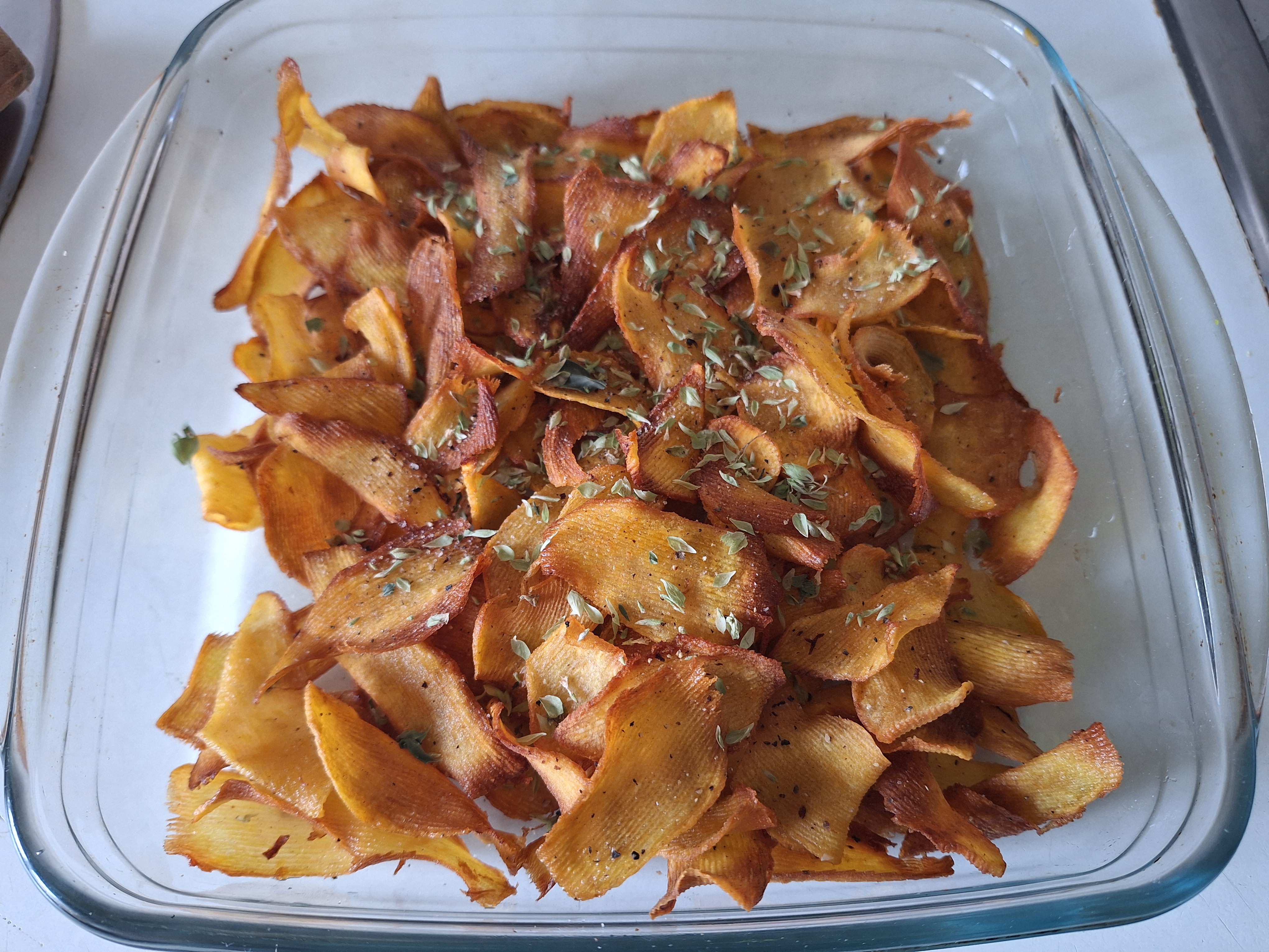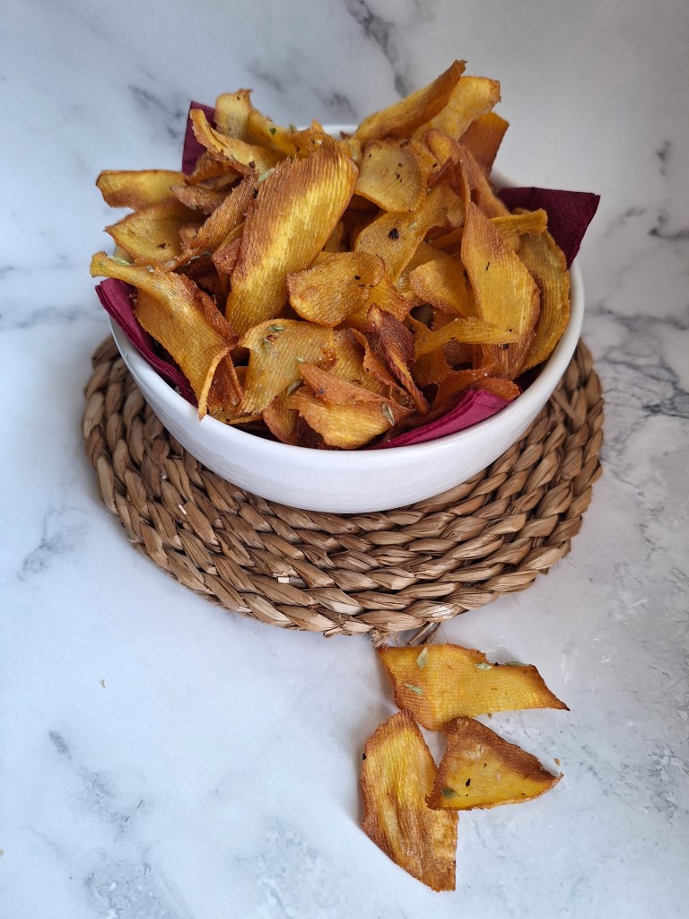 !Buenos días cauliflagüers! Hoy os traigo una receta sencillísima, una idea de picoteo saludable que estoy segura que os va a sorprender. Se trata de unos chips de boniato, mi tubérculo favorito por excelencia y uno de mis alimentos estrella del invierno. Esta receta la podéis hacer también con patatas y ya no necesitaréis comprar las comerciales nunca más. Lo único que necesitáis es una mandolina o un rallador para hacer unas láminas lo más finas posibles, para que una vez hechas queden crujientes.