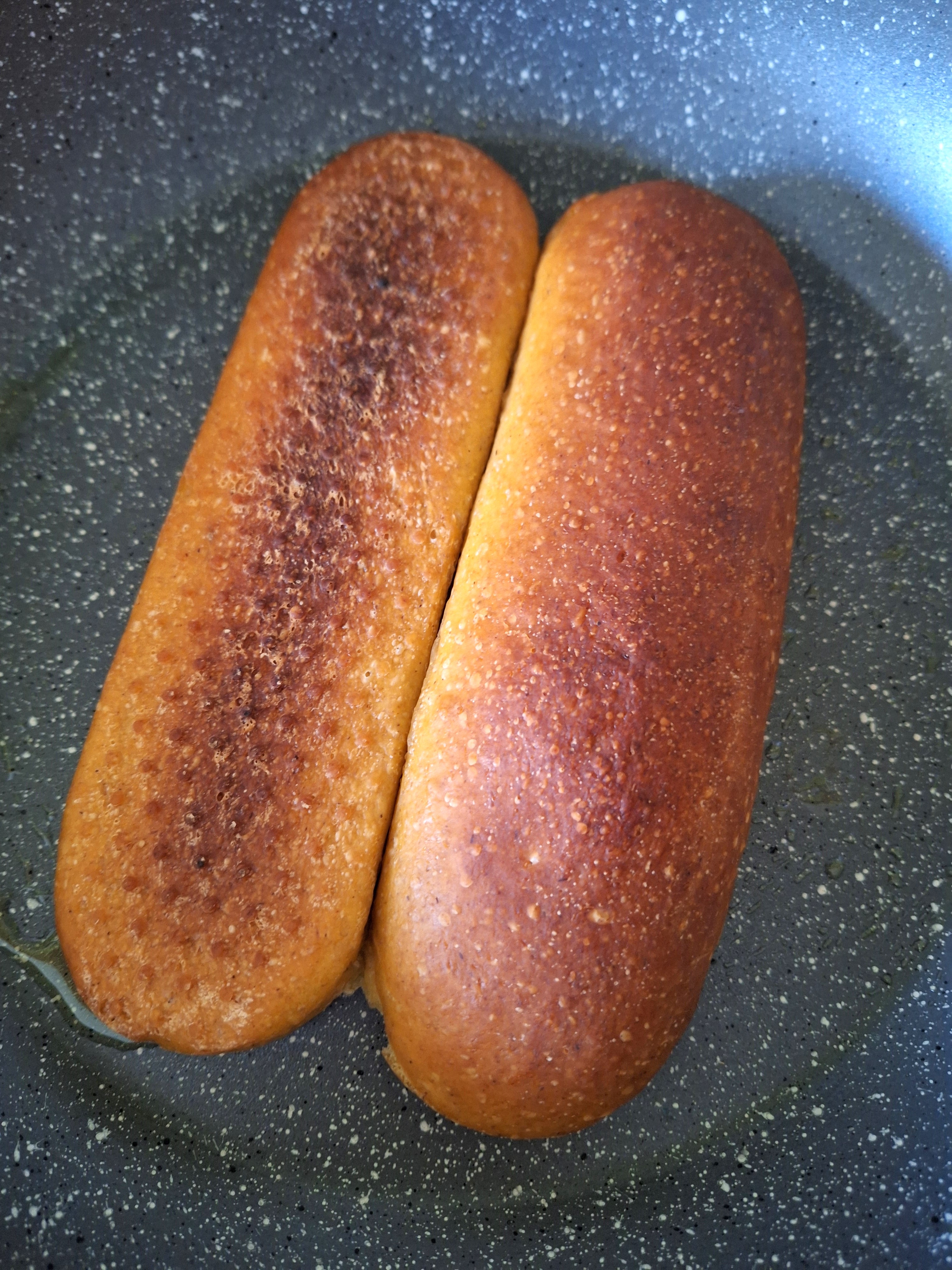 He hecho pan de hotdog brioche y el resultado ha sido un pan con una miga muy tierna y esponjosa. He sustituido la ternera por tiras de carne vegetal de haba y guisante, ya que la soja la tengo prohibida y queso Cheddar vegano, tanto en salsa como en lonchas. Tanto la receta del pan como la del Cheddar vegano os la compartiré en las próximas semnas.