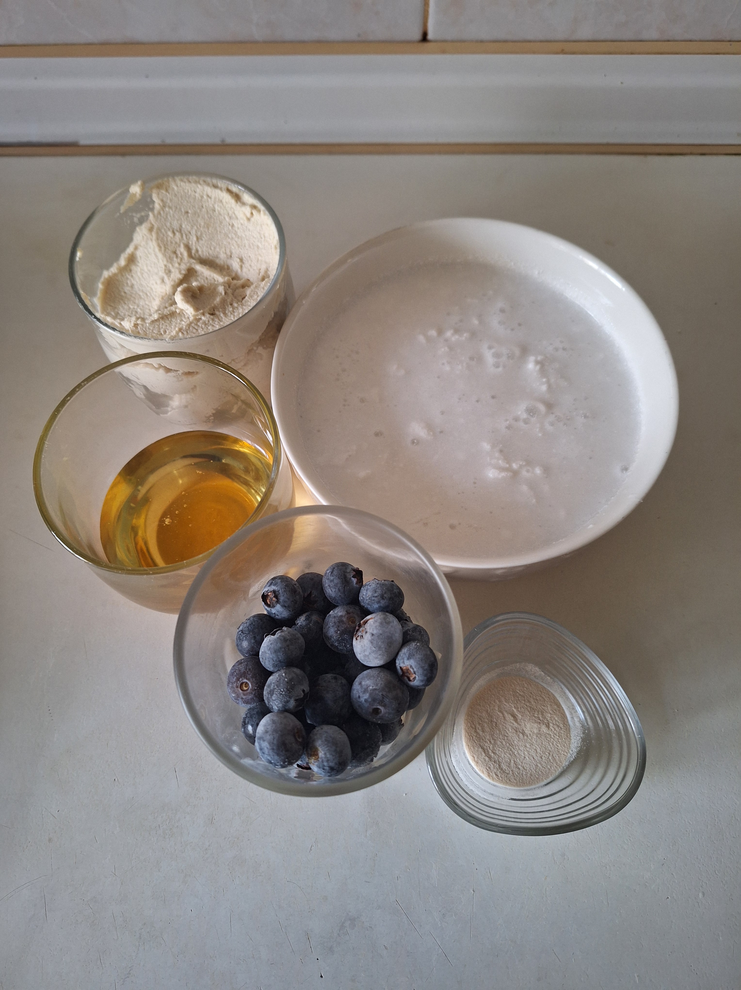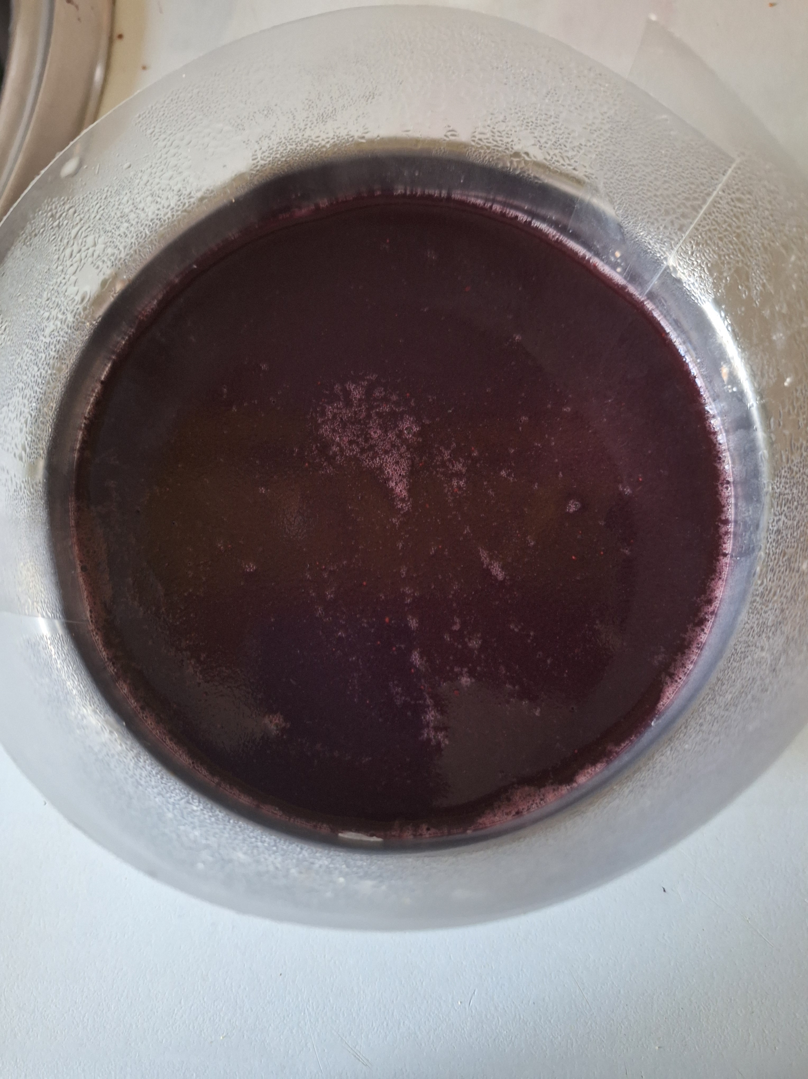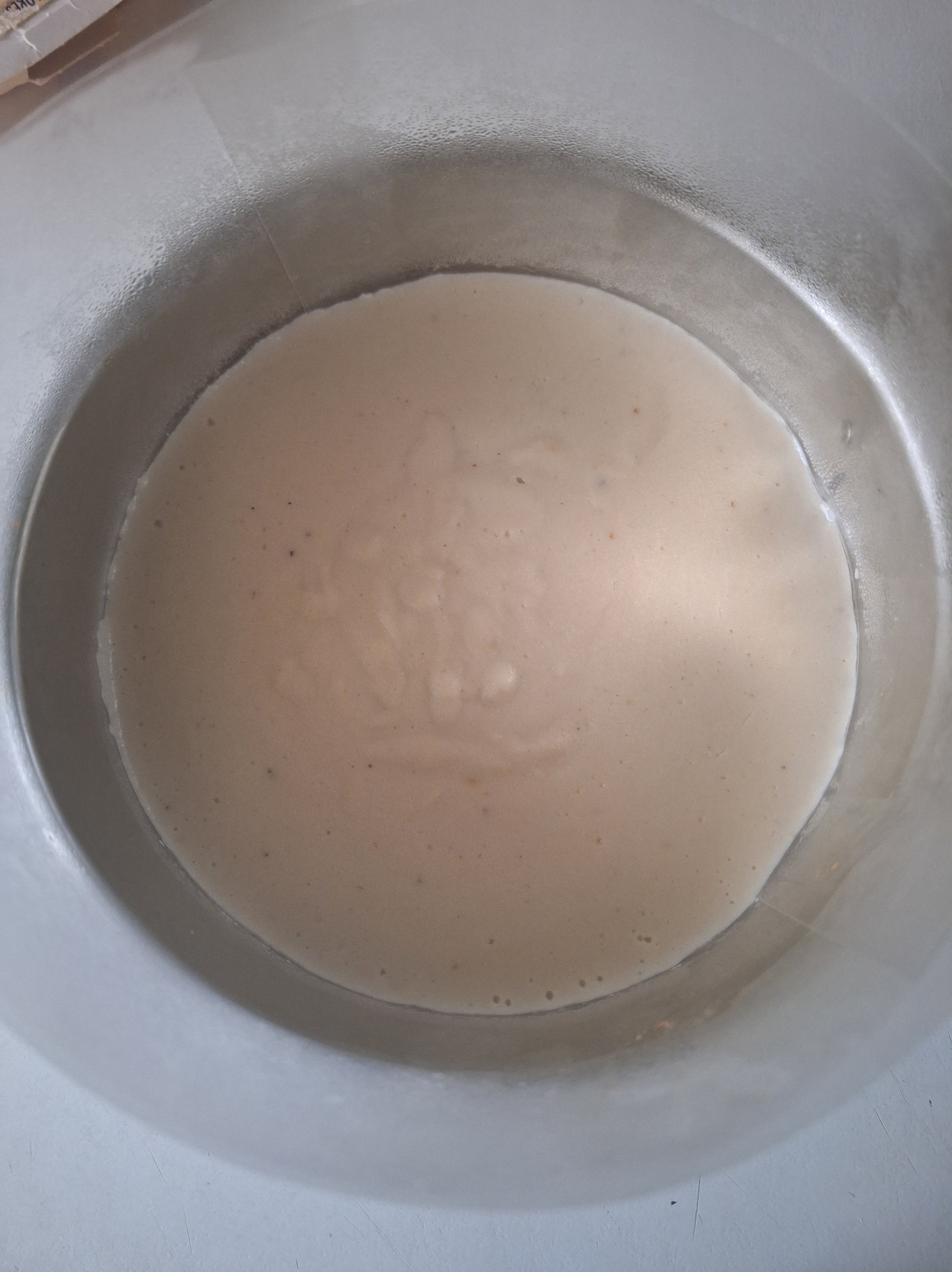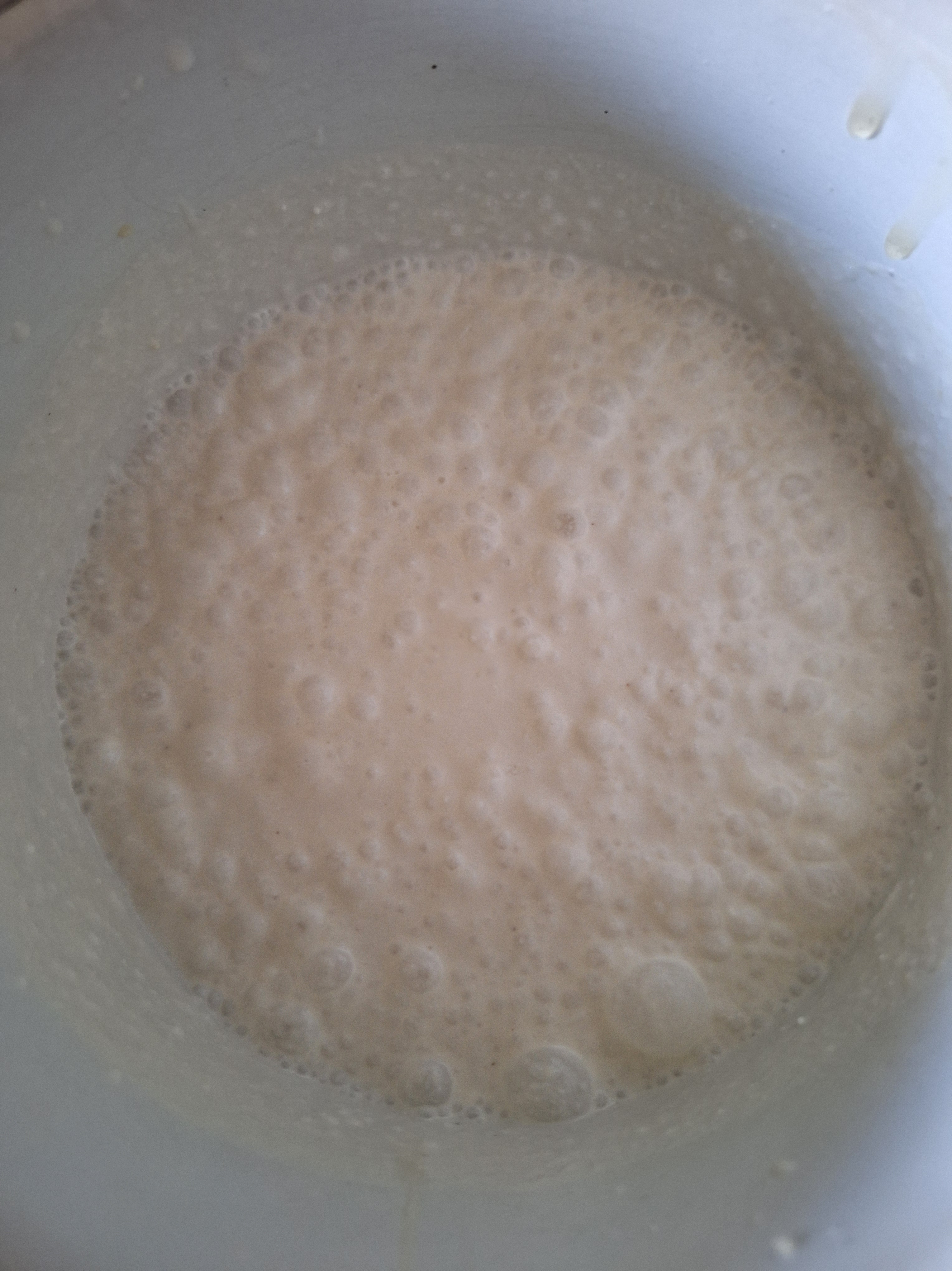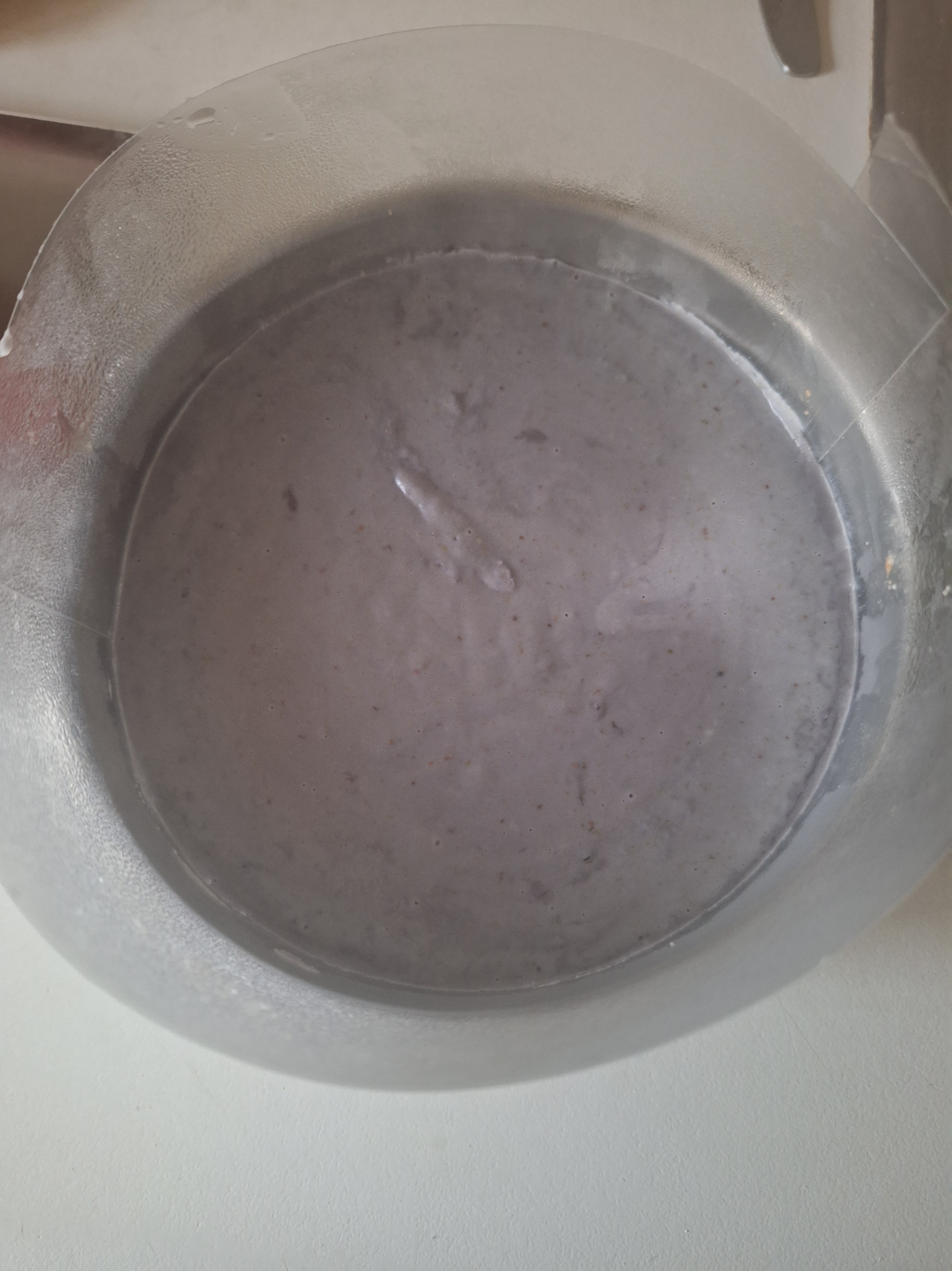 Vierte en un recipiente de cristal, cubre con film y tapa. Deja fermentar en lugar cálido unas 24 horas (dentro del horno apagado está bien, yo lo dejé unas 32 horas).