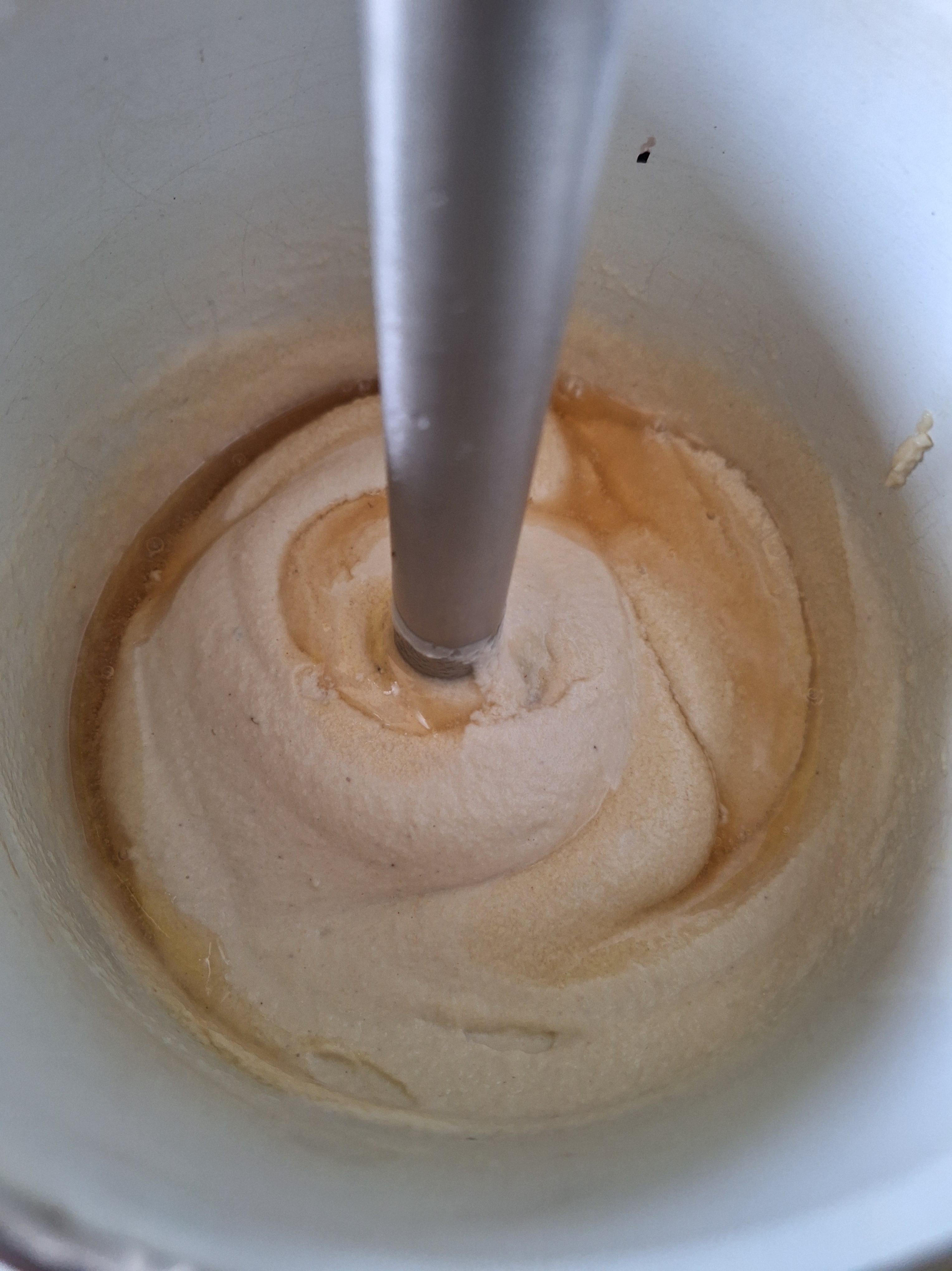 Disuelve el contenido de las cápsulas en un poquito del agua de la receta, añade al vaso junto con el resto del agua y la levadura nutricional y tritura muy bien hasta obtener una masa suave y sin grumos. Si necesitas un poco más de agua añádela, pero intenta que no sea demasiada.