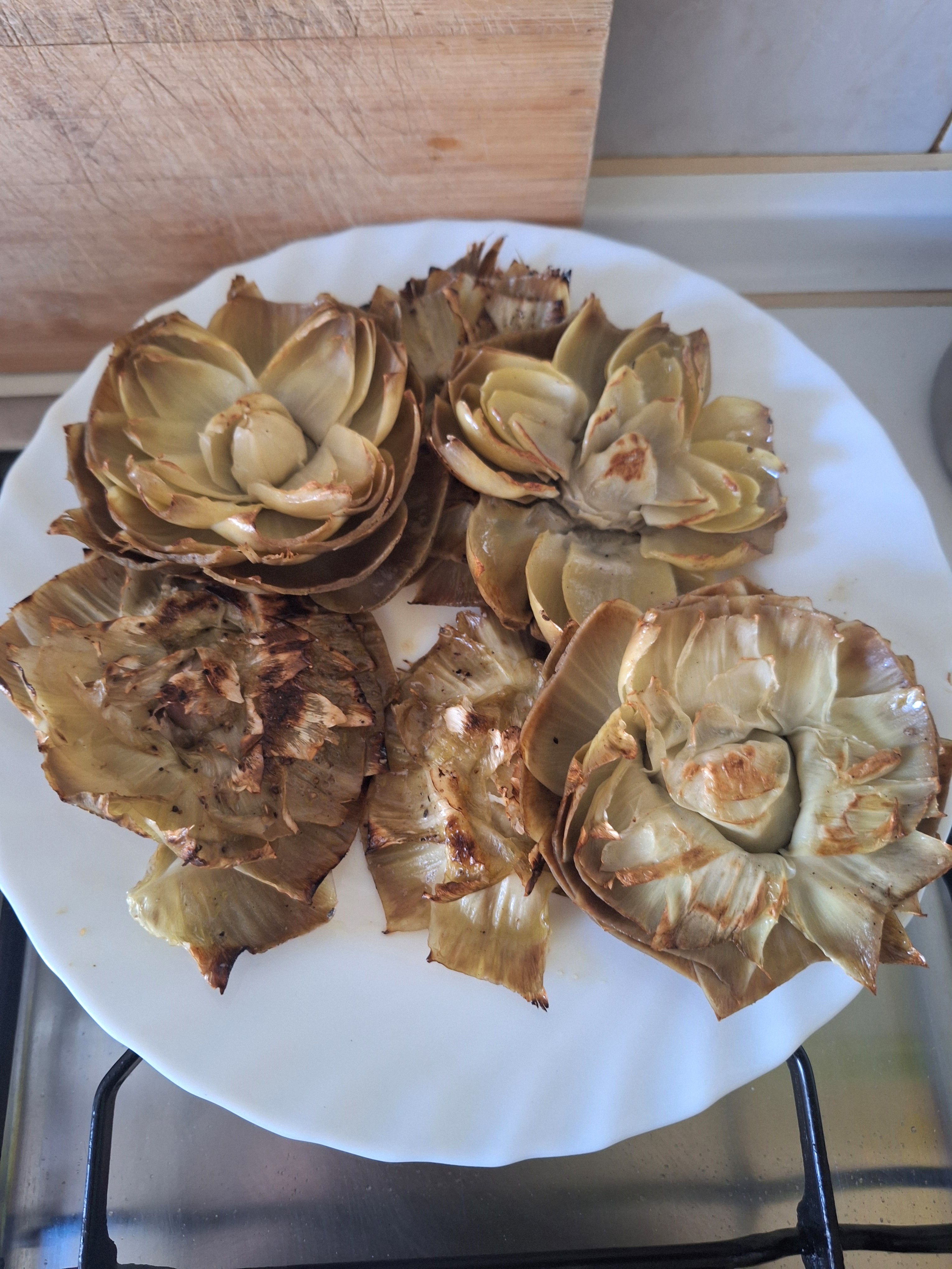Hoy os traigo una receta de las que yo llamo «de viernes». Hace cosa de un mes estuve en Toledo y fuimos a comer a un sitio con unas opciones de menú cada cual más rica. Pedí unas flores de alcachofa con almejas y salsa de ostras y me chupé hasta los dedos de lo ricas que estaban. Así que decidí recrear la receta a mi manera y, a falta de ostras, añadí aminos de coco, que además es libre de gluten. El sabor cambia, ya que los aminos son más dulzones. Pero sobra decir que me puse como el Kiko. !A su salud!.