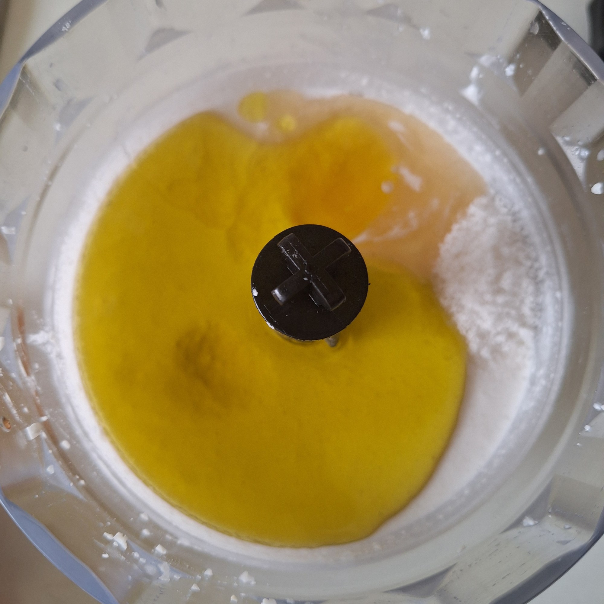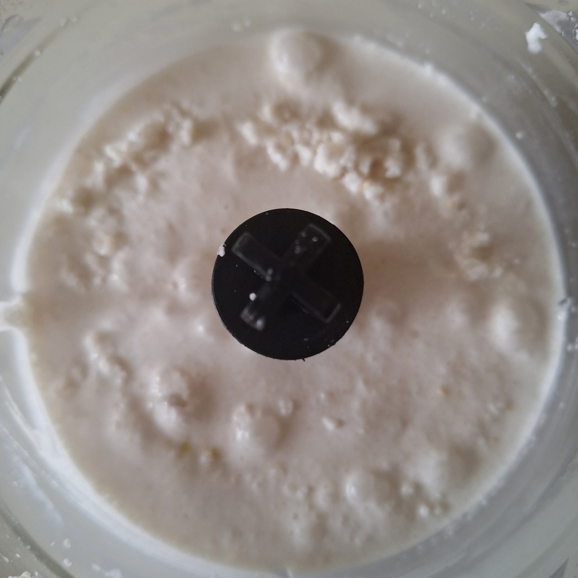 Cuando esté todo bien triturado añade la levadura y tritura nuevamente para integrarla.