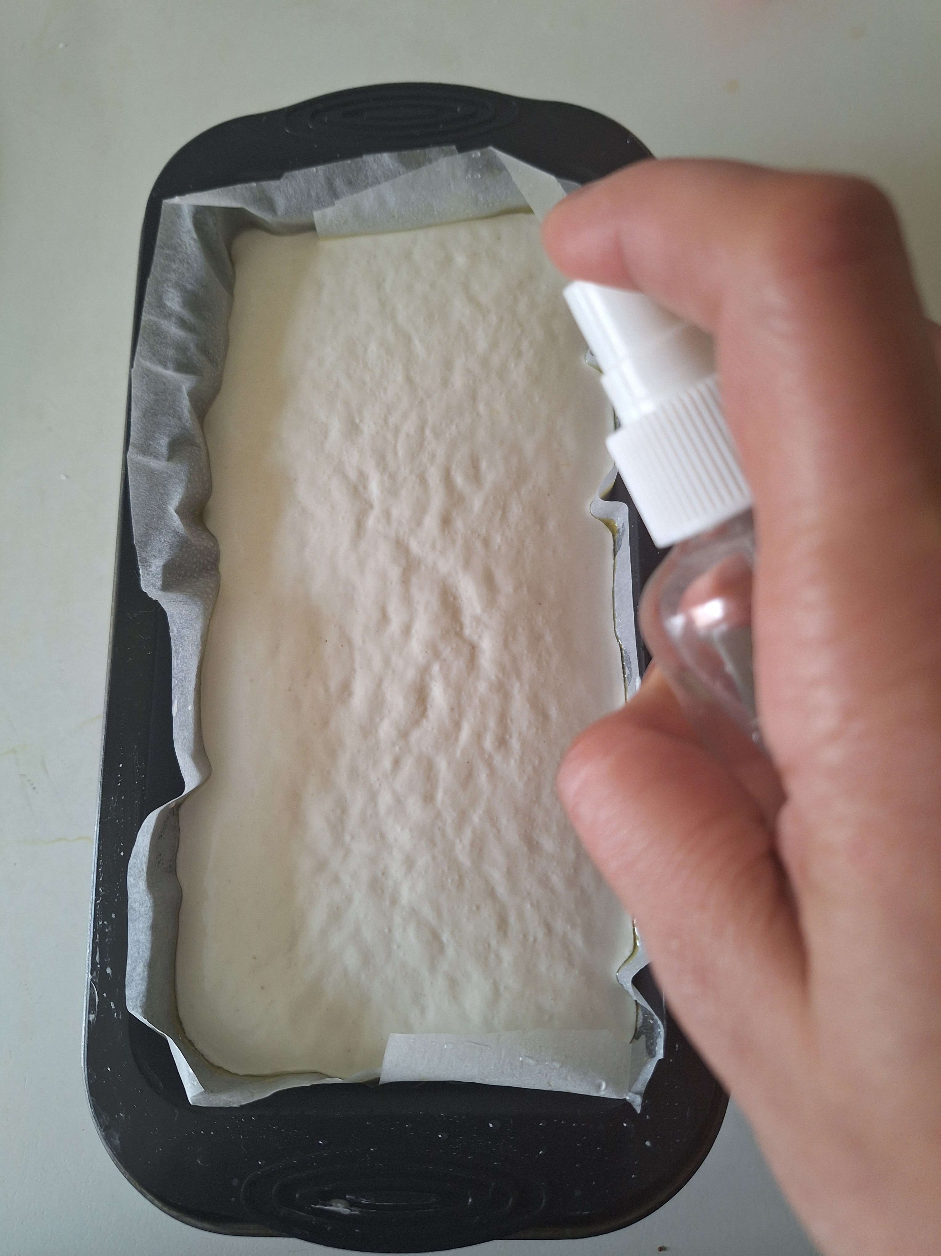 Otro aspecto a tener en cuenta es la hidratación: se pulveriza con un poco de agua antes de la fermentación y antes del horneado. En uno de mis intentos, en el que olvidé este paso, el pan se abrió por completo en la superficie y quedó bastante feo.