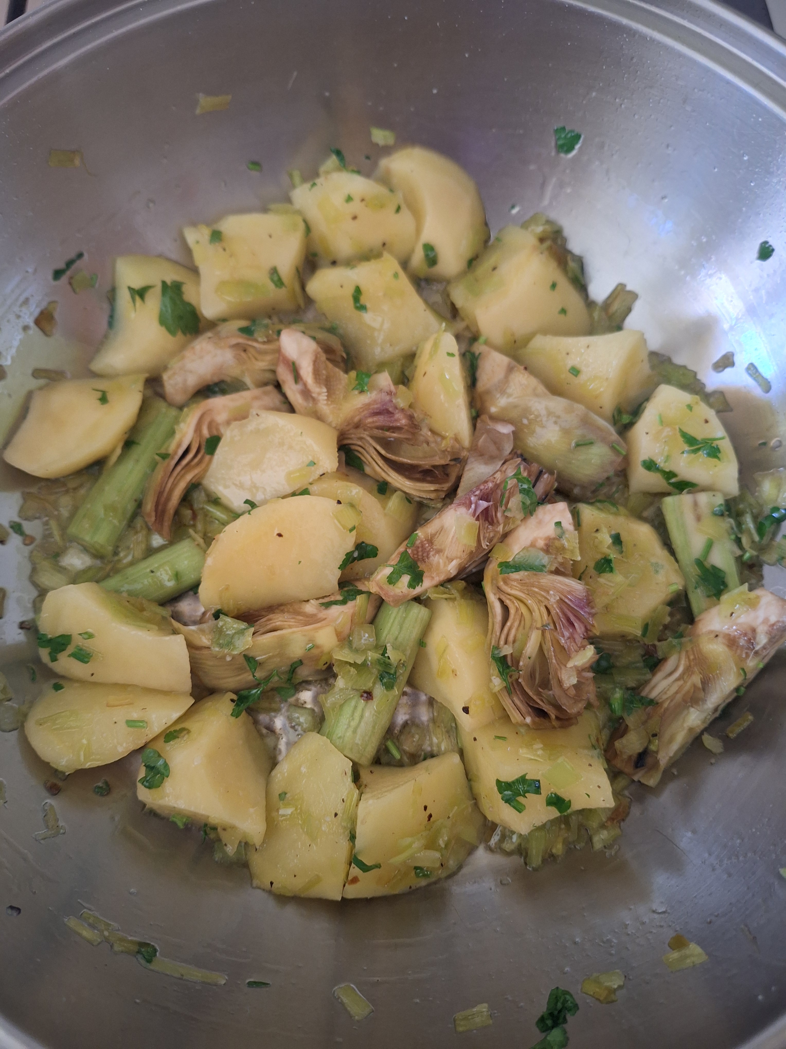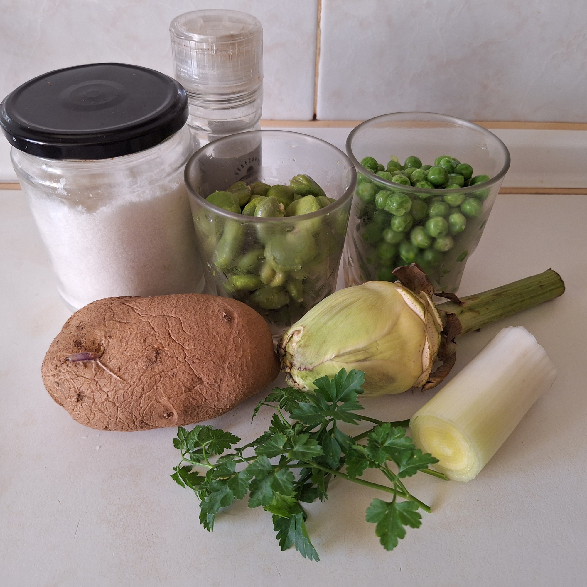 CAZUELA DE GUISANTES, HABAS Y ALCACHOFAS