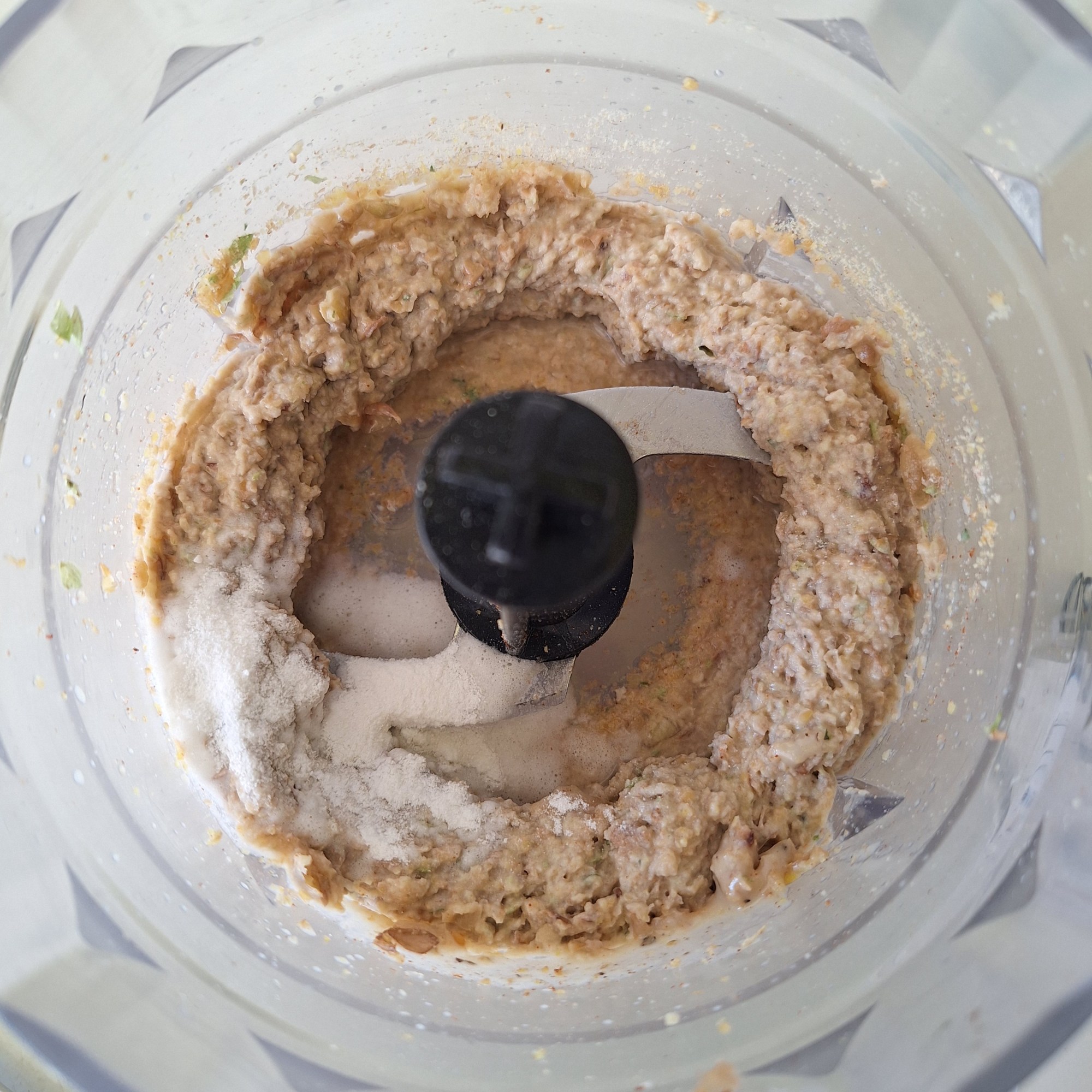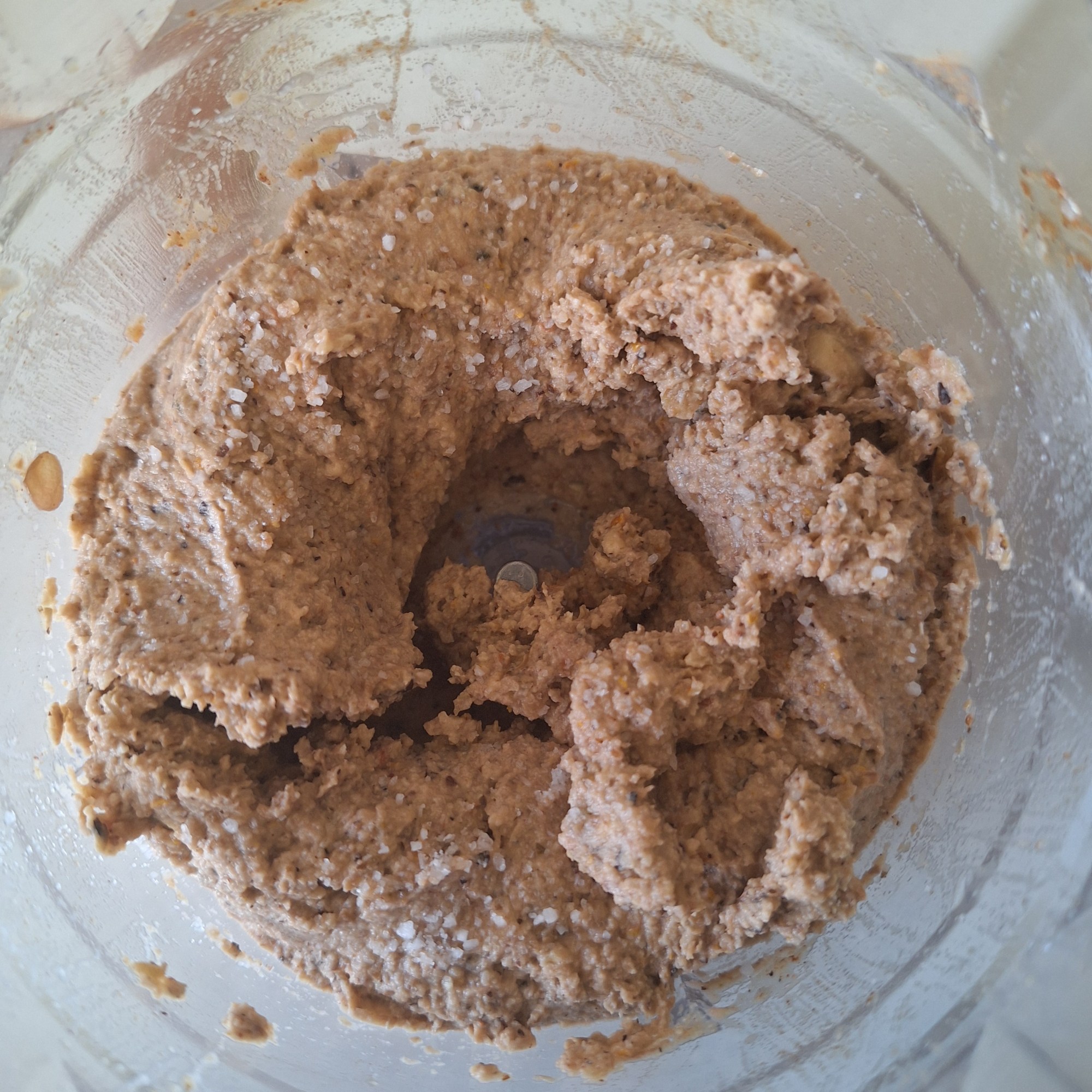 Para el paté: mezcla todos los ingredientes en la trituradora (o en un recipiente grande) y tritura hasta obtener una masa homogénea. Reposa en el frigo unos 30 minutos. Rectifica el punto de sal y comprueba la textura, debe quedar una masa húmeda, pero fácilmente manipulable. Si queda demasiado húmeda, envuelve en papel absorbente para retirar el exceso (tampoco te pases…).
