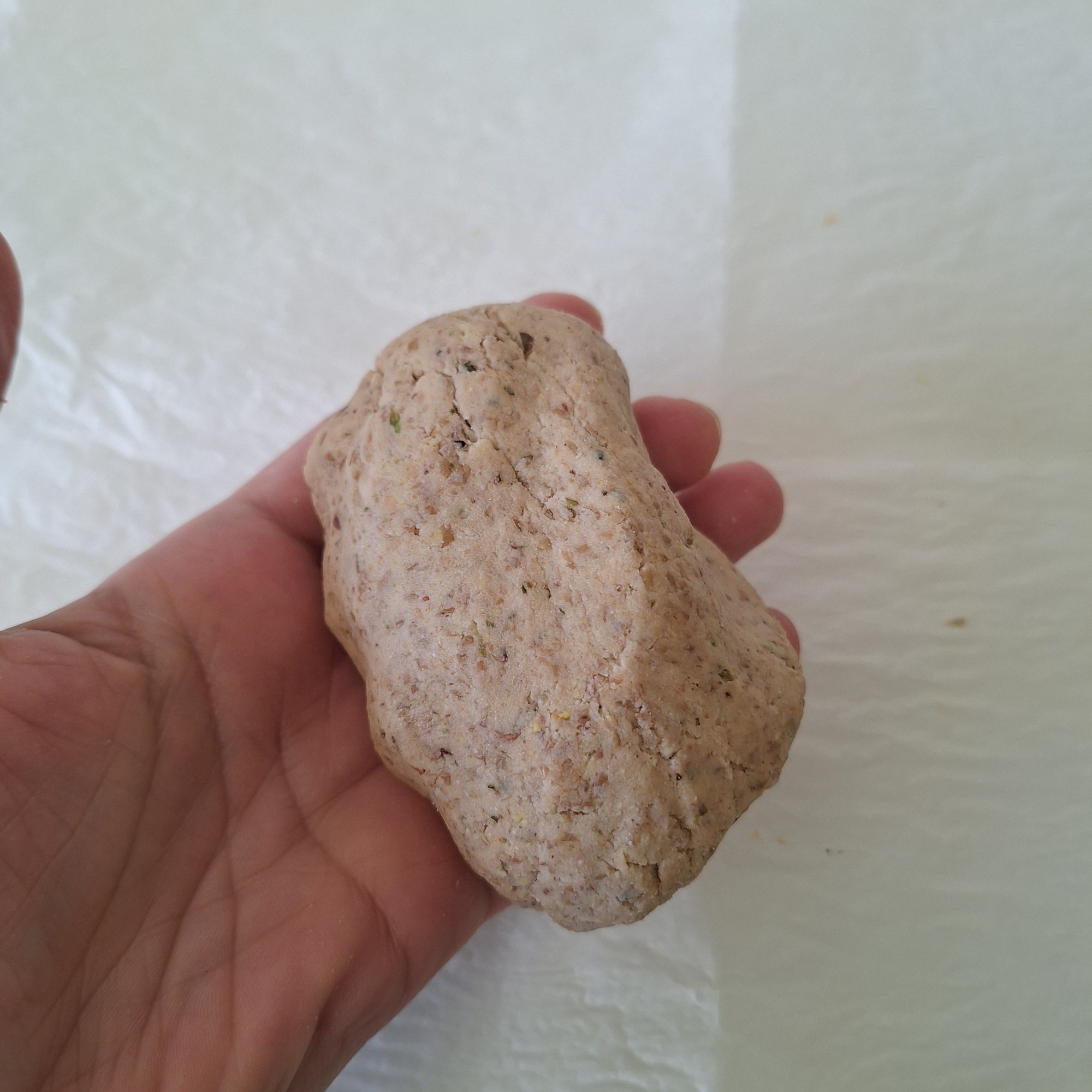 Para los crackers: del total de las lentejas separa 80 gramos y vierte en la trituradora o en un recipiente amplio. Añade el resto de ingredientes (salvo la harina de arroz y la cucharada de agua) y tritura hasta obtener una masa lisa y homogénea. Añade la harina tamizada y mezcla con una cuchara de palo y después con las manos. Bolea y reposa unos 10 minutos para que se hidrate la harina y el lino. Pasado este tiempo comprueba la textura, debe quedar blandita y que no se pegue a las manos. Si queda muy seca añade la cucharada de agua y mezcla bien. Si está muy húmeda, añade un poco más de harina (no demasiada).