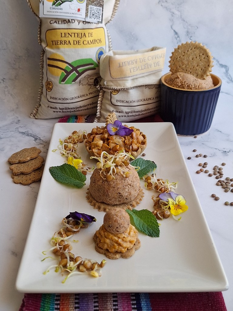 En realidad no os traigo un plato, sino tres elaboraciones en una, todas ellas con la lenteja de Tierra de Campos como ingrediente base. Quería hacer algo alternativo, diferente e inclusivo y que, además, pudiera degustarse de manera independiente o en conjunto, como es el caso. Por otra parte, podéis hacerlo en formato mini, como aperitivo, o como plato principal.