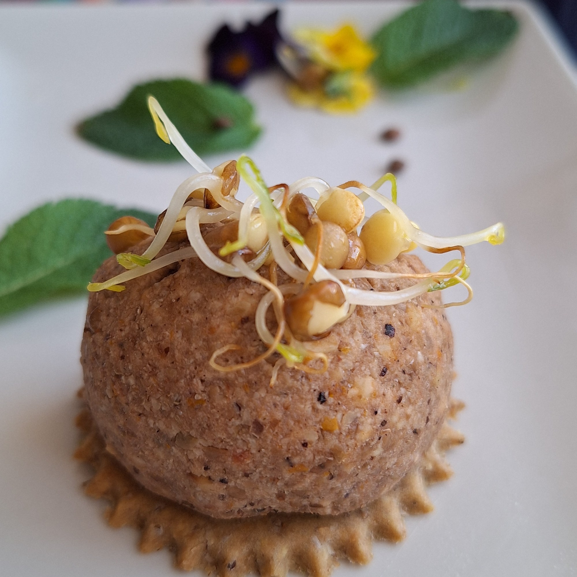 El resultado ha sido muy satisfactorio (además tuve un momento de aventura robándole unos pensamientos del jardín a una vecina…). Os puedo asegurar que quienes lo han probado han flipado un poco cuando les he dicho que el plato estaba elaborado con lentejas y ninguno ha sido capaz de adivinarlo, salvo por los germinados.