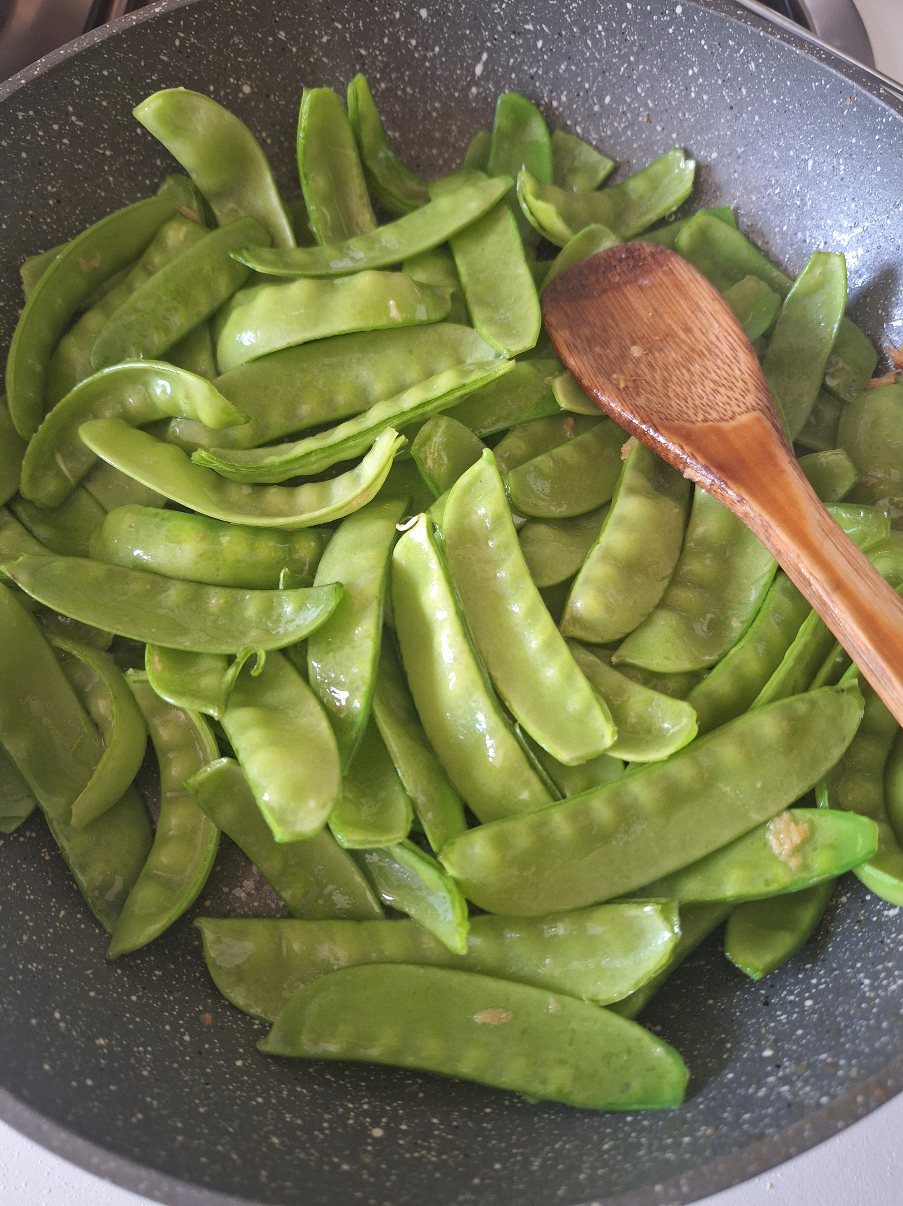 TIRABEQUES SALTEADOS CON GAMBONES