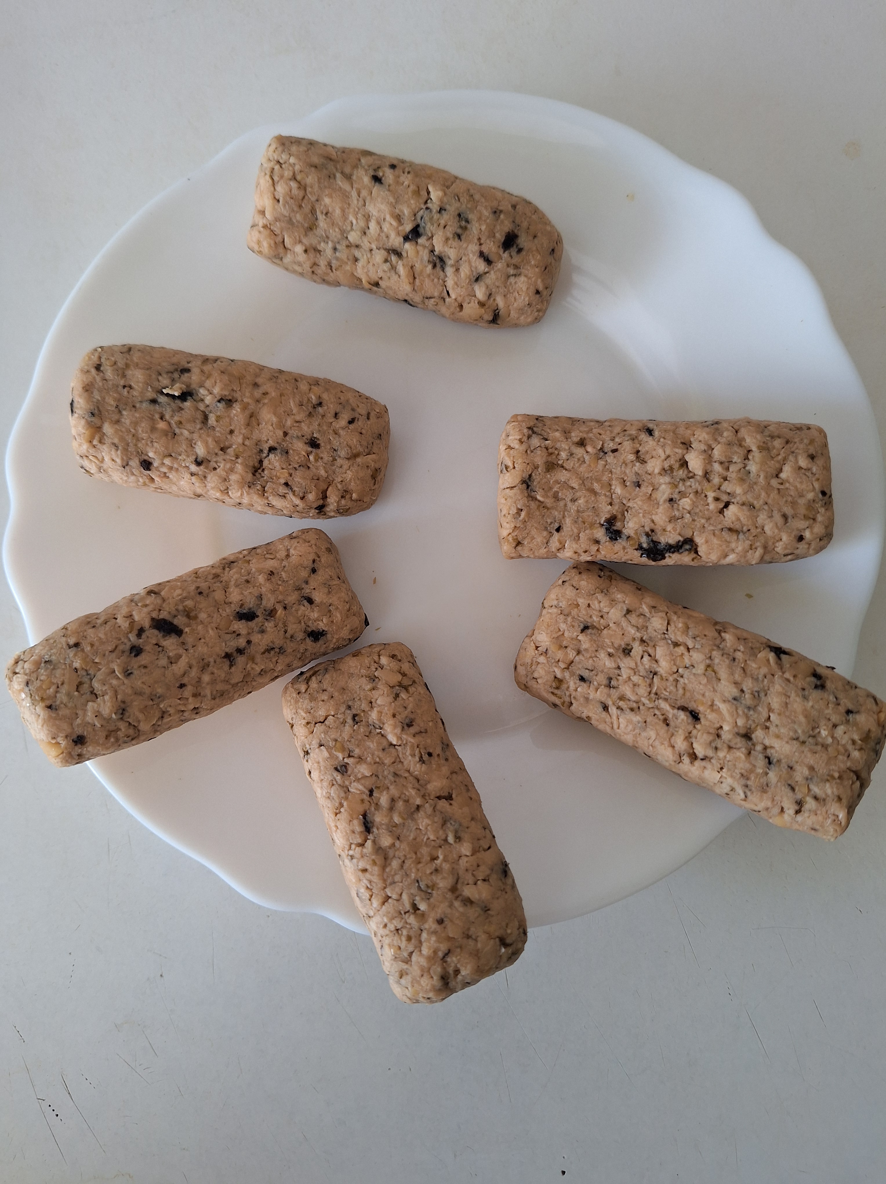 En un recipiente mezcla el texturizado, los garbanzos y el alga triturada. Salpimenta y mezcla de nuevo. Haz pequeñas porciones y compacta con las manos, dando forma de palito. Termina con toda la masa.