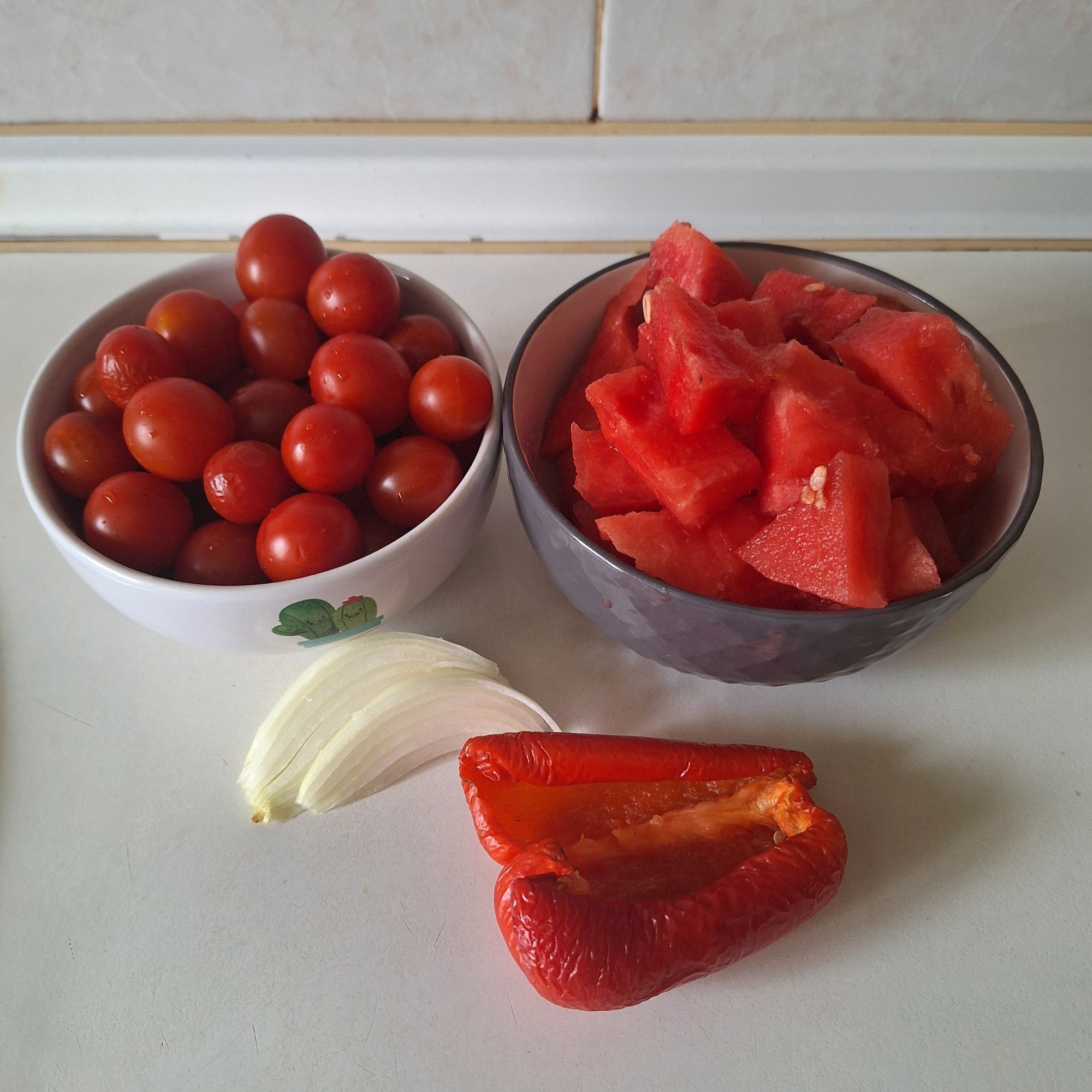 No soy muy fanática del gazpacho, aunque me lo tomo bastante bien si añado algún ingrediente que enmascare un poco el sabor. Hace unos años hice una versión con cerezas y me encantó el resultado. Así que después de la experiencia y tras ver muchísimas recetas en IG durante este verano, decidí hacer mi propio gazpacho de sandía.