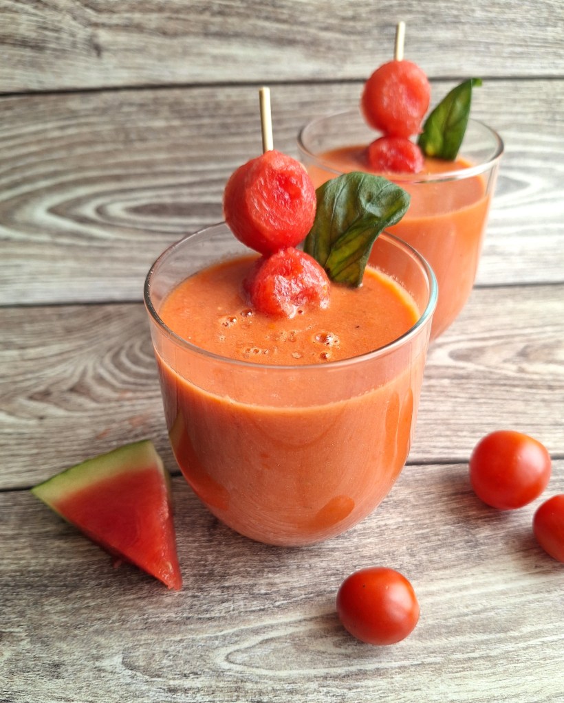 Lo que más me gusta es el gustito dulce que le aporta esta fruta y, lo segundo, que no es necesario añadir demasiada agua, ya que la sandía ya la contiene. Así que tenemos una receta con extra de sabor e hidratación. ¿La habéis probado alguna vez? Si no es así, os lo recomiendo.