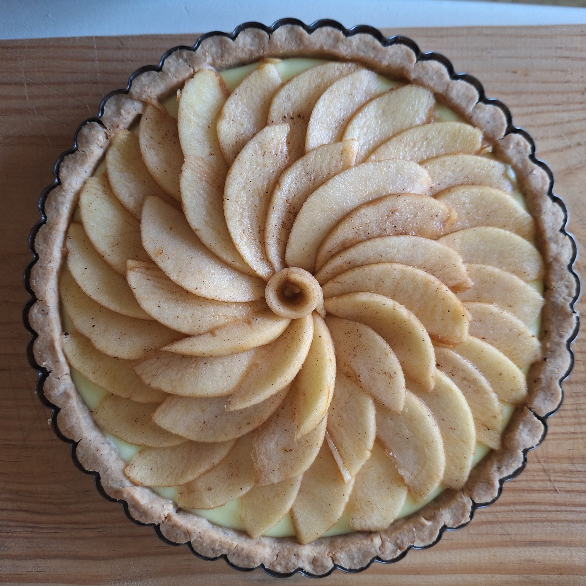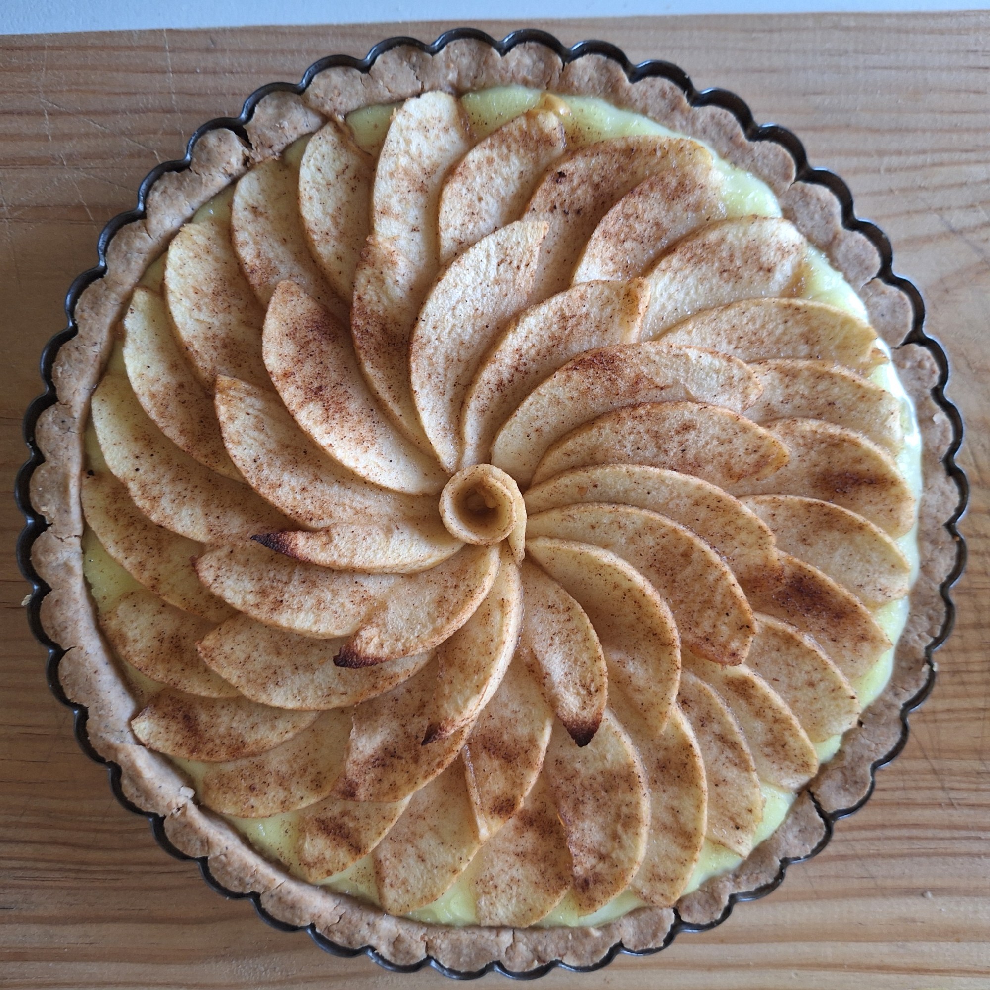 Y creo que ya os he dicho todo. Queda una tarta perfecta: una masa crujiente que se deshace en la boca; un relleno cremoso y muy suave y la manzana tierna que da frescura. Una auténtica delicia, os lo aseguro.