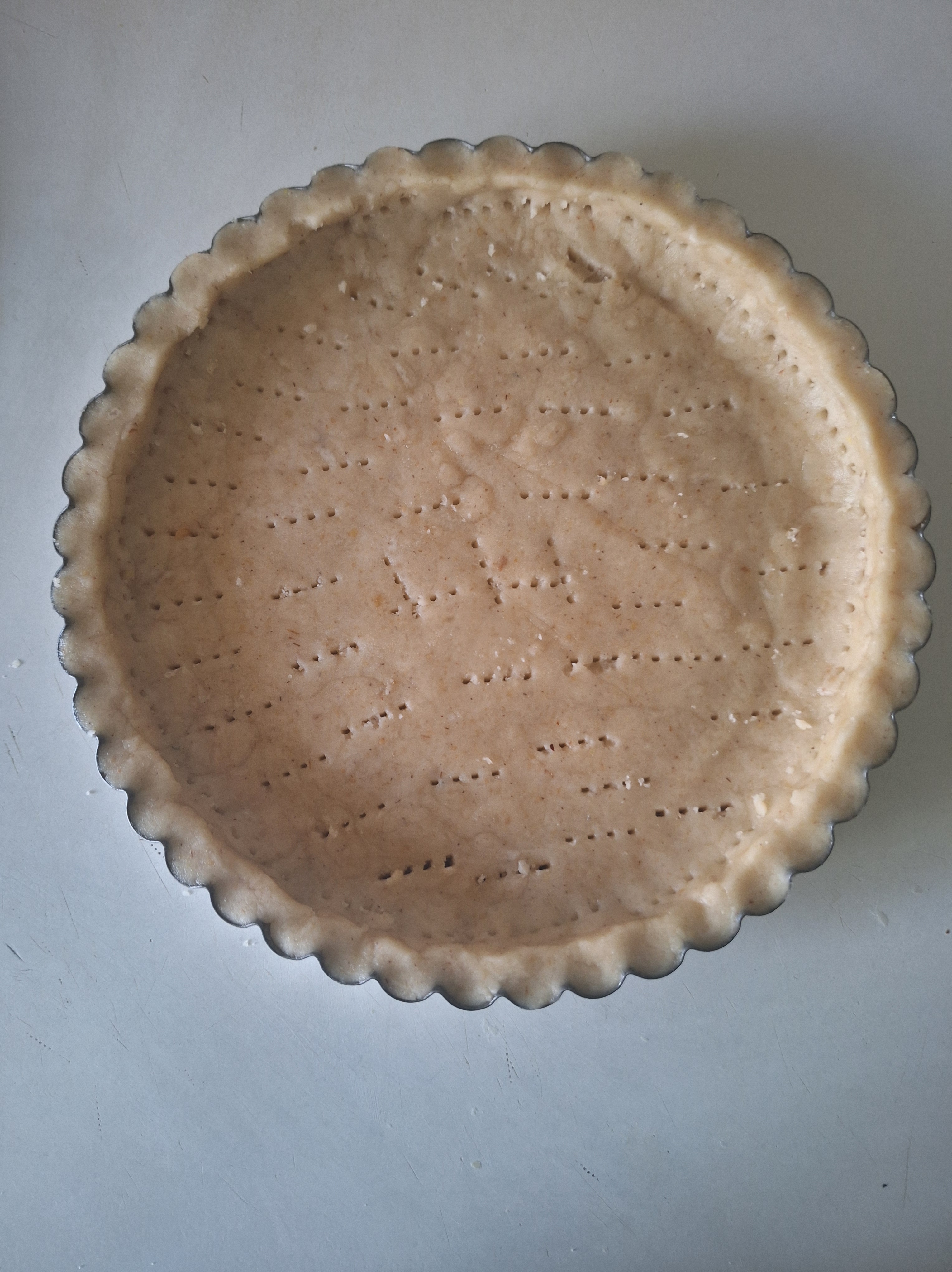 Precalienta el horno a 180ºC durante unos 20 minutos y mantén la base en el frigo durante ese tiempo. Hornea unos 15 minutos o hasta que la masa esté seca al tacto y un poco dorada.