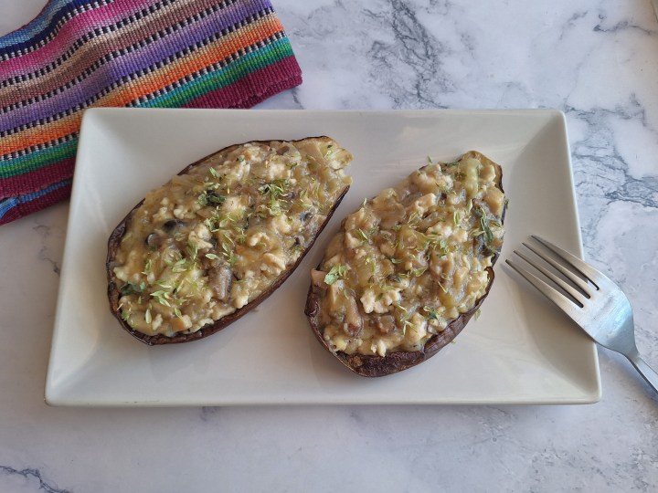 Rellena las berenjenas, espolvorea orégano por encima y disfruta.
