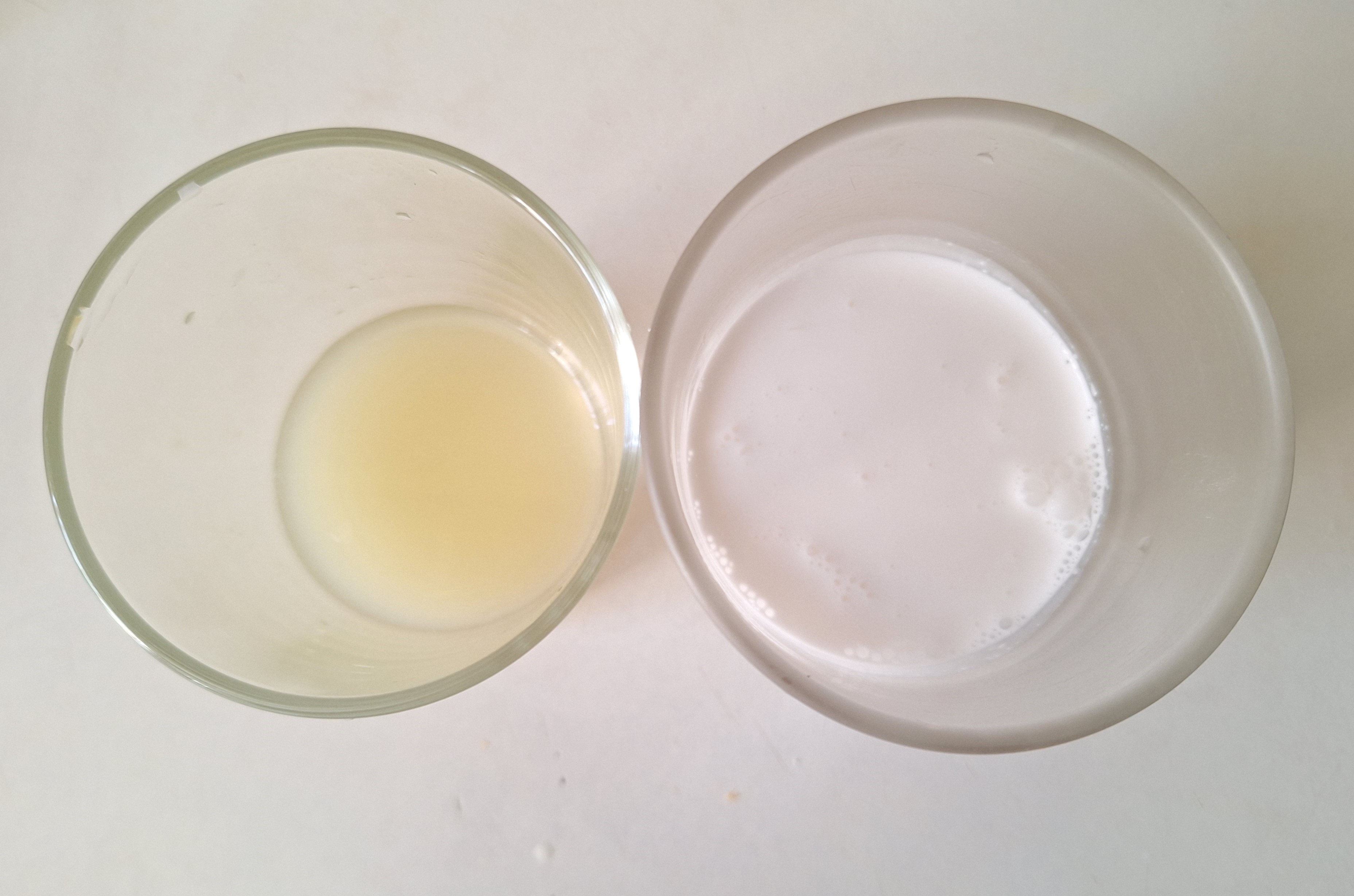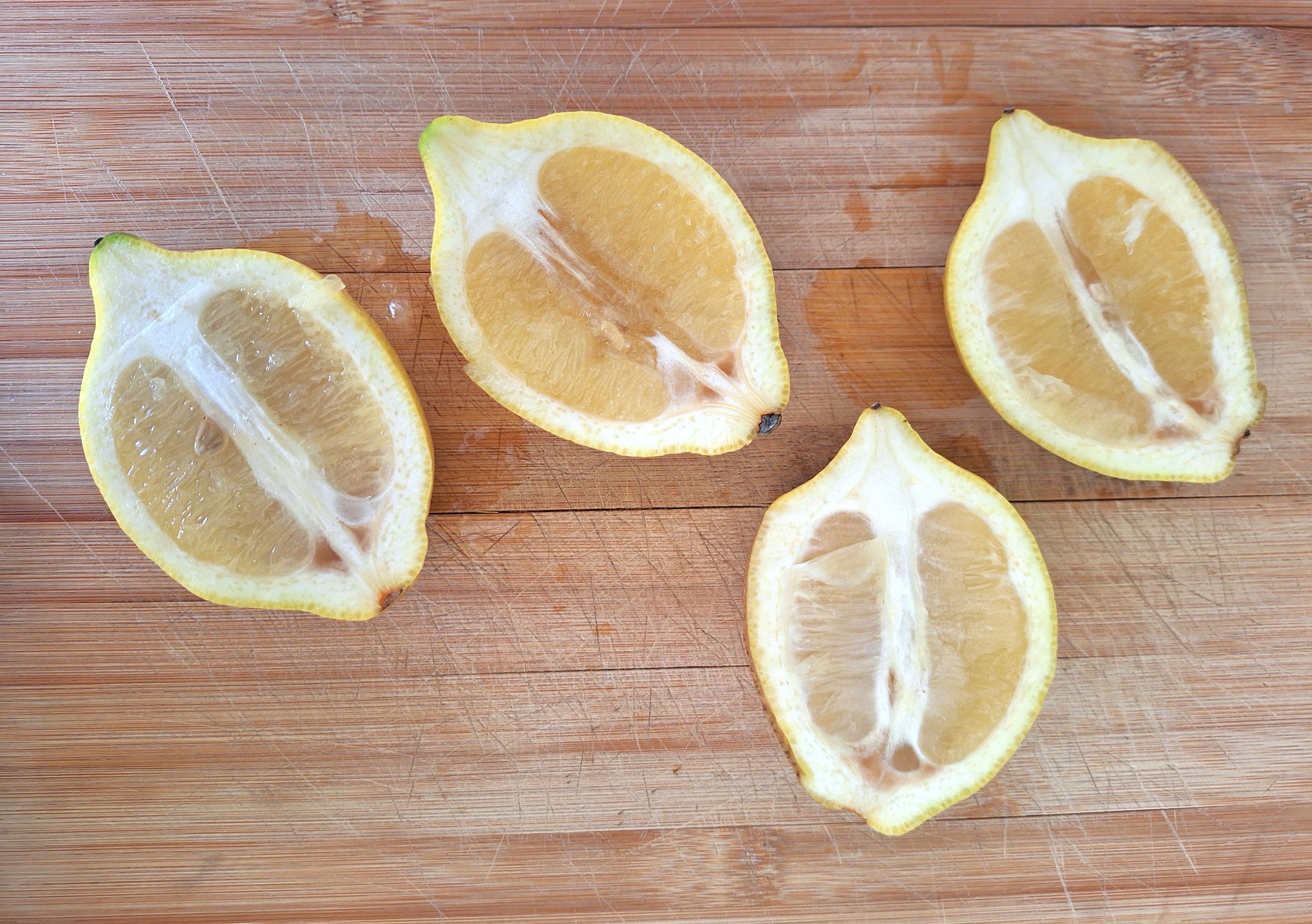 Lava los limones y corta a la mitad. Retira la pulpa con una cucharilla y exprime para sacar el zumo (utiliza un colador y una cuchara para presionar). Mezcla con la nata vegetal, el eritritol y la maicena. Vierte en un cazo y remueve constantemente hasta que empiece a espesar.