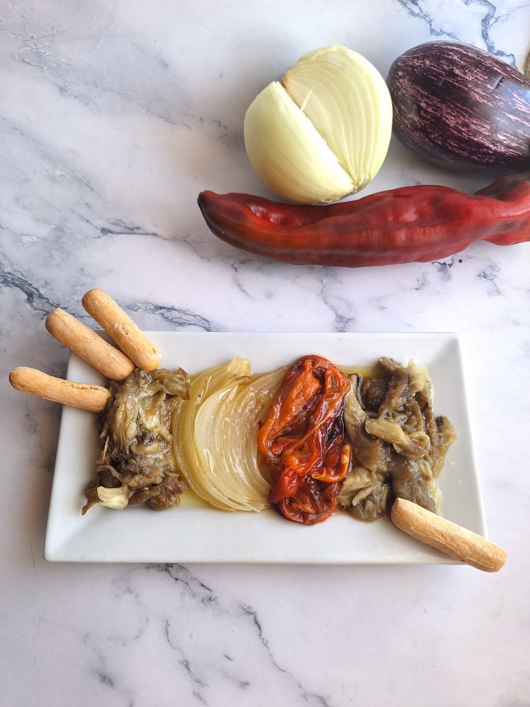 !Buenos días corazones! Arrancamos nueva semana con una receta muy sencilla: escalivada. Ya sé que las berenjenas están fuera-casi fuera de temporada, pero aún tenía en la nevera alguna de la mamma. Así que decidí hacer esta receta para que no se me echara a perder, tanto la berenjena como unos pimientos que empezaban a mustiarse.