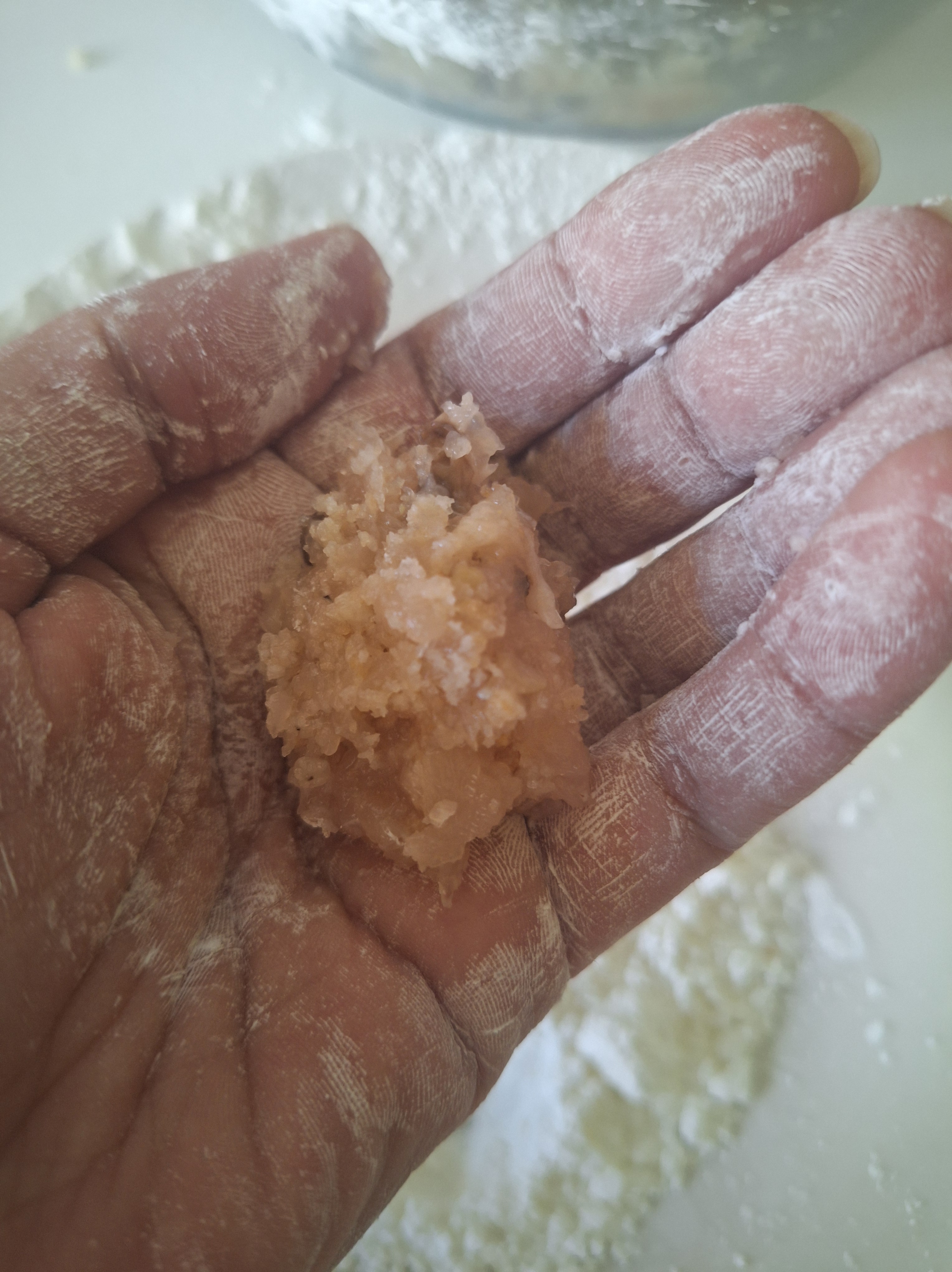 Haz bolitas pequeñas, tamaño bocado. Si la masa es muy blanda añade pan rallado. Reboza las bolitas en maicena. Fríe en abundante aceite y elimina el exceso con papel absorbente. Reserva.