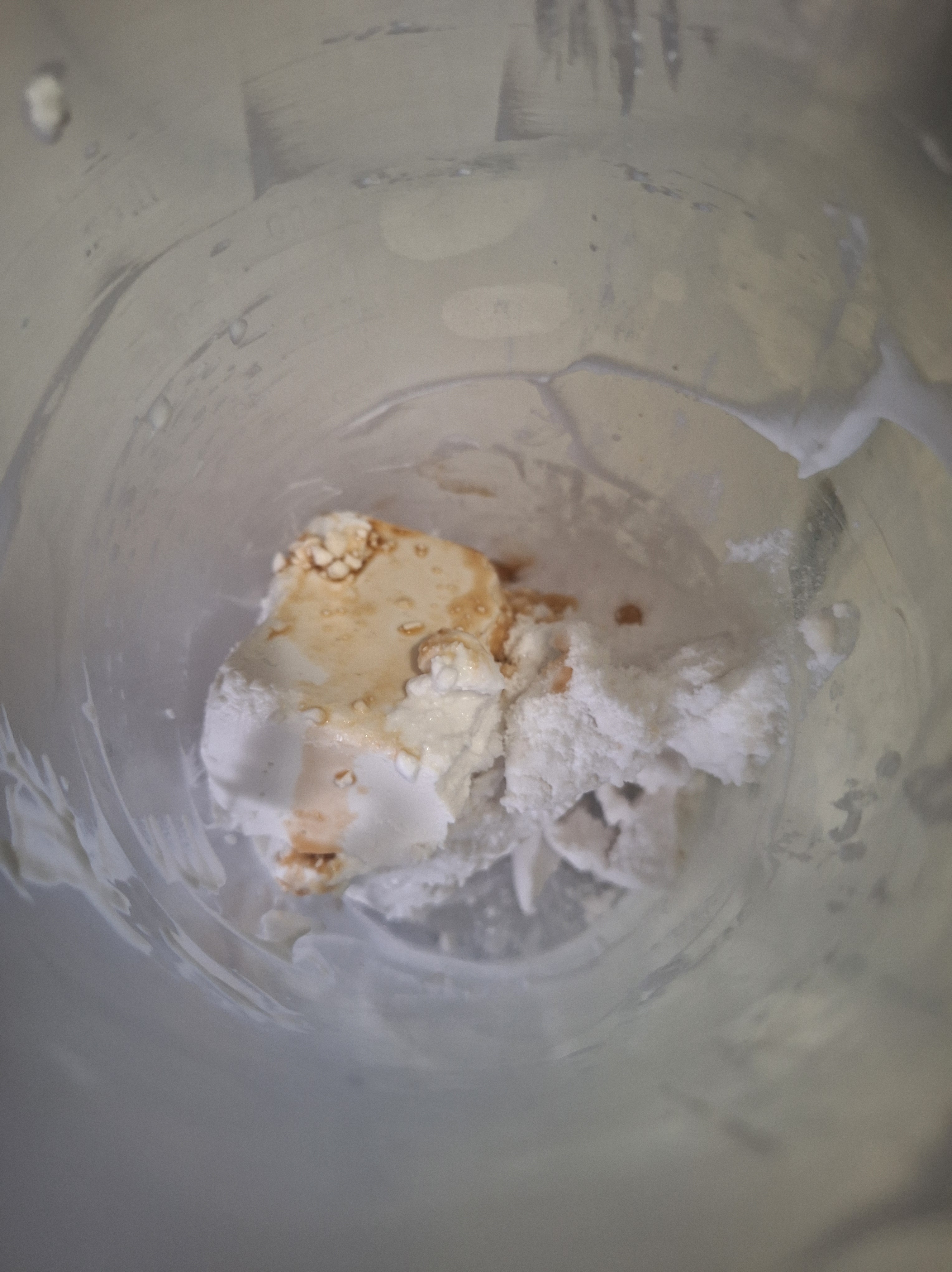 En otro vaso tritura la crema de coco con la batidora (para ablandarla un poco), añade el resto del eritritol glass y sigue batiendo hasta que adquiera textura cremosa. Mezcla ambos y sigue montando hasta que haga picos. Reserva en el frigo al menos un par de horas para que adquiera consistencia.