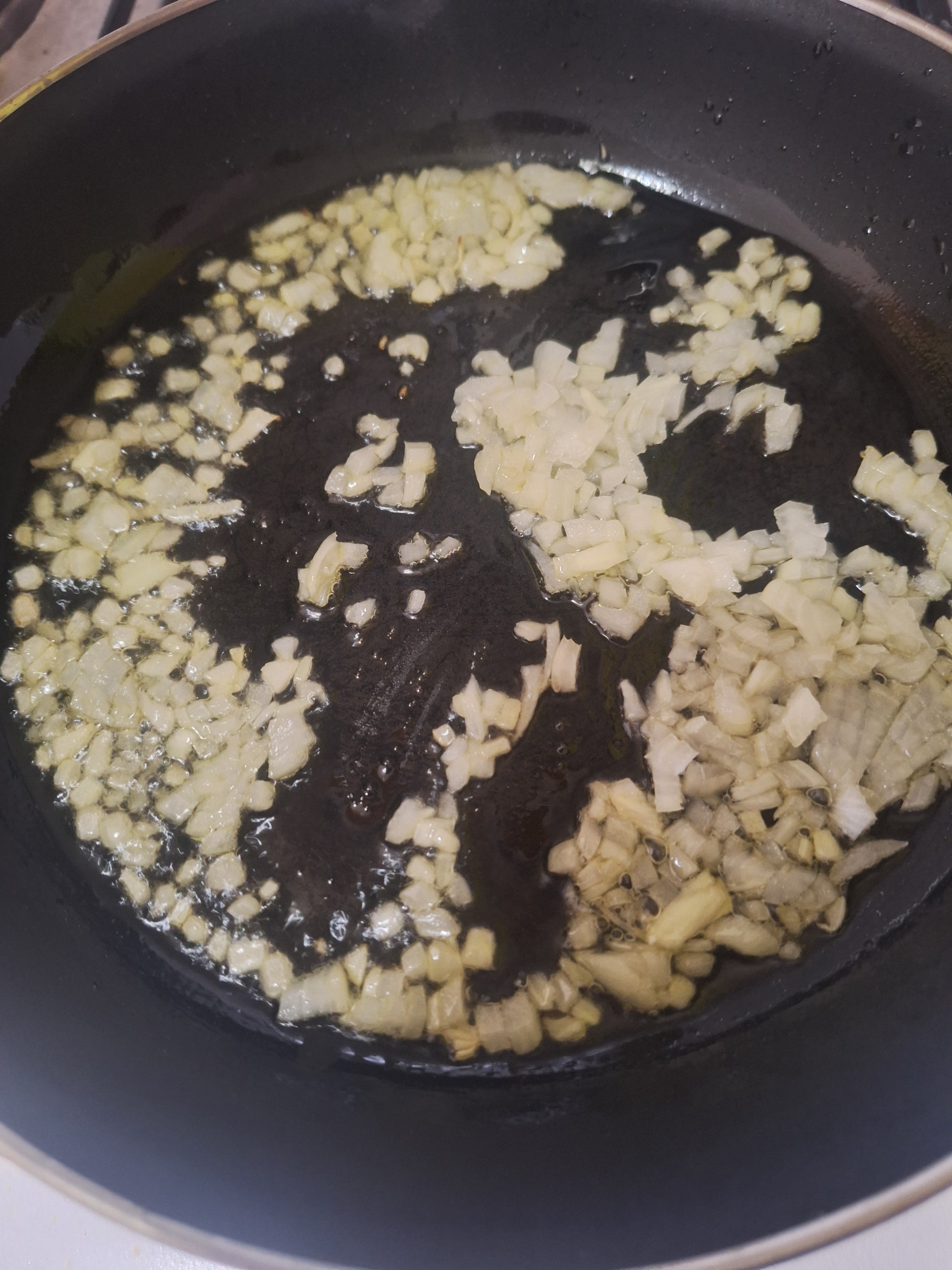 Corta la cebolla en brunoise y pocha en un poco de aceite. Agrega las setas finamente picadas y cocina hasta que cambien la textura. Añade el arroz, sazona y cocina hasta que transparente.