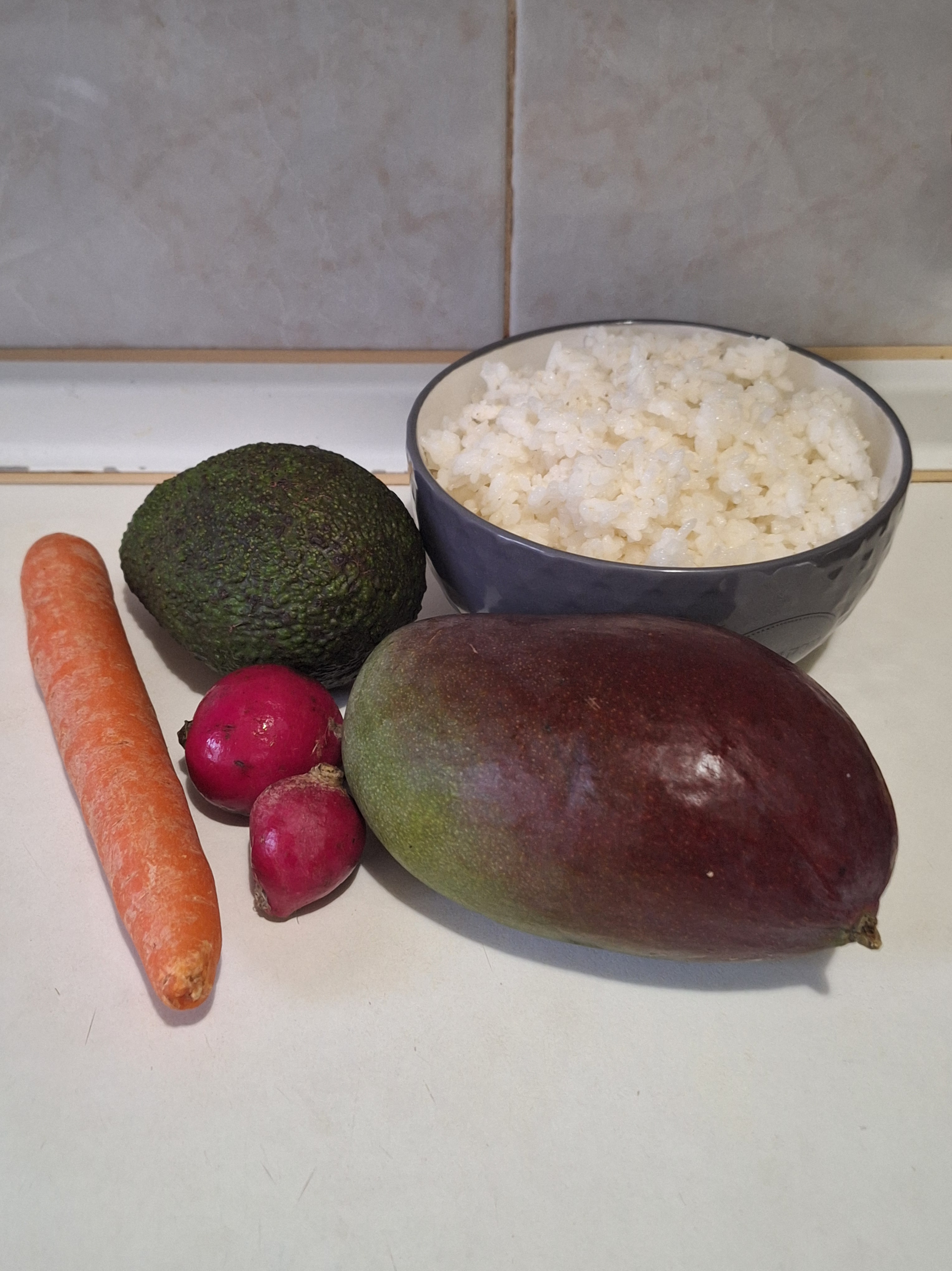 En este caso he hecho casi todos los nigiris veganos, con zanahoria, mango, aguacate y rabanitos. Y he utilizado un poco de salmón que tenía muerto de risa en la nevera y que me venía estupendamente para la receta.