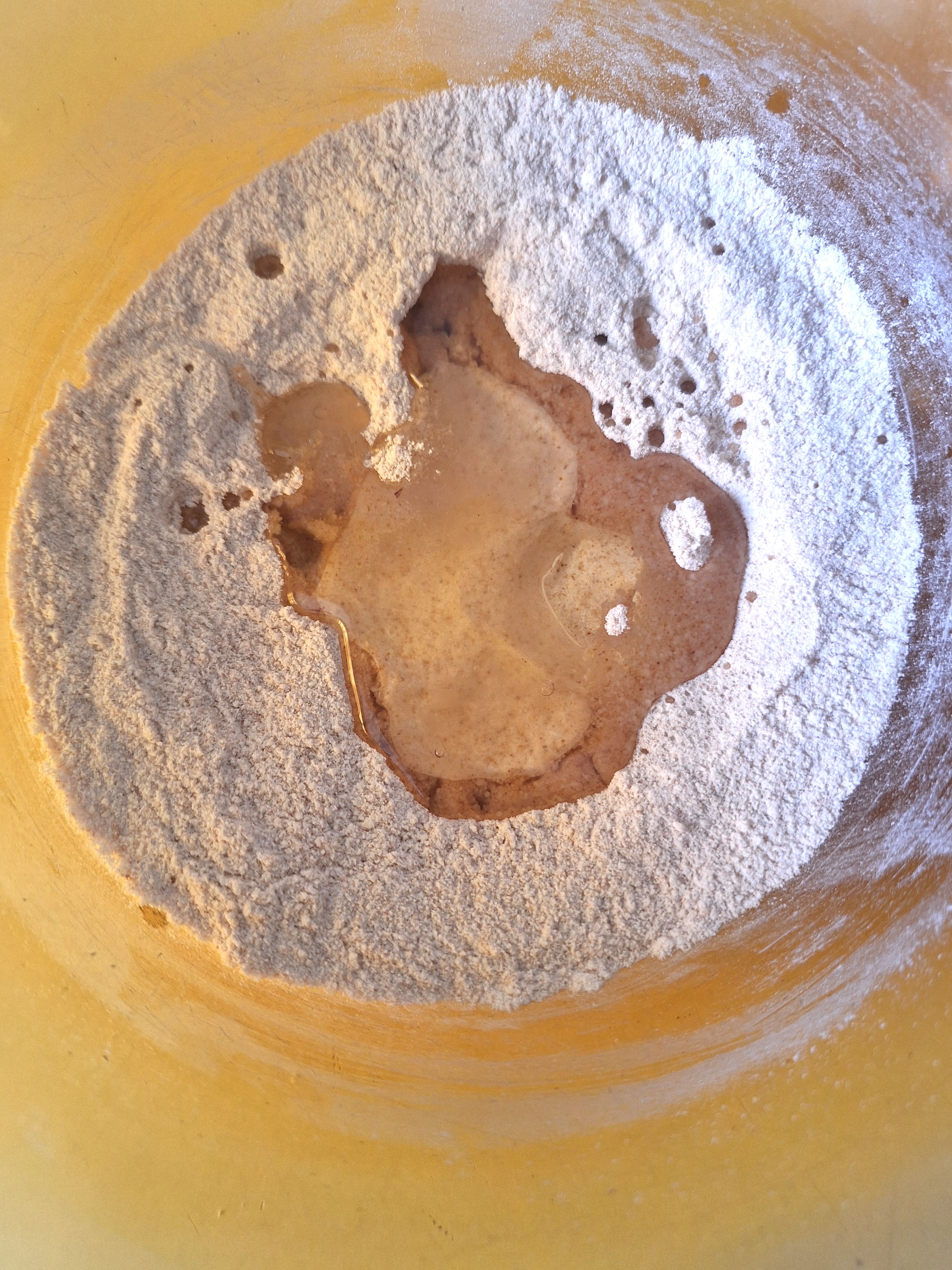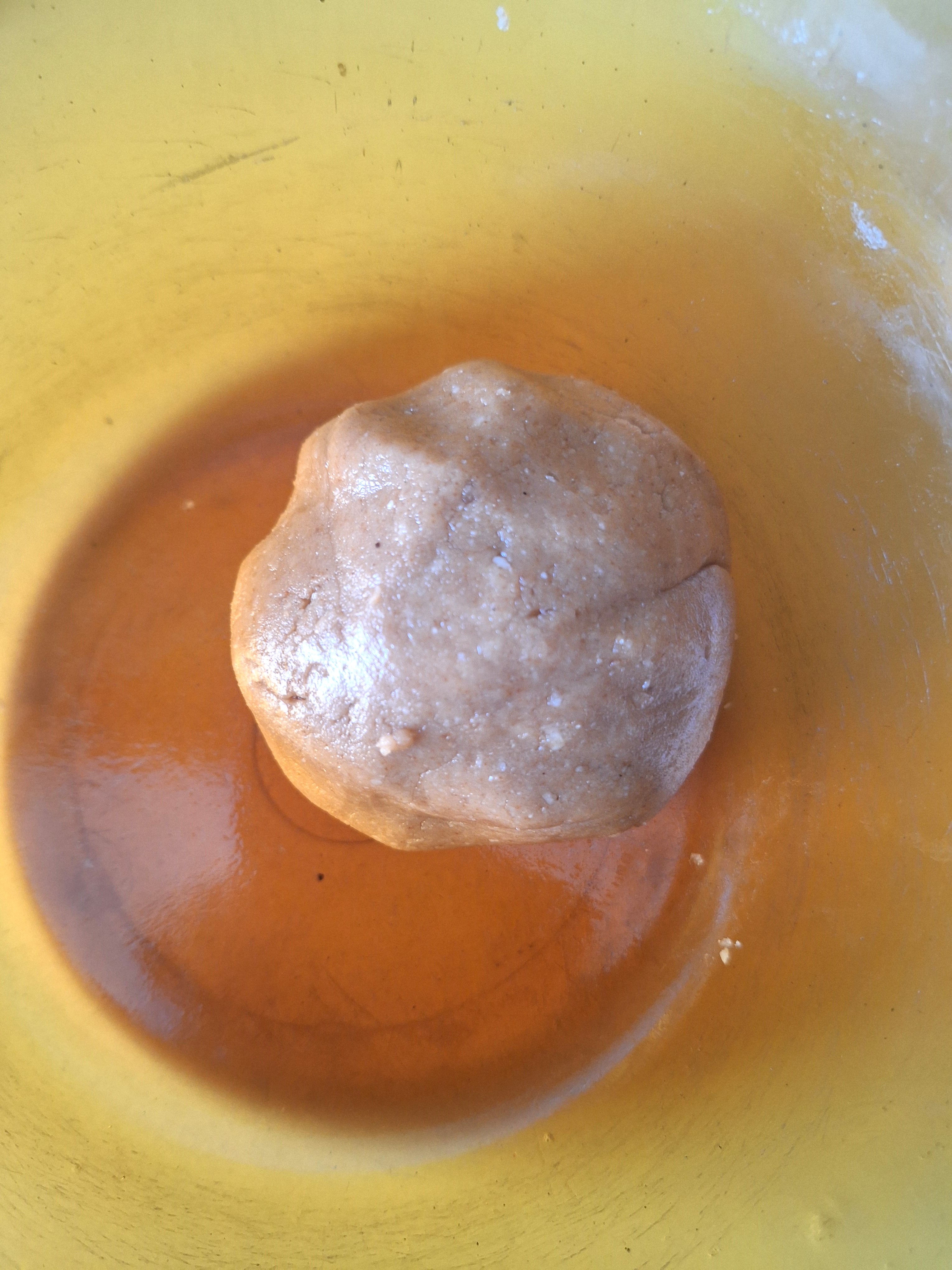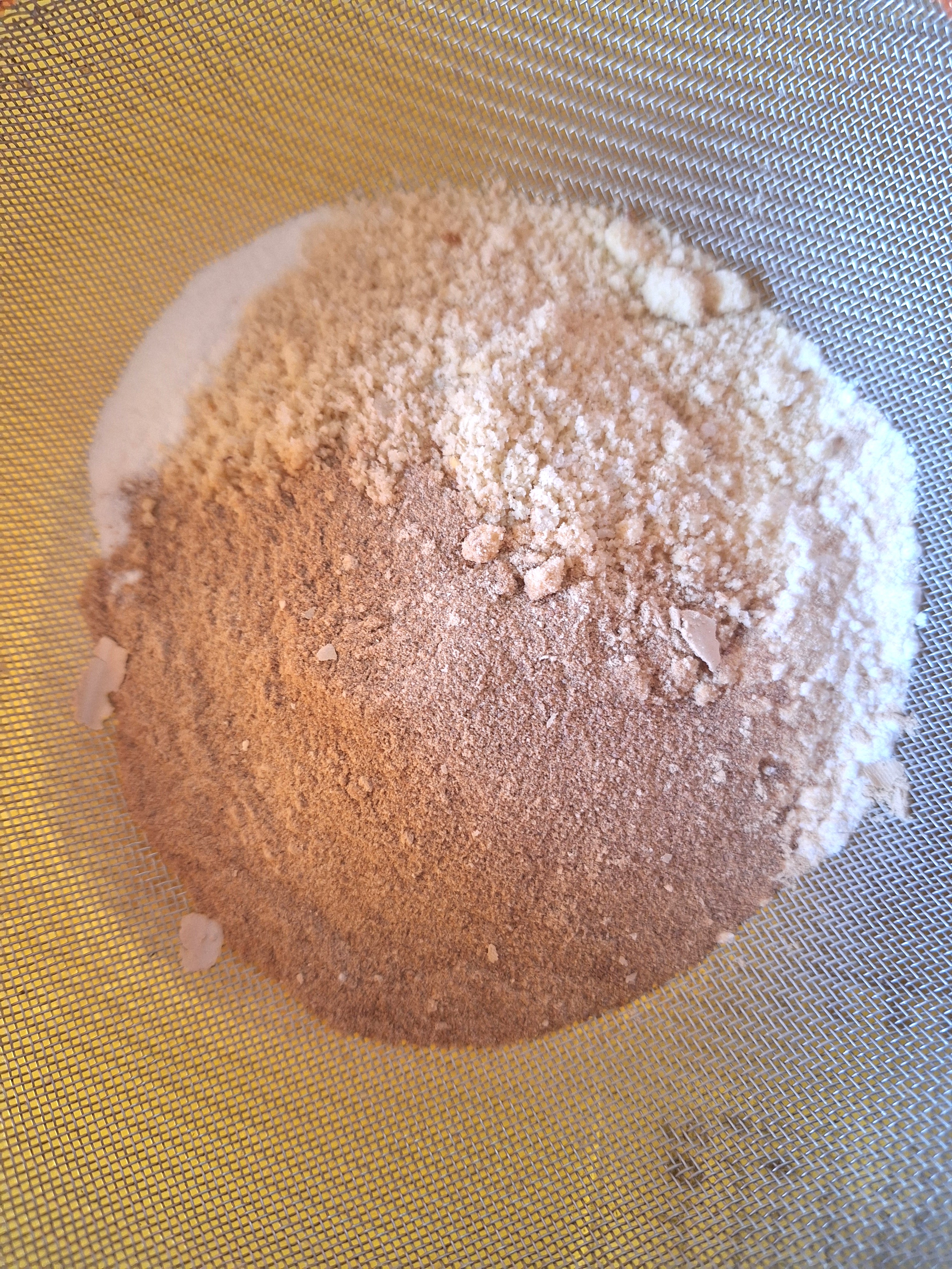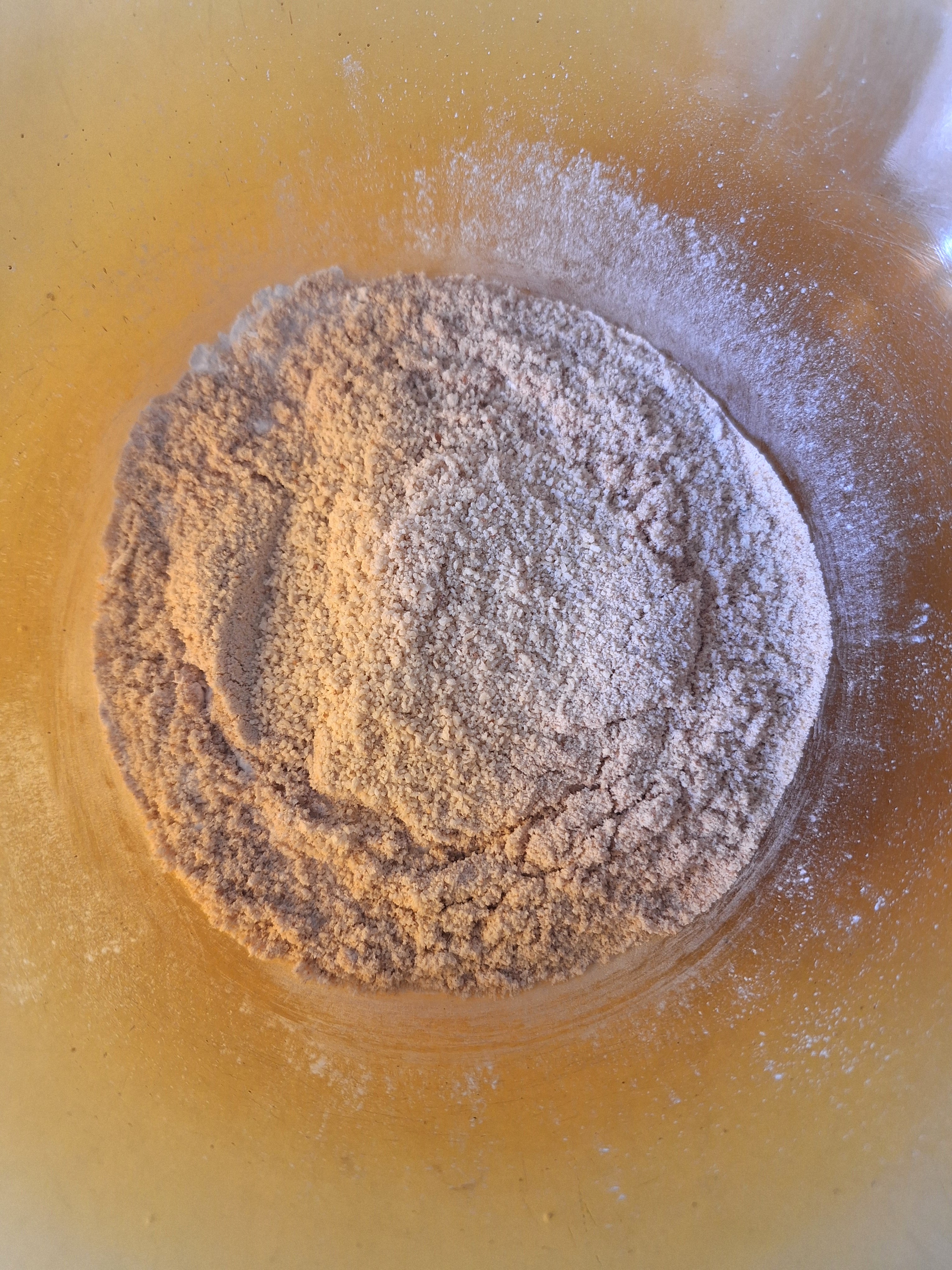 Prepara la base: tamiza los secos y mezcla bien. Añade el gel de psyllium y el aceite de coco frío y mezcla con los secos pellizcando con los dedos. Tendrás una textura de arena húmeda. Añade el agua y mezcla todo muy bien. Haz una bola, envuelve en film y refrigera 30 minutos.