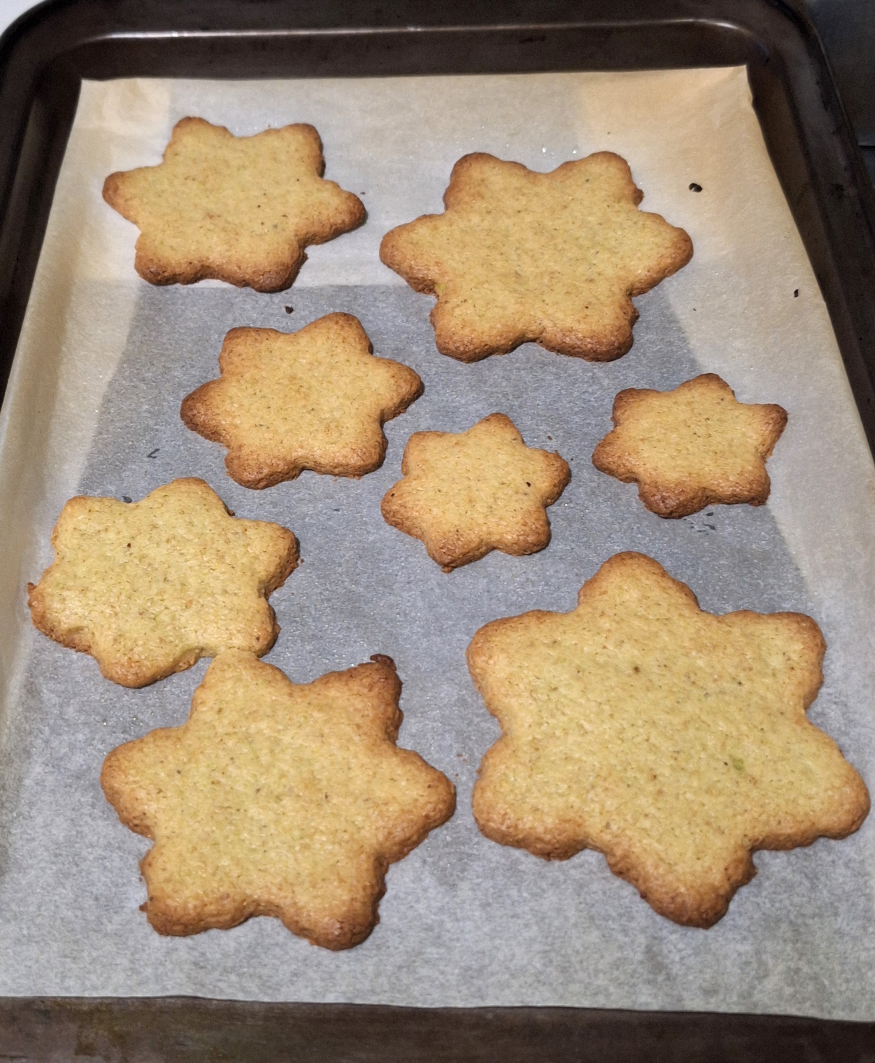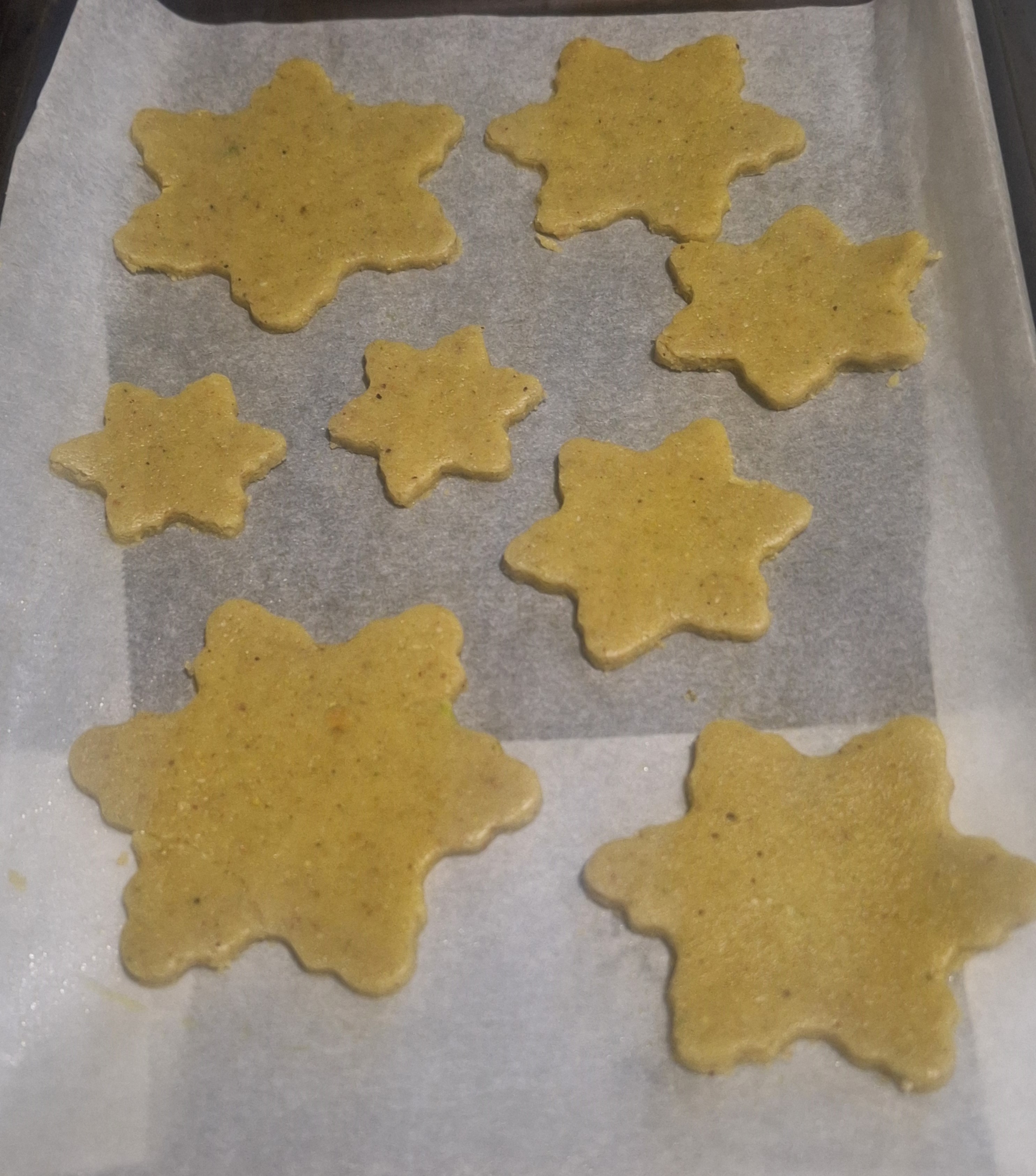 Queda una masa bastante blandita, así que os recomiendo que al cortar las galletas las paséis a la bandeja de horno con una espátula. Si no, corréis el riesgo de que las puntas se os rompan (y no es lo que queremos).