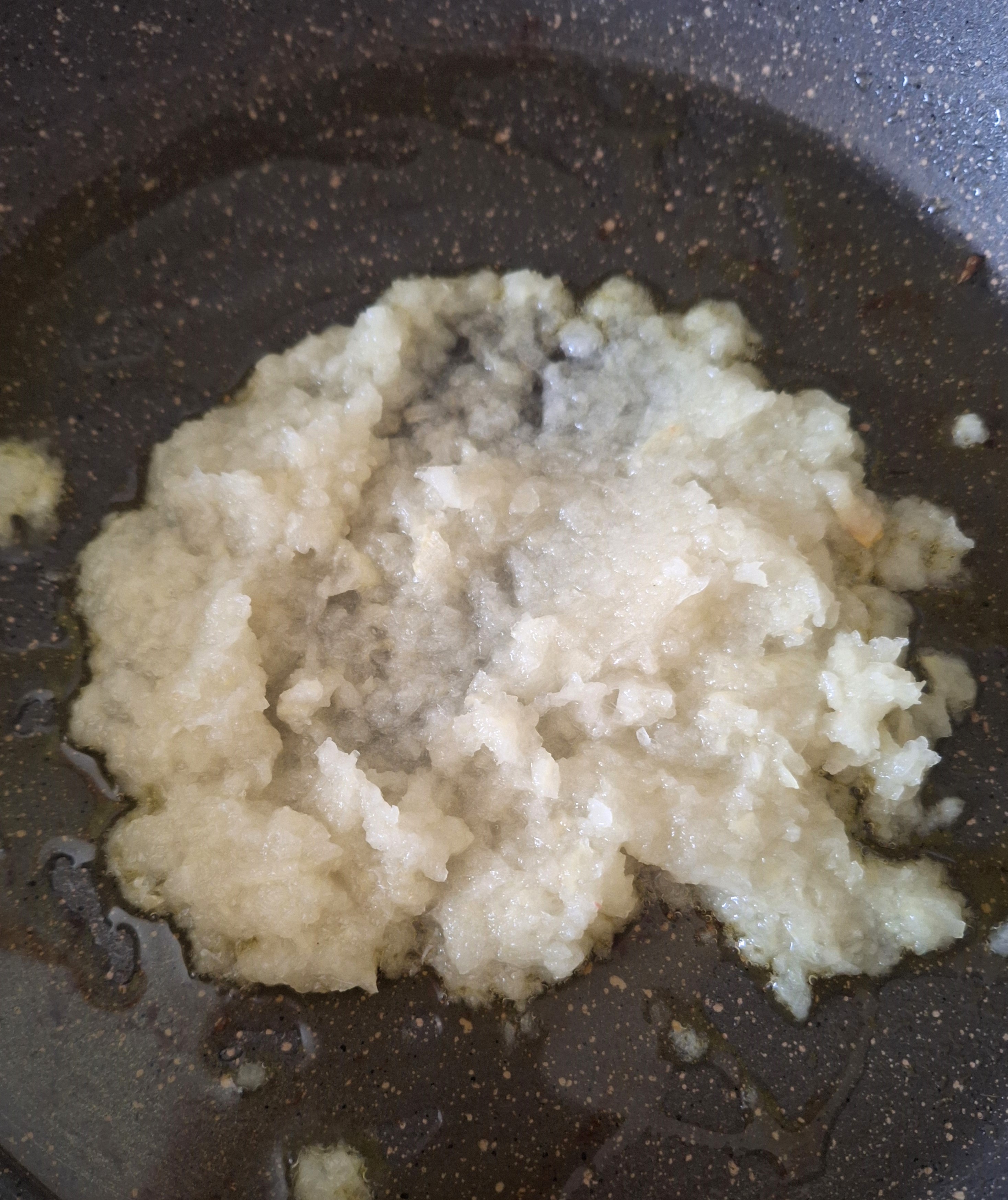 Tritura la cebolla y el jengibre hasta hacer una pasta (también puedes cortar en juliana y el jengibre finamente) y sofríe. Añade el vino y deja evaporar el alcohol. Agrega los lomos de salmón, el zumo de mandarina y el agua. Cocina, tapado, unos 5 minutos por cada lado. Disuelve la maicena en un poco de agua, añade a la sartén y deja que la salsa espese.