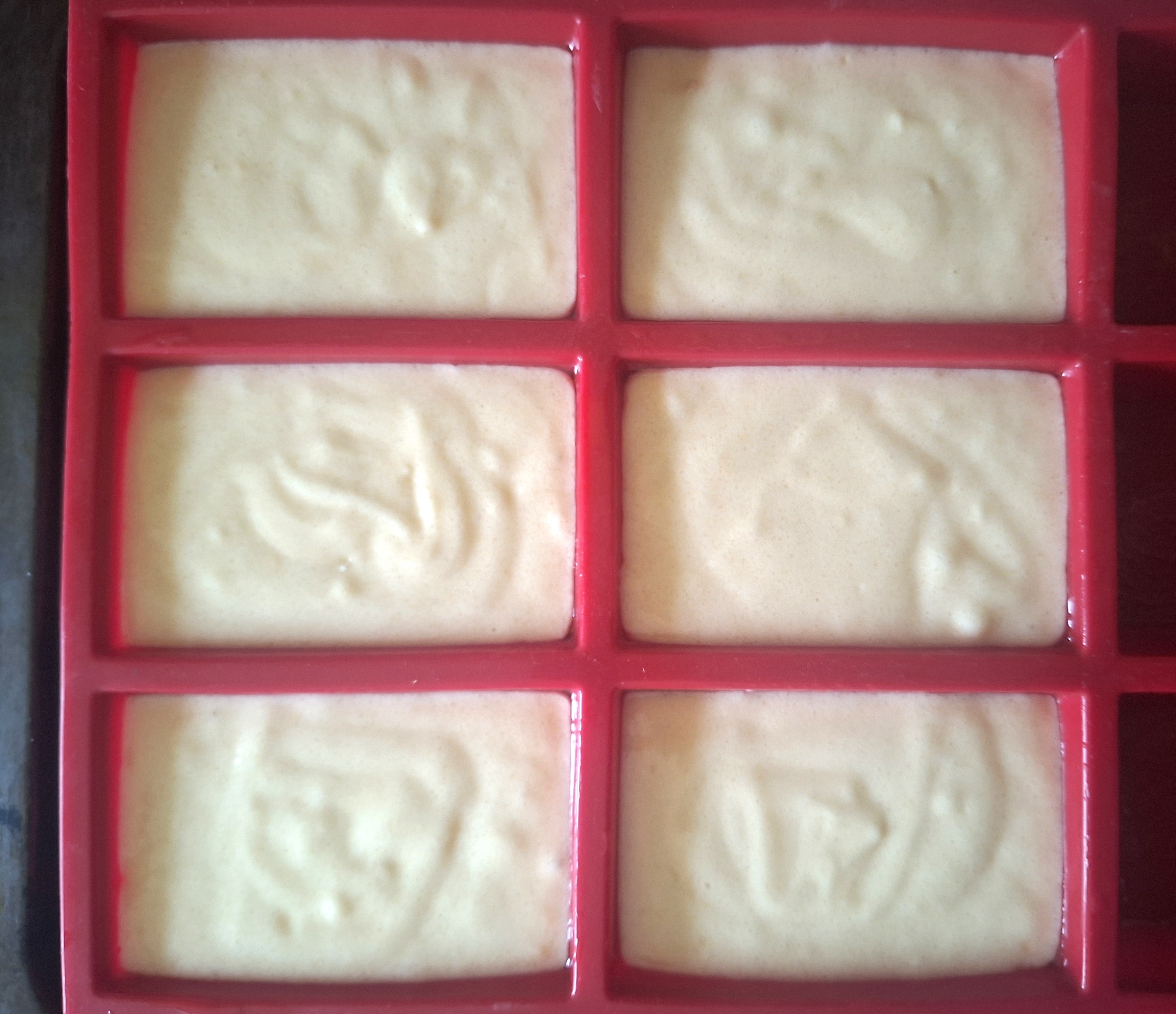 Engrasa los moldes con aceite de oliva y vierte la masa, rellenando 3/4 de su capacidad. Hornea durante unos 20-25 minutos (haz la prueba del palillo, si sale seco están en su punto). Deja enfriar en el molde unos 10 minutos y transfiere a una rejilla.