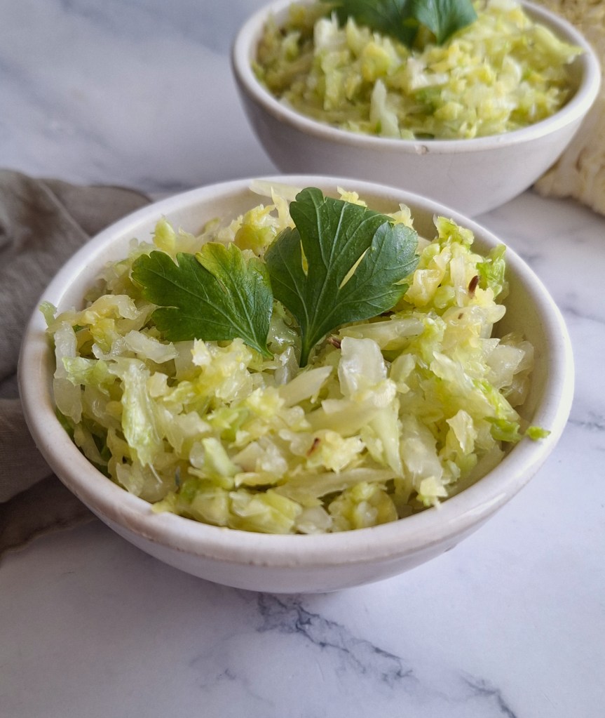 Hoy os traigo una receta muy sencilla, haciendo honor a mi nombre, con una crucífera que no a todo el mundo gusta: el repollo. Se trata de una ensalada de origen alemán, típica de la zona de Baviera, que me enseñó hace un par de años (o tres), la pareja de una amiga mía. La base de la ensalada es el repollo o col, aliñada con comino, aceite, vinagre, azúcar y sal. La receta original se complementa con un sofrito de jamón en taquitos y cebolla que se añade al final. En mi caso, como no puedo tomar jamón, he prescindido de este paso y os traigo la versión vegana.